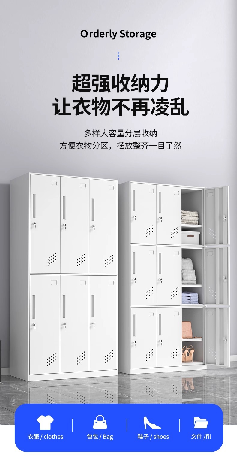 공장 직원 강철 사물함 작업장 사물함 좁은 가장자리 분해 및 조립 잠금 장치가 있는 다중 도어 컬러 사무실 철제 캐비닛