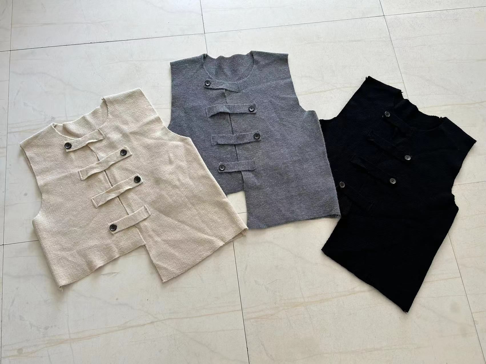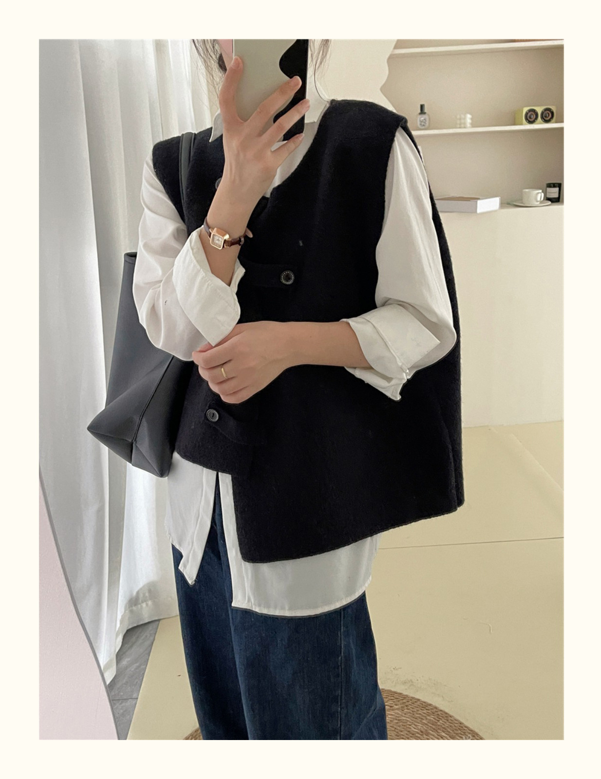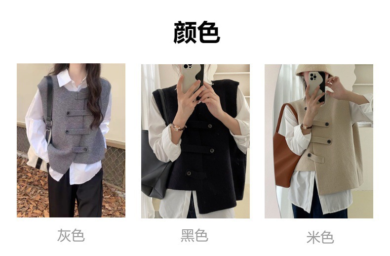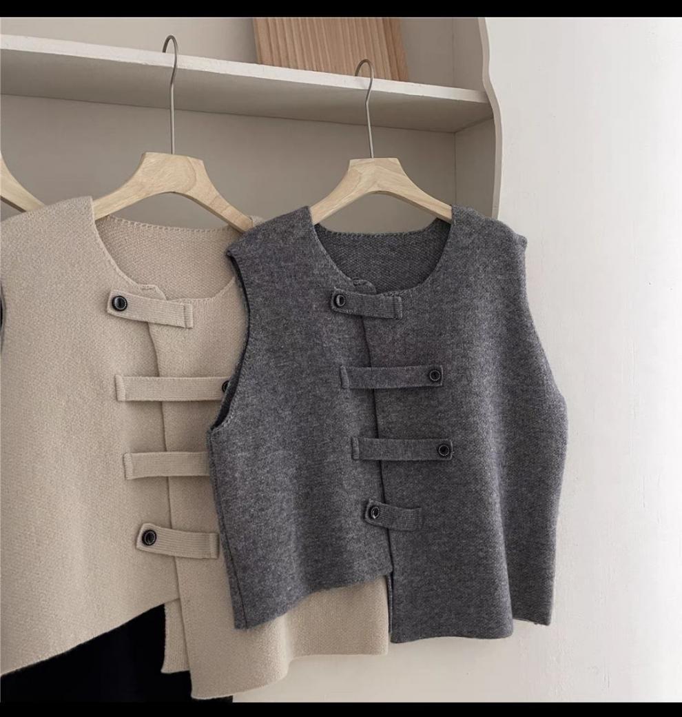 여성을위한 국경 간 니트 조끼 봄, 가을 새로운 스타일 예술적 스타일 겉옷 불규칙한 양복 조끼 더블 브레스트 조끼 카디건