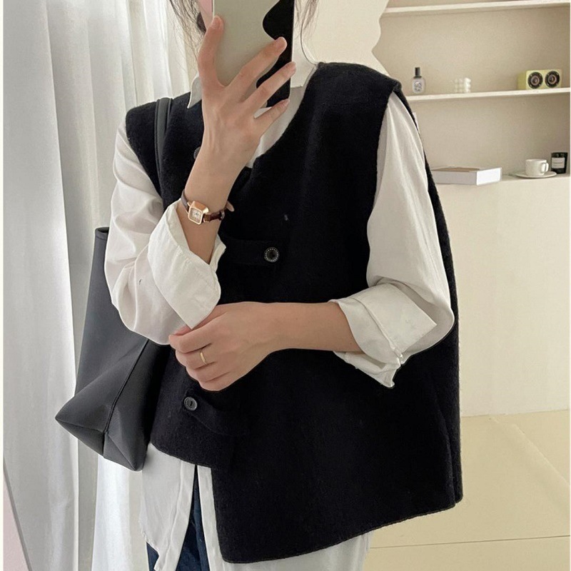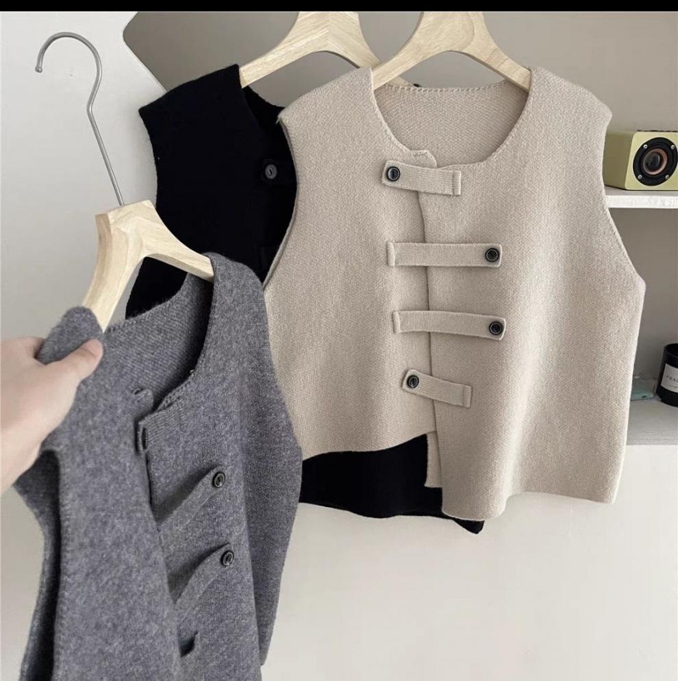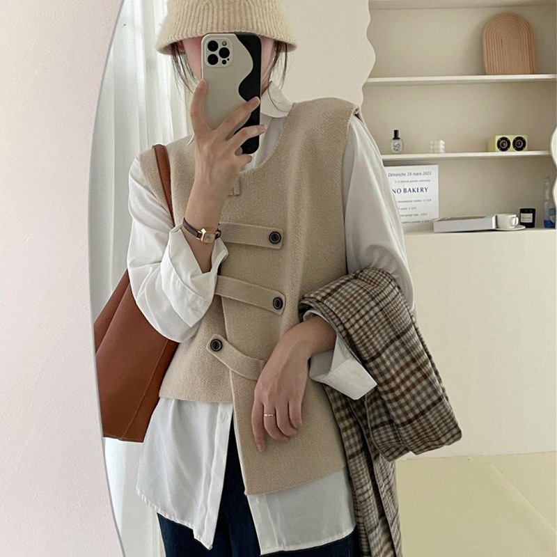 여성을위한 국경 간 니트 조끼 봄, 가을 새로운 스타일 예술적 스타일 겉옷 불규칙한 양복 조끼 더블 브레스트 조끼 카디건스토어 가기