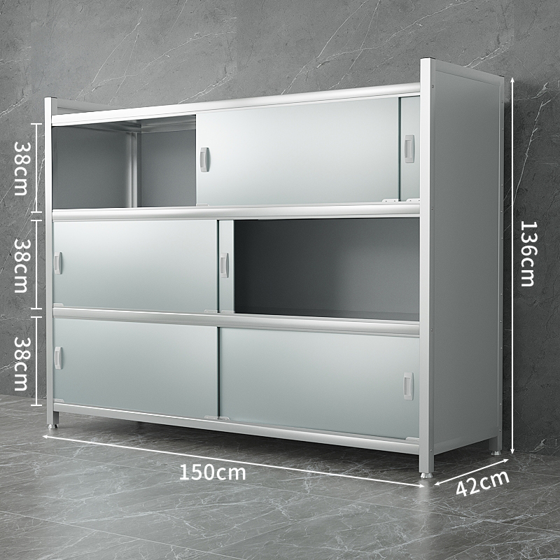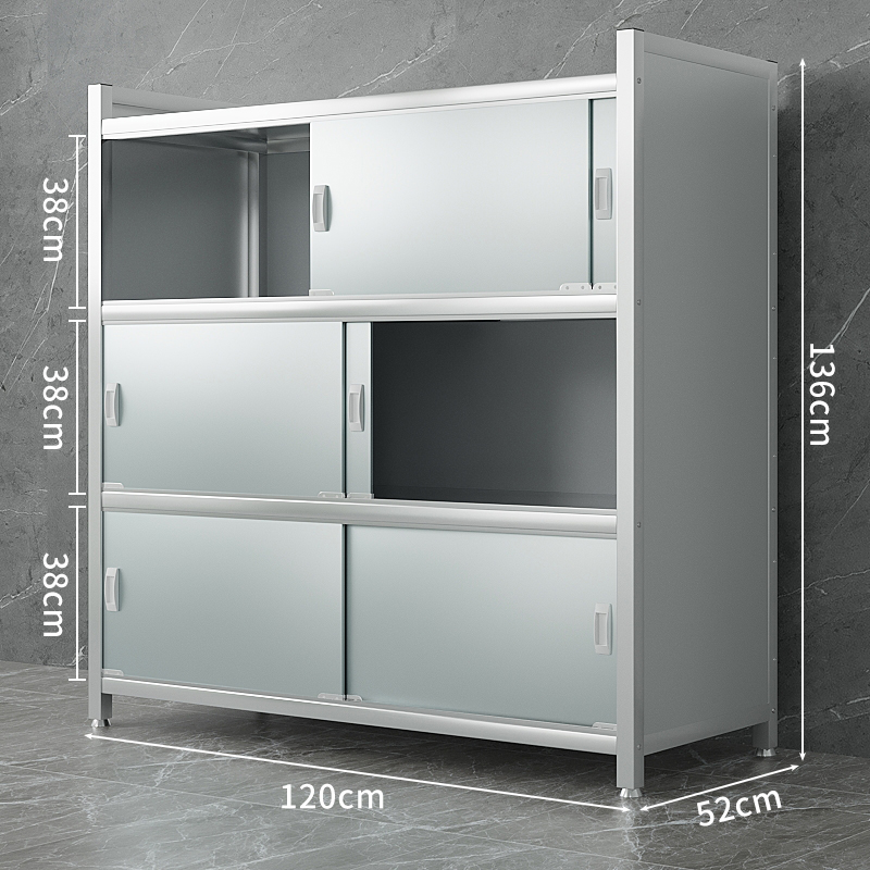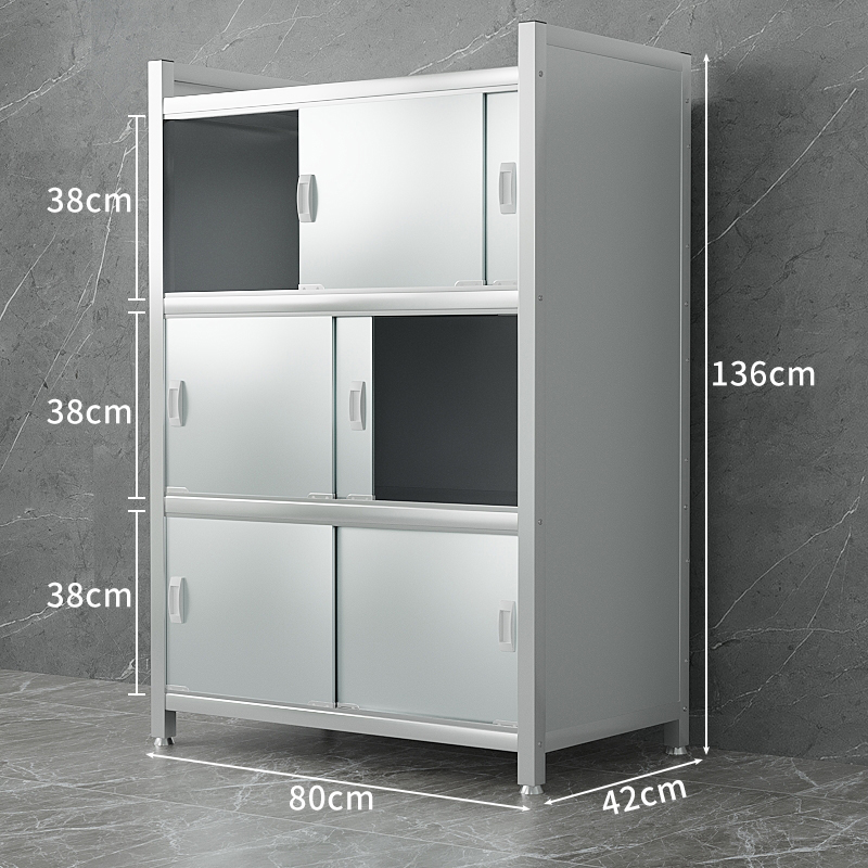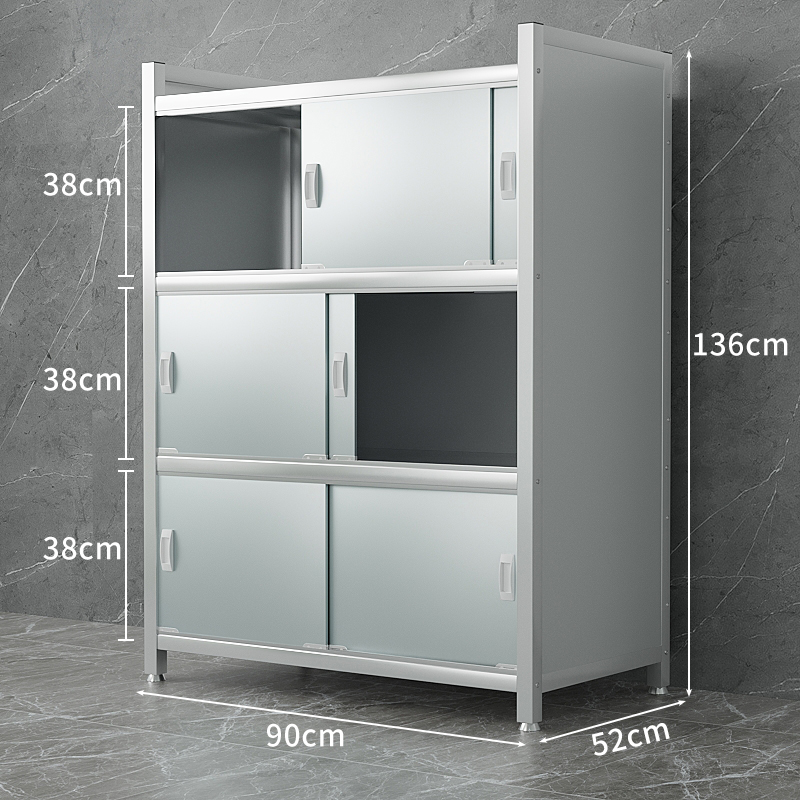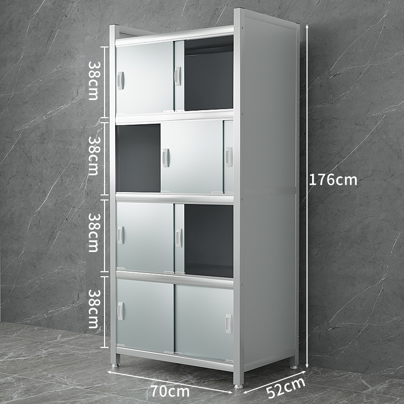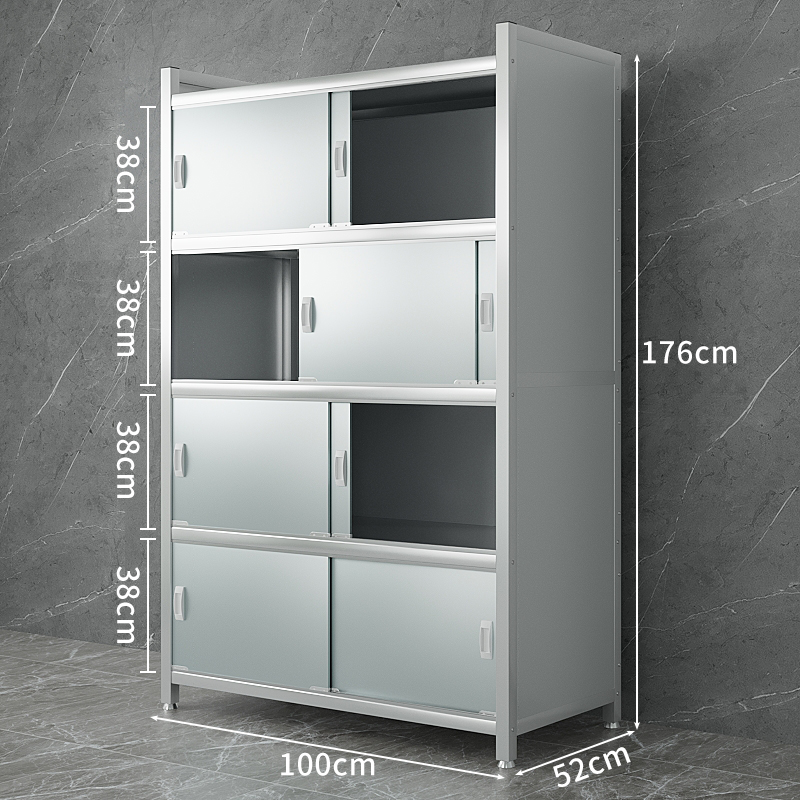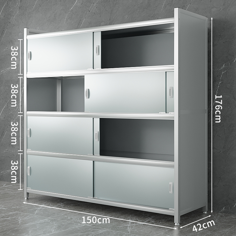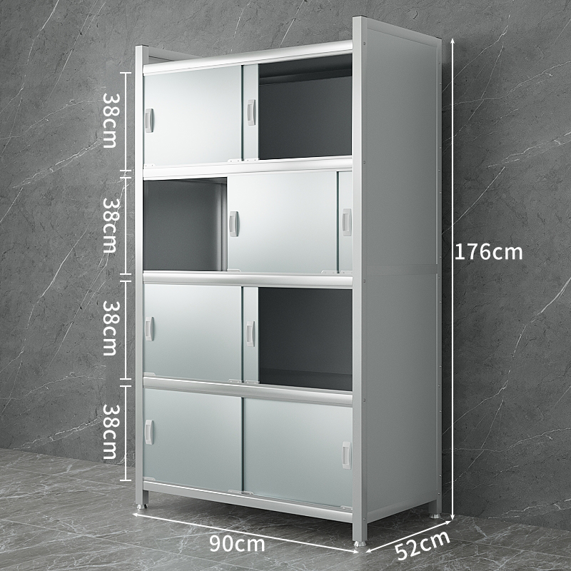두꺼운 스테인레스 스틸 주방 보관함 바닥에서 천장까지 다층 보관함 캐비닛 도어가있는 다기능 발코니 선반 보관 캐비닛