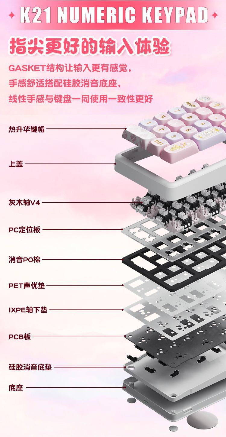 • K21 숫자 키패드 [카드캡터 사쿠라 키캡]-Arctic Latte Switch V2