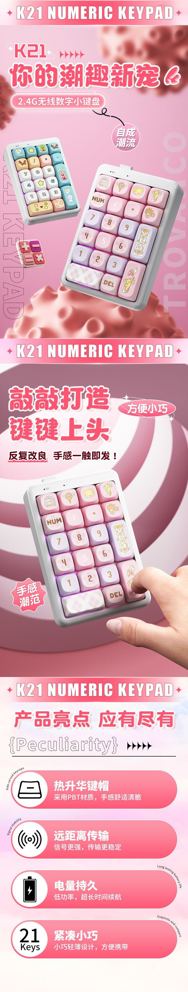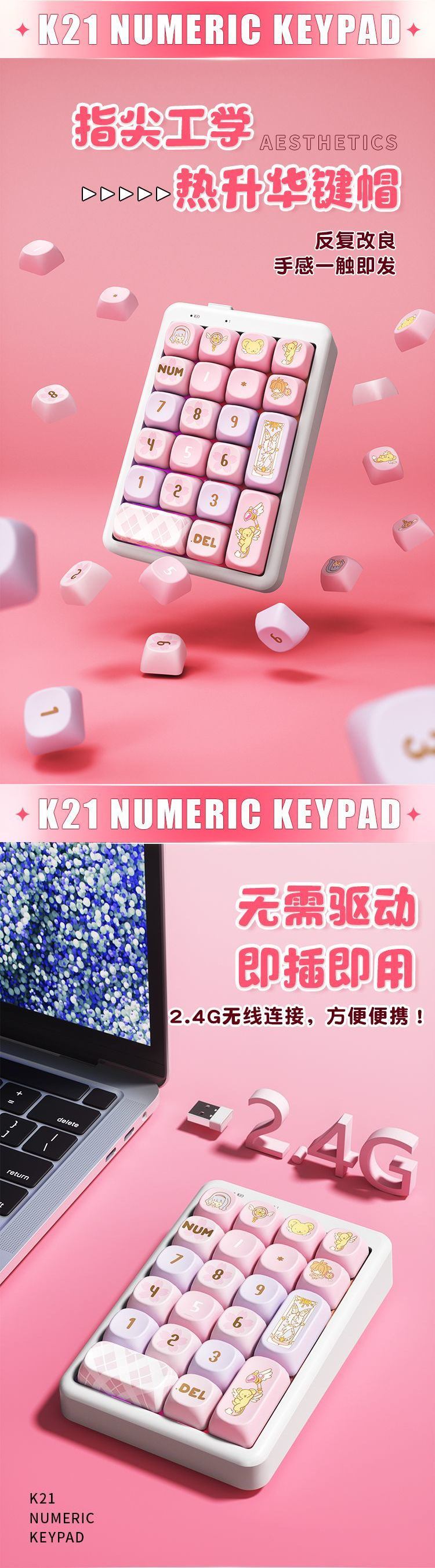 • K21 숫자 키패드 [카드캡터 사쿠라 키캡]-Kaihua BOX 화이트 샤프트 V2
