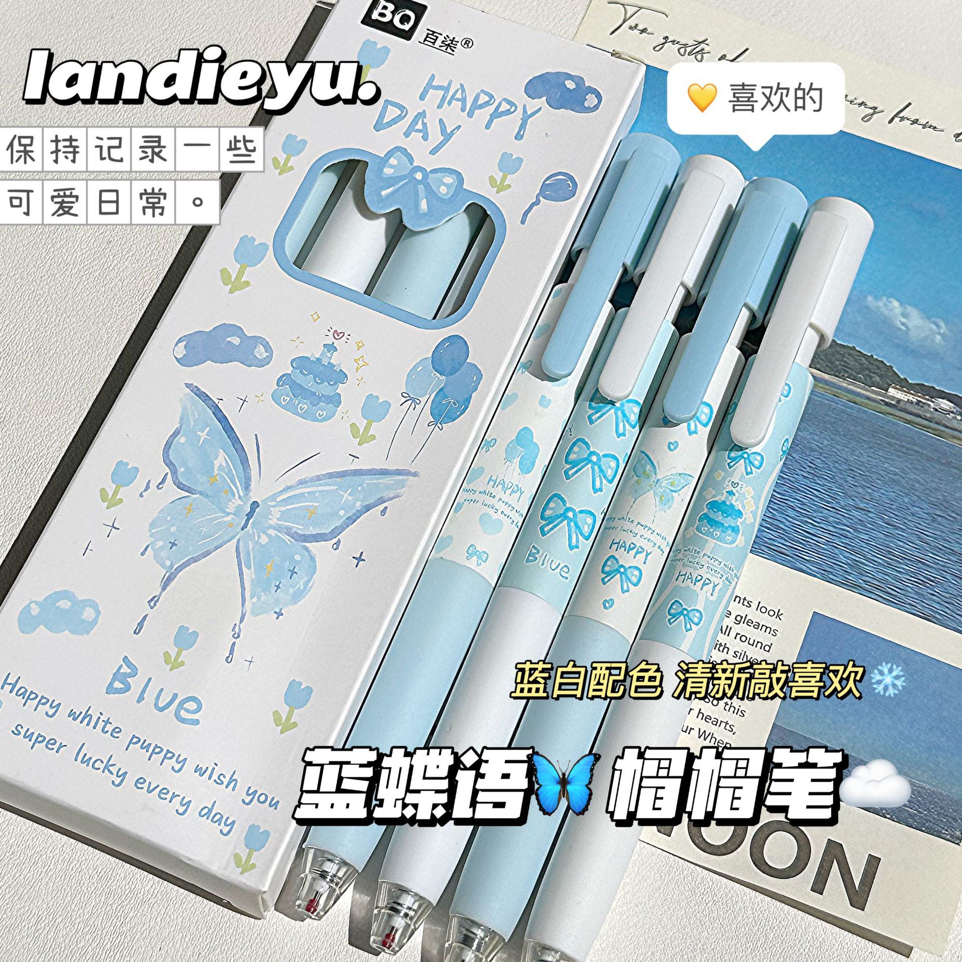 오리지널 블루 버터플라이 캡 펜 인 고가치 프레스 젤 펜 학생 시험 속건성 0.5 블랙 브러쉬 펜스토어 가기