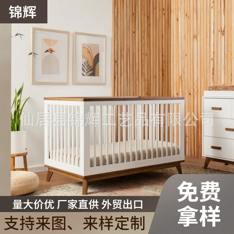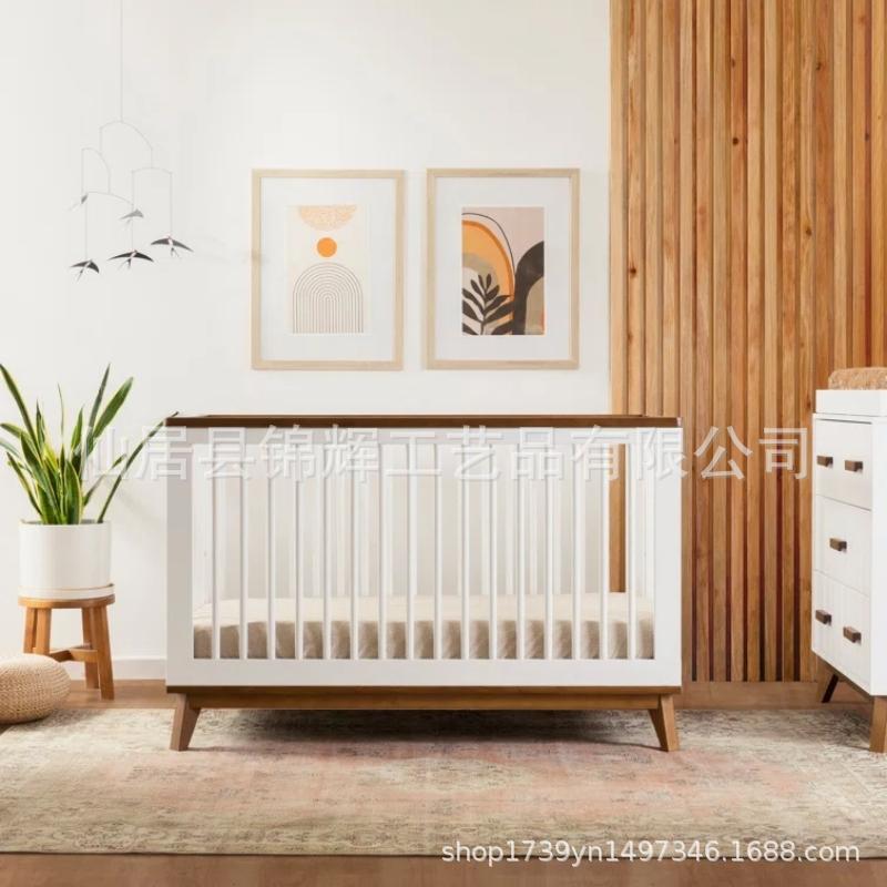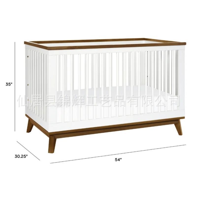 맞춤형 목재 유아용 침대, 높이 조절 가능, 다기능 3-in-1 컨버터블 신생아 침대
