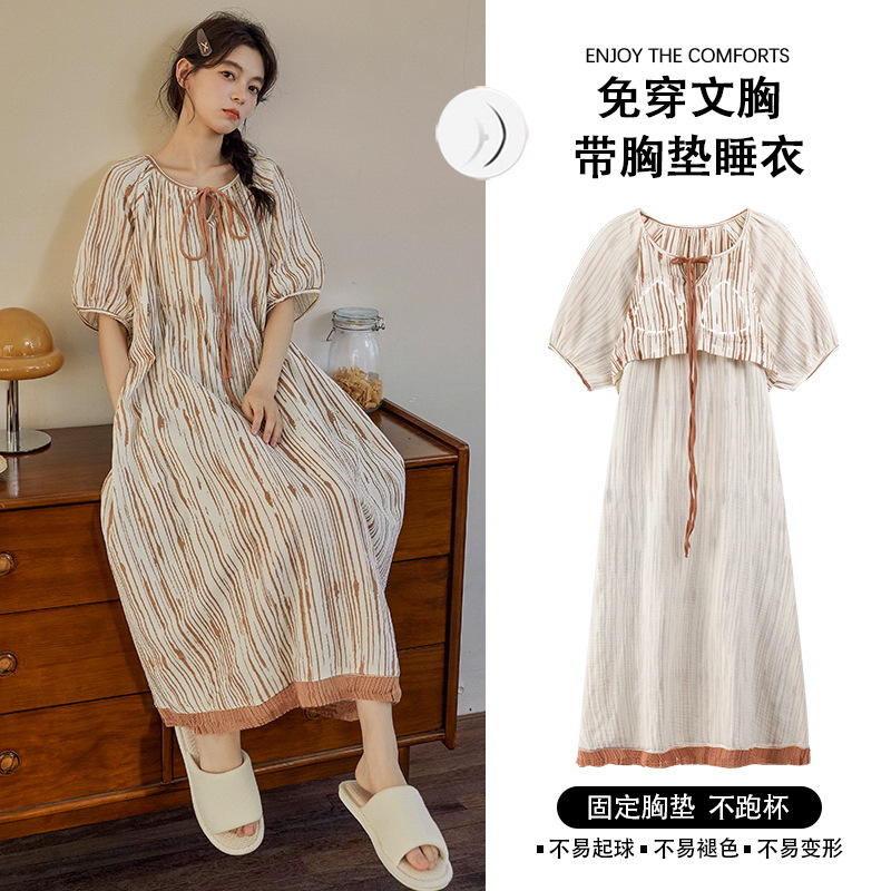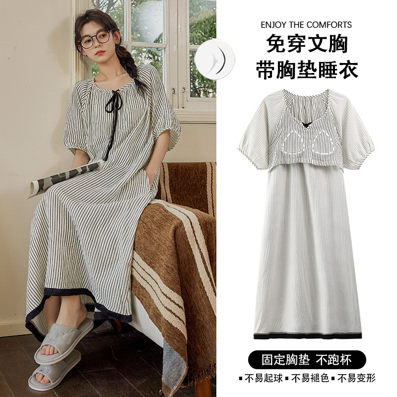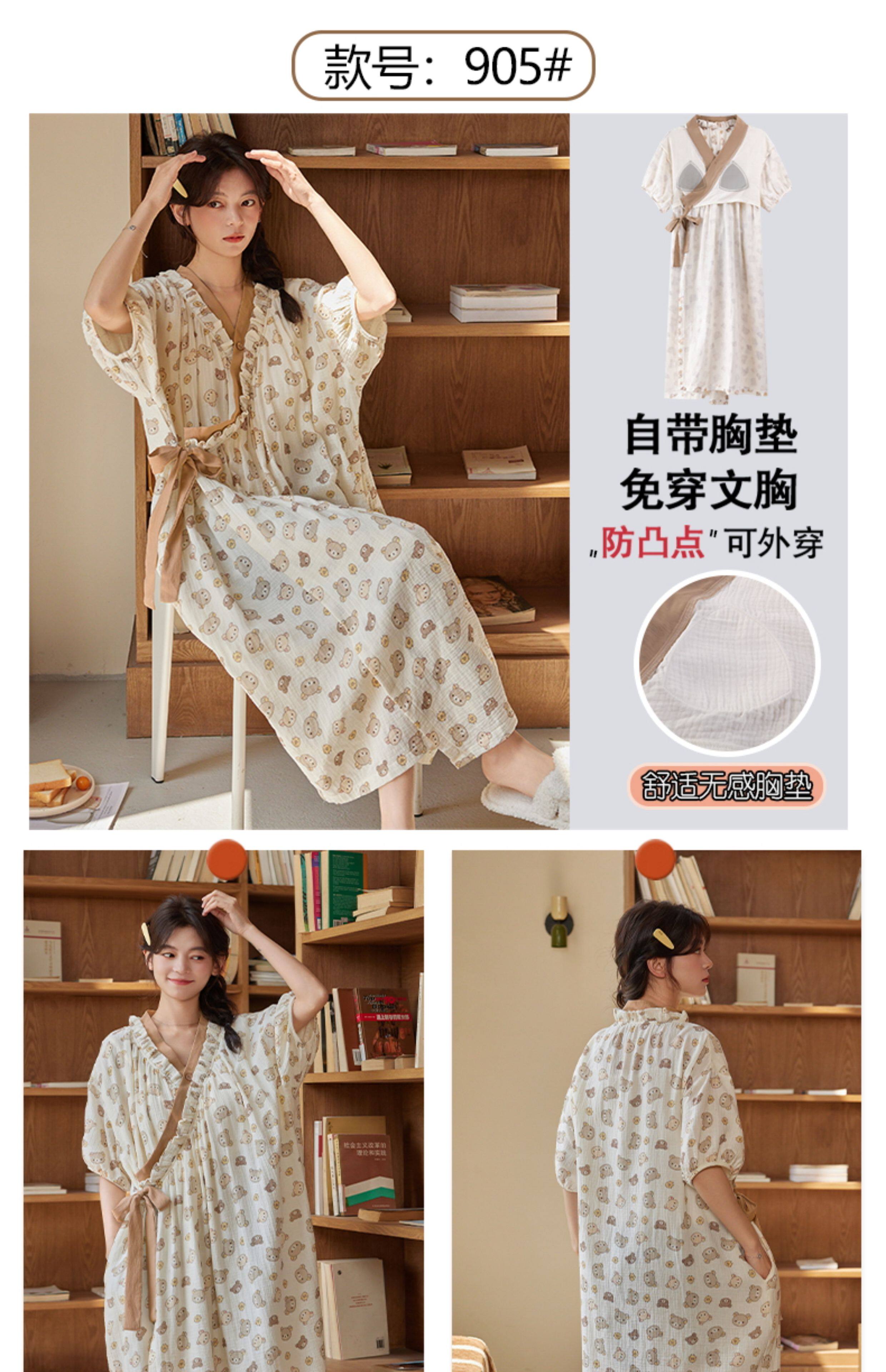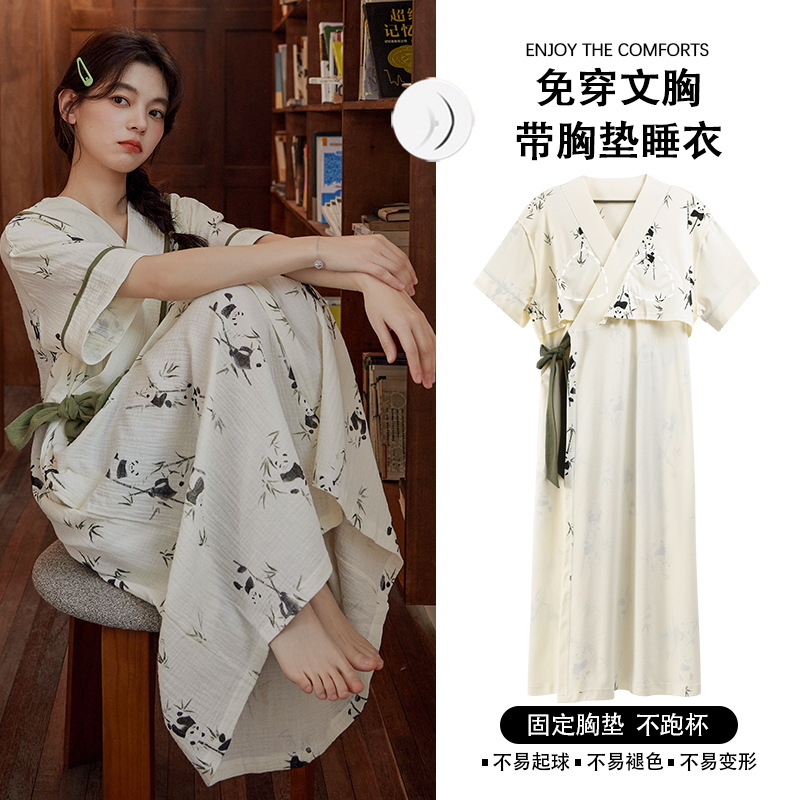 여성용 클라우드 코튼 레이스 업 잠옷, 여름 달콤한 반팔 잠옷, 기모노, 가슴 패드가 있는 중간 길이 잠옷, 홈웨어스토어 가기