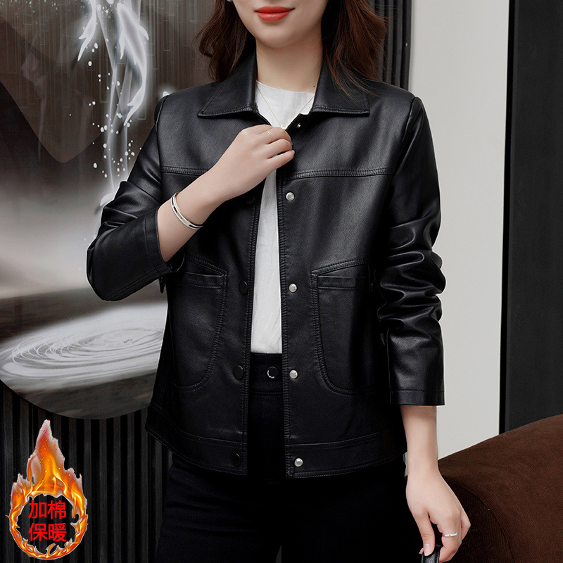 가을 겨울 여성을 위한 두꺼운 퀼팅 가죽 자켓 새로운 스타일 짧은 느슨한 슬리밍 패션 캐주얼 다목적 외국 스타일 가죽 자켓스토어 가기