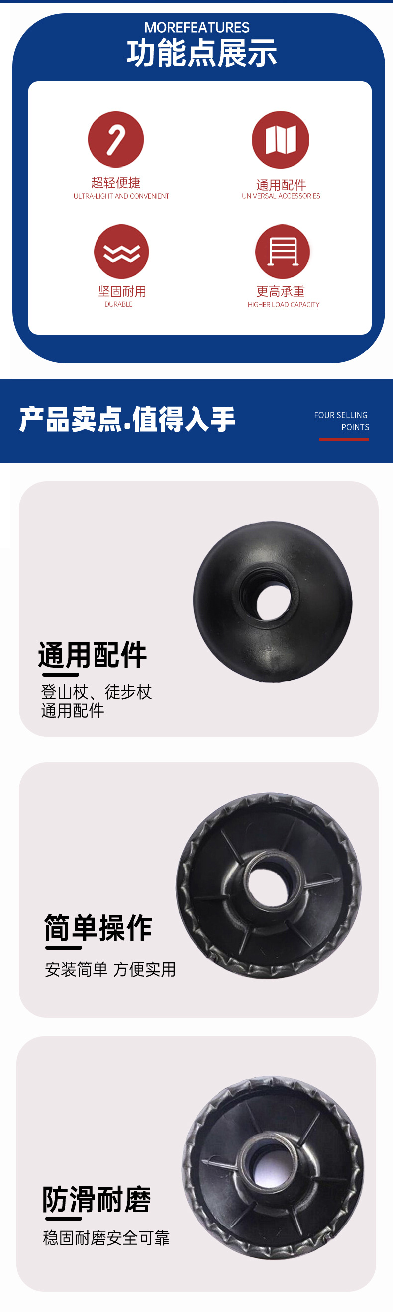 야외 트레킹 스틱, 스노우 홀더, 미끄럼 방지, 충격 흡수, 두꺼운 내마모성 고무 슬리브, 지팡이 팁, 둥근 바닥 말굽 발 커버