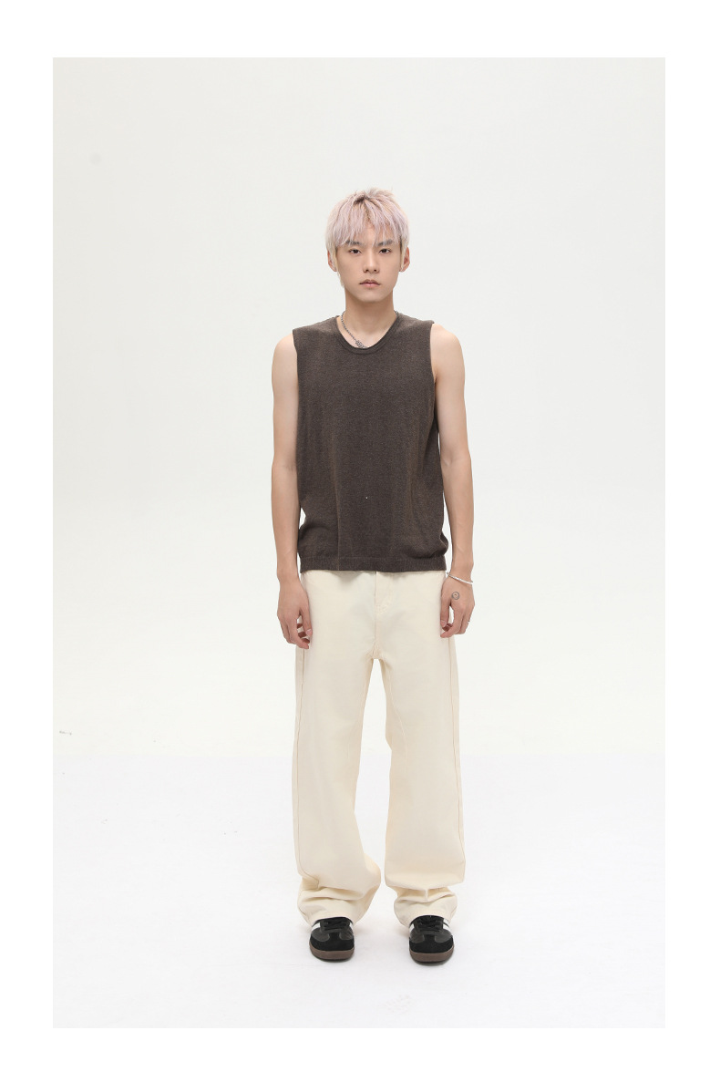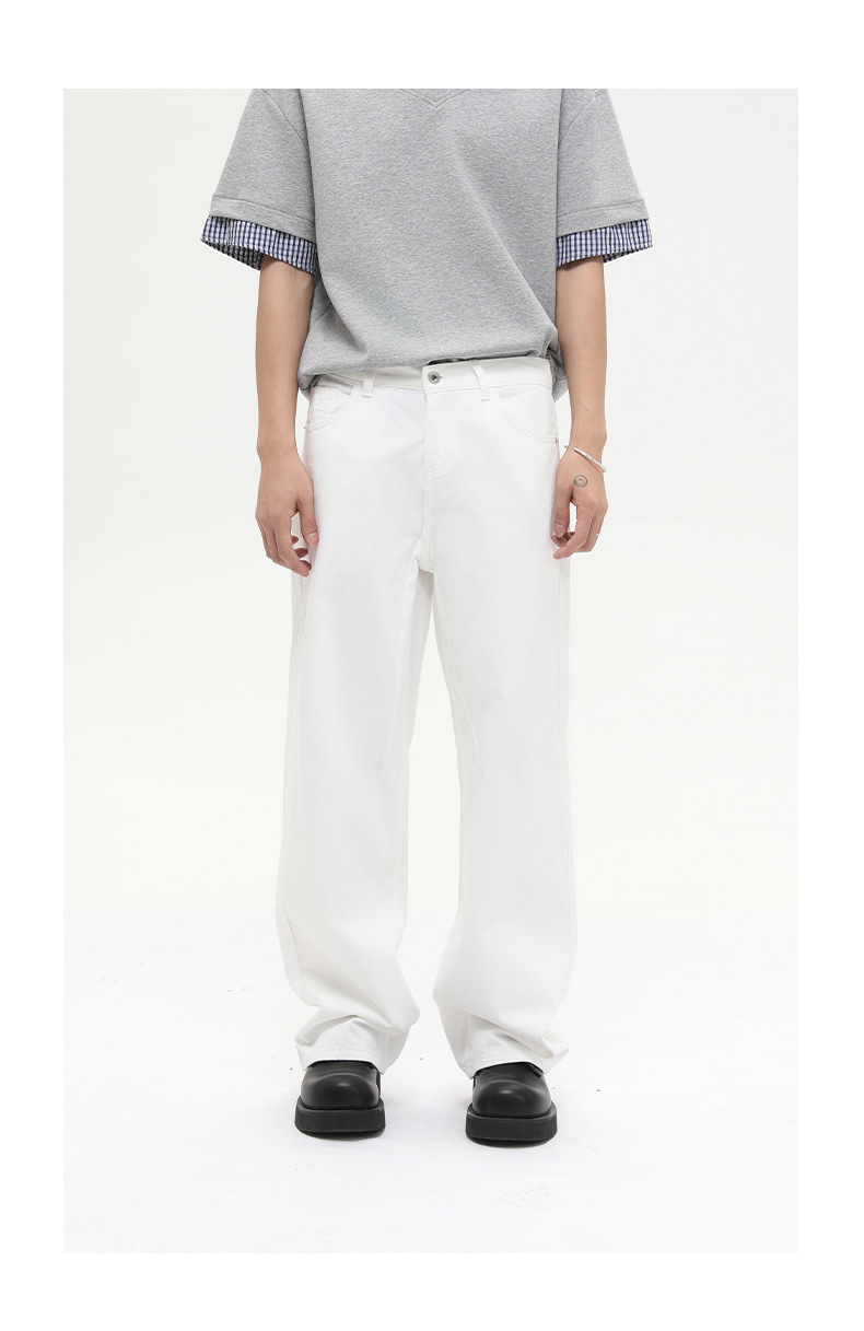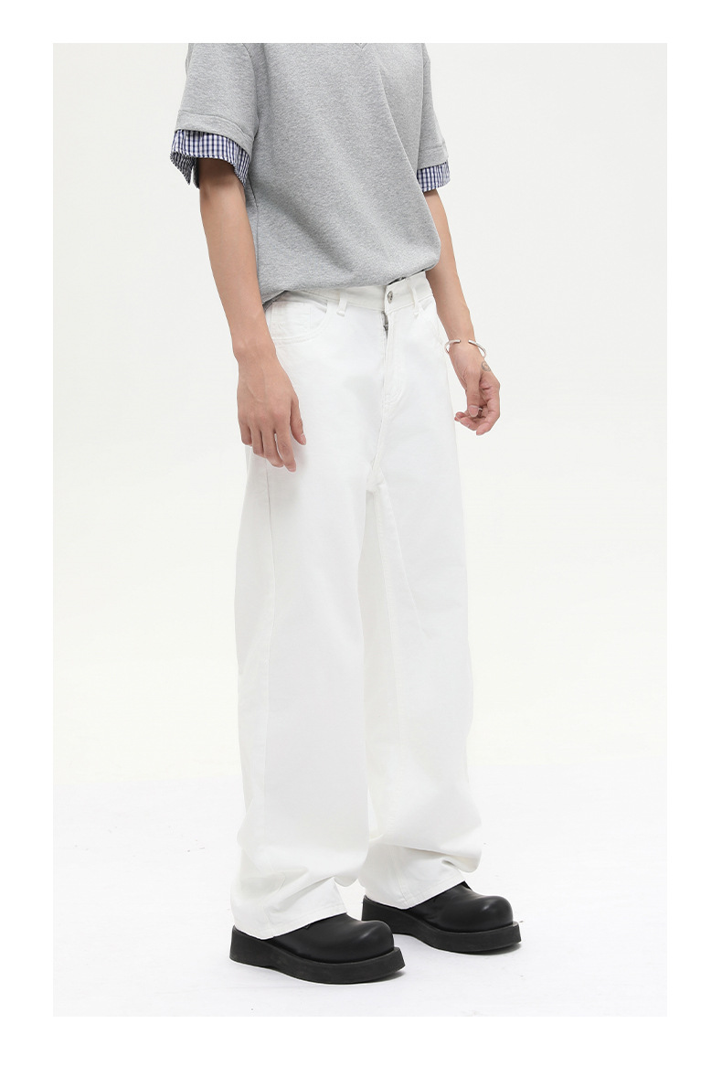 MTLCLOTHES 남성복 | 한국판 솔리드 컬러 심플 베이직 캐주얼 다재다능한 퓨어 코튼 루즈 워싱 청바지스토어 가기