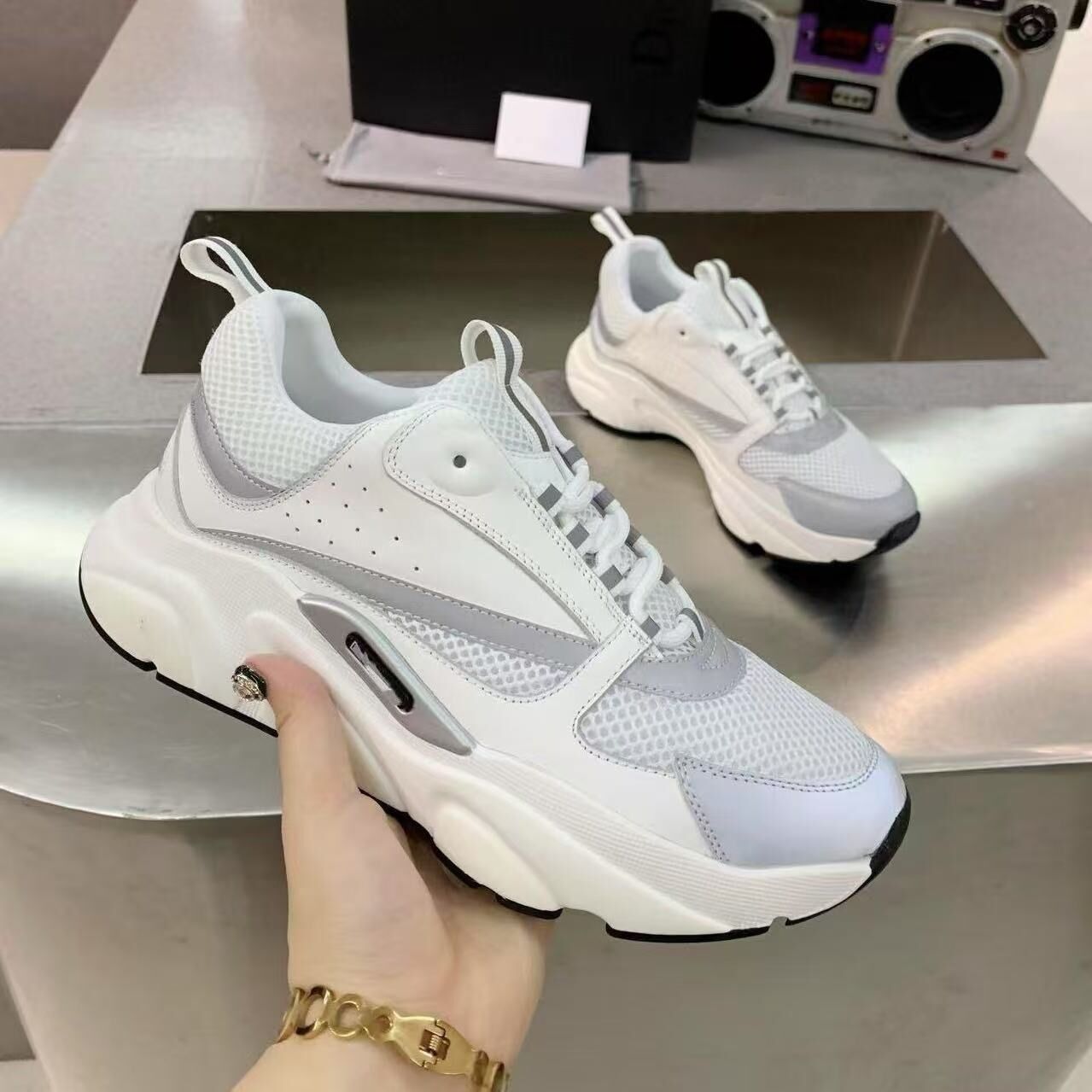 광저우 유럽 스테이션 사계절 운동화 새로운 두꺼운 밑창 발광 편안한 아빠 신발 세련된 통기성 스포츠 신발스토어 가기