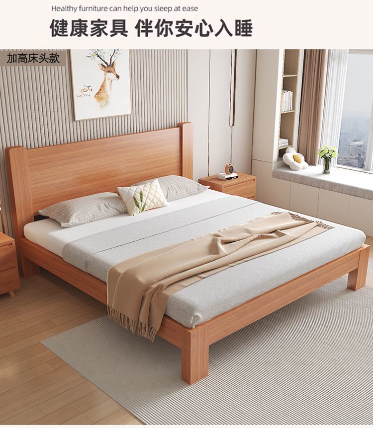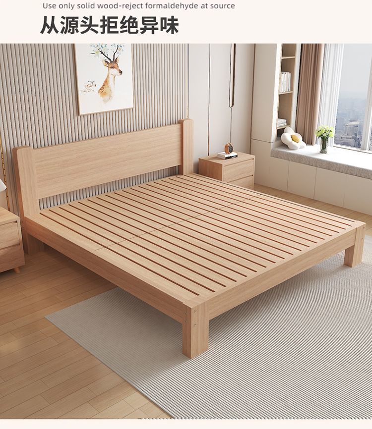 원목침대 더블 1.8m열골대침대 너도밤나무 침대 헤드보드 없음 1.5m 가정용 싱글침대 패널형 어린이침대 1m