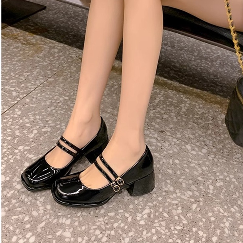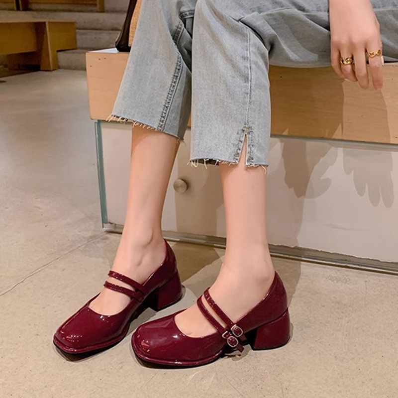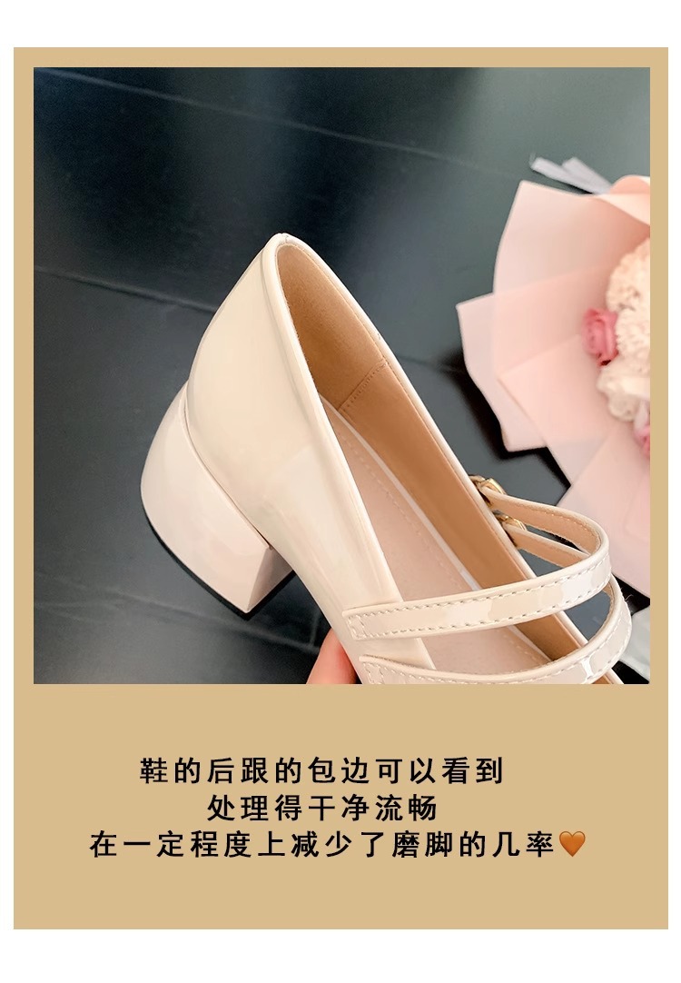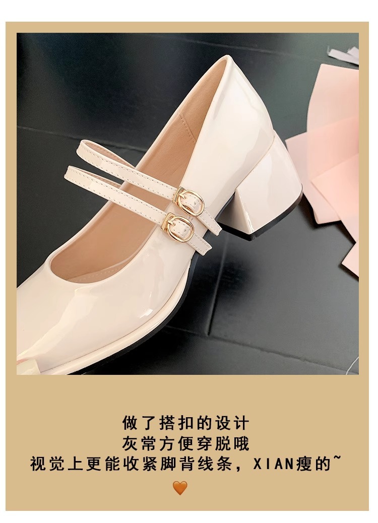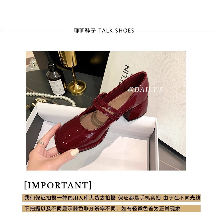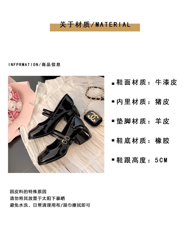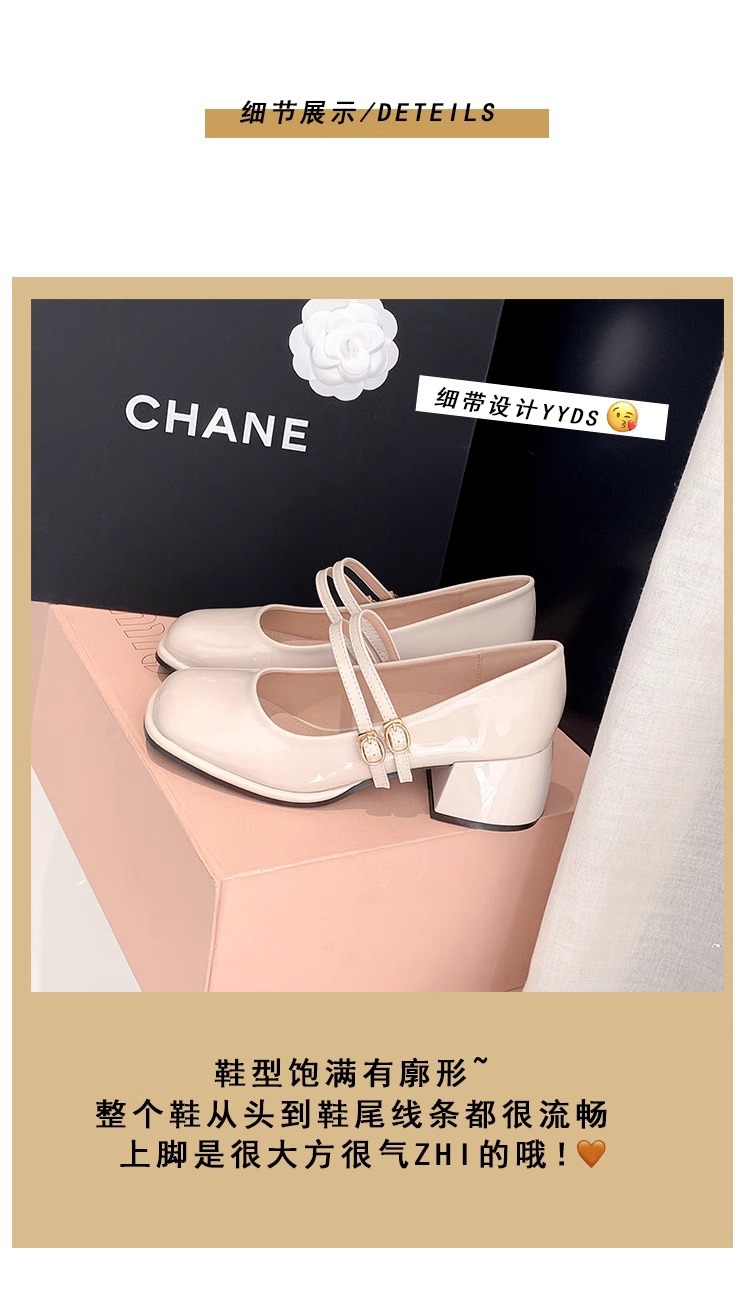 스커트와 어울리는 여성용 천연가죽 하이힐, 프렌치 스타일 슈즈, 야간 부드러운 슈즈, 원라인 스트랩, 페어리 스타일 메리제인 슈즈스토어 가기