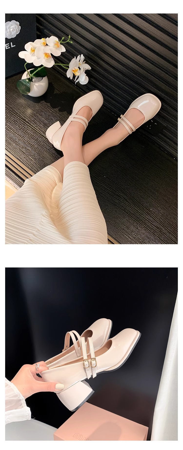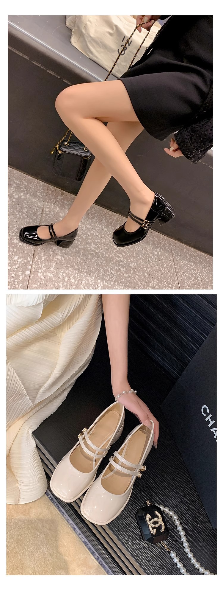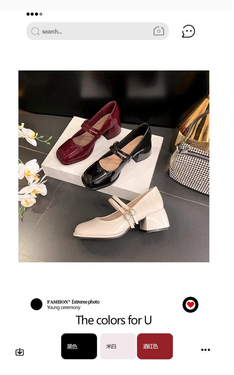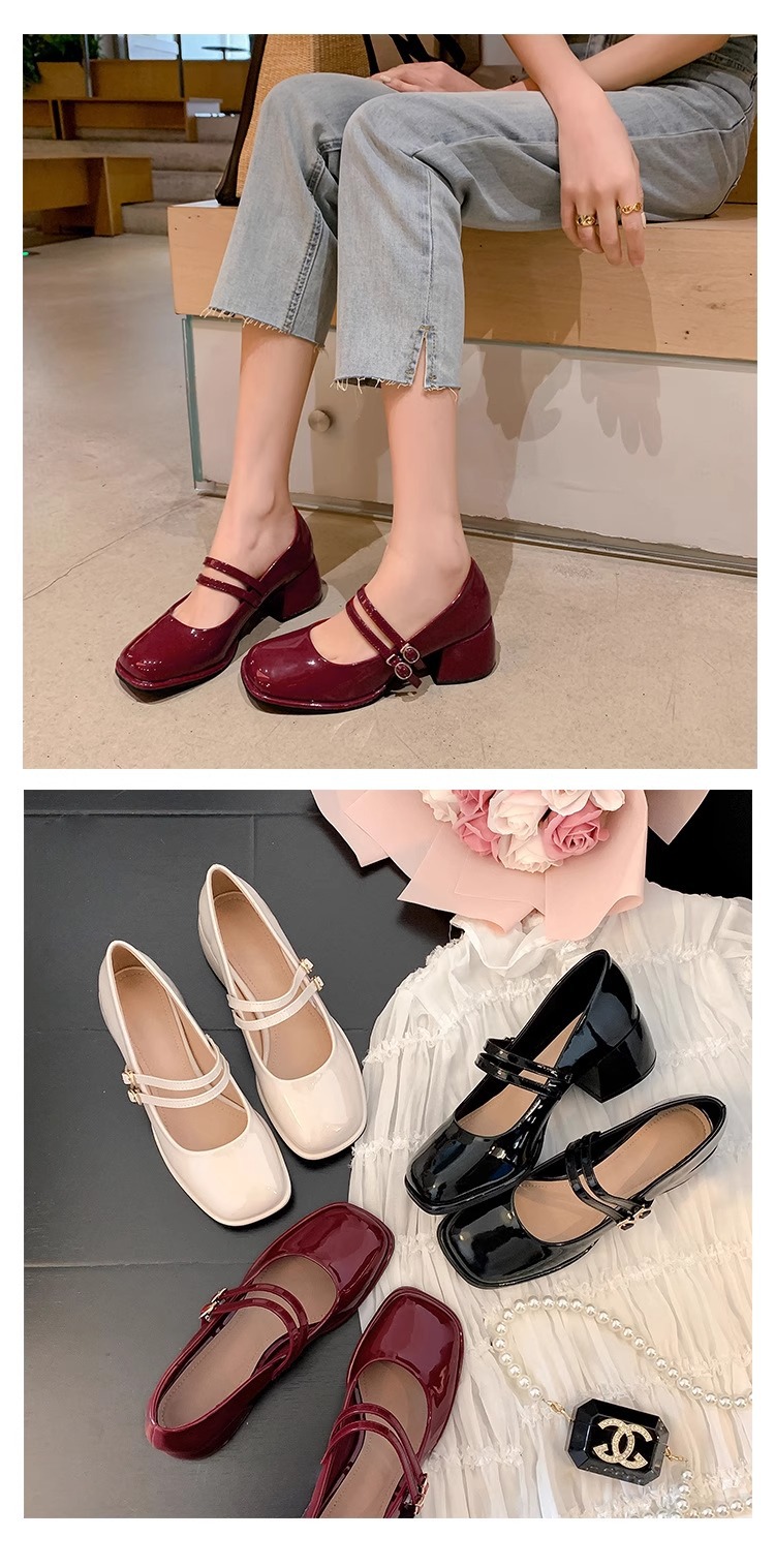 스커트와 어울리는 여성용 천연가죽 하이힐, 프렌치 스타일 슈즈, 야간 부드러운 슈즈, 원라인 스트랩, 페어리 스타일 메리제인 슈즈스토어 가기