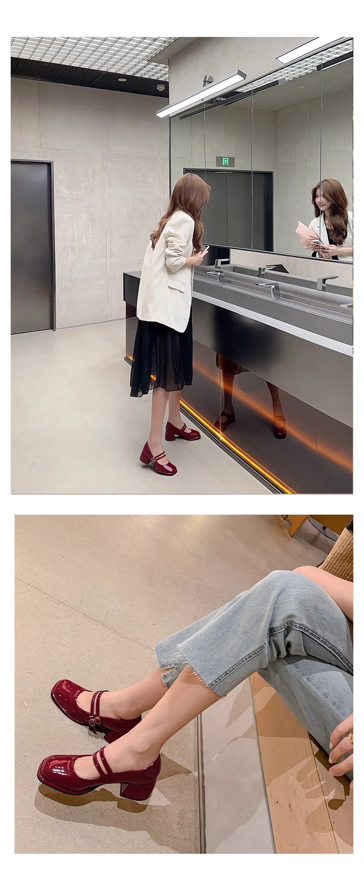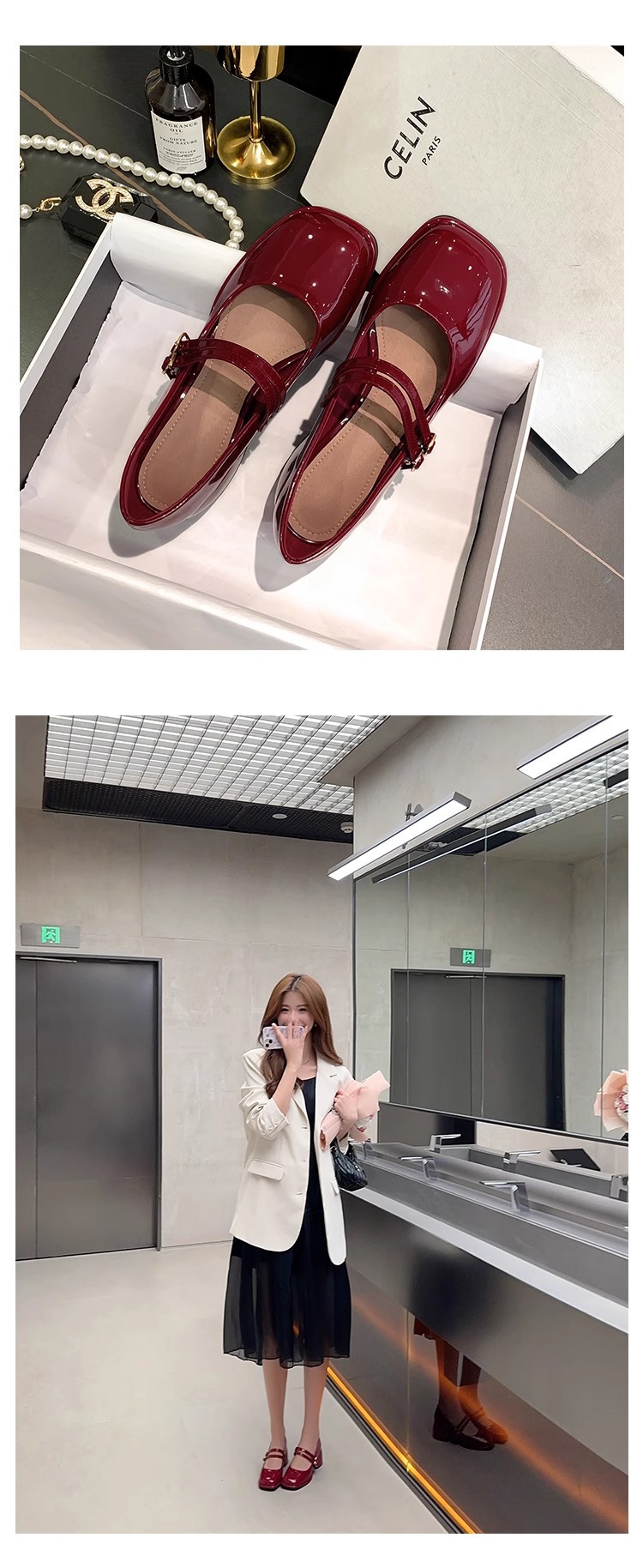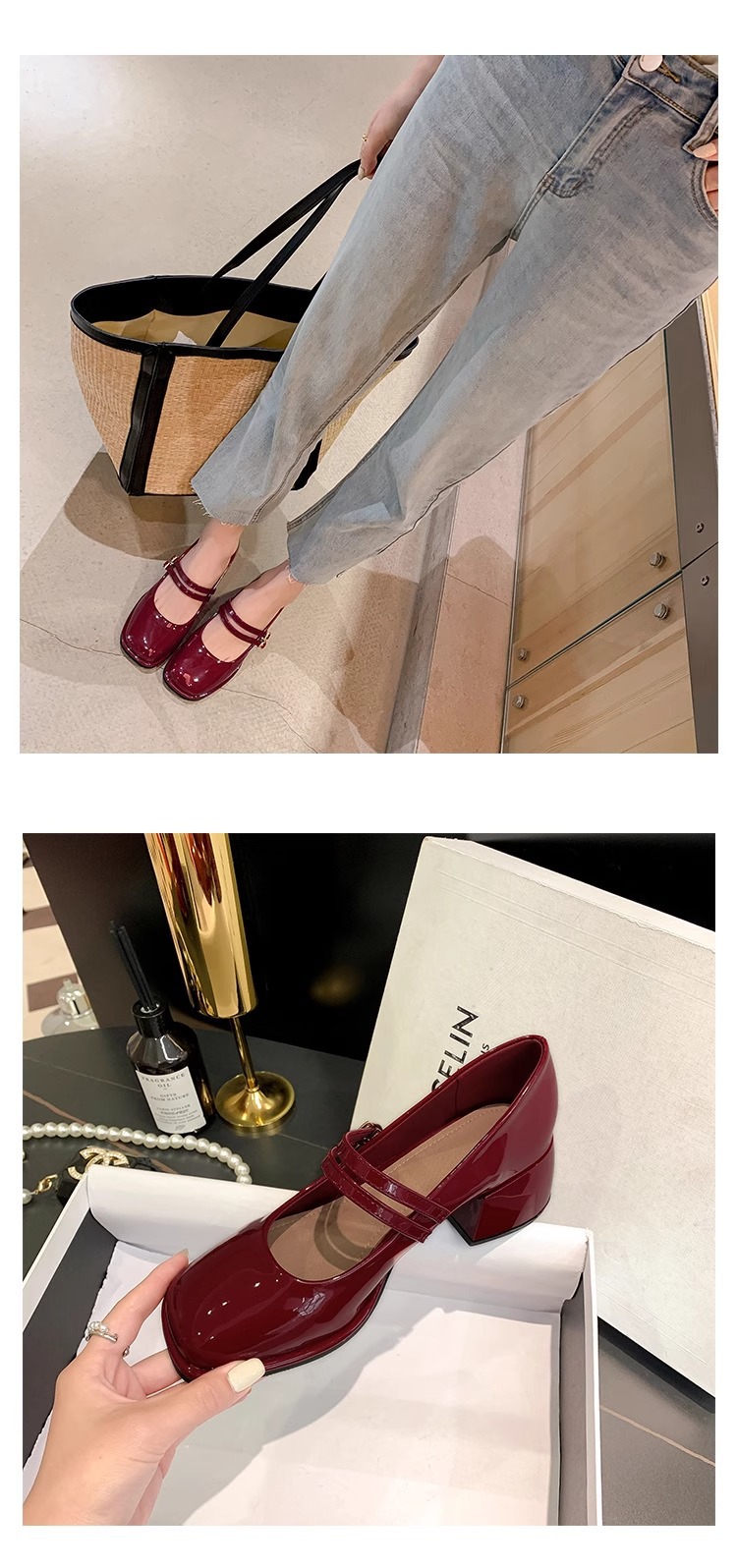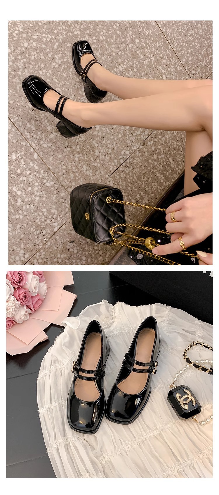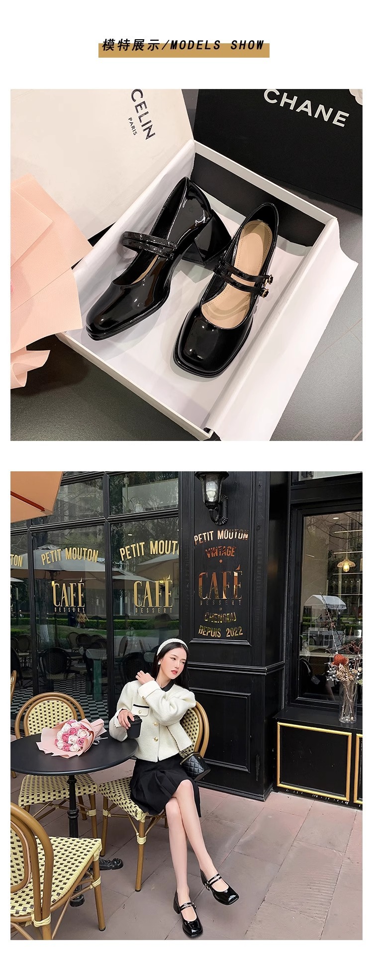 스커트와 어울리는 여성용 천연가죽 하이힐, 프렌치 스타일 슈즈, 야간 부드러운 슈즈, 원라인 스트랩, 페어리 스타일 메리제인 슈즈스토어 가기