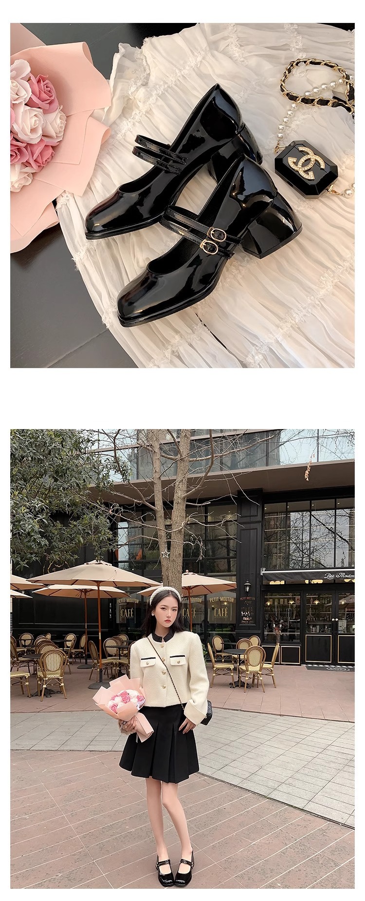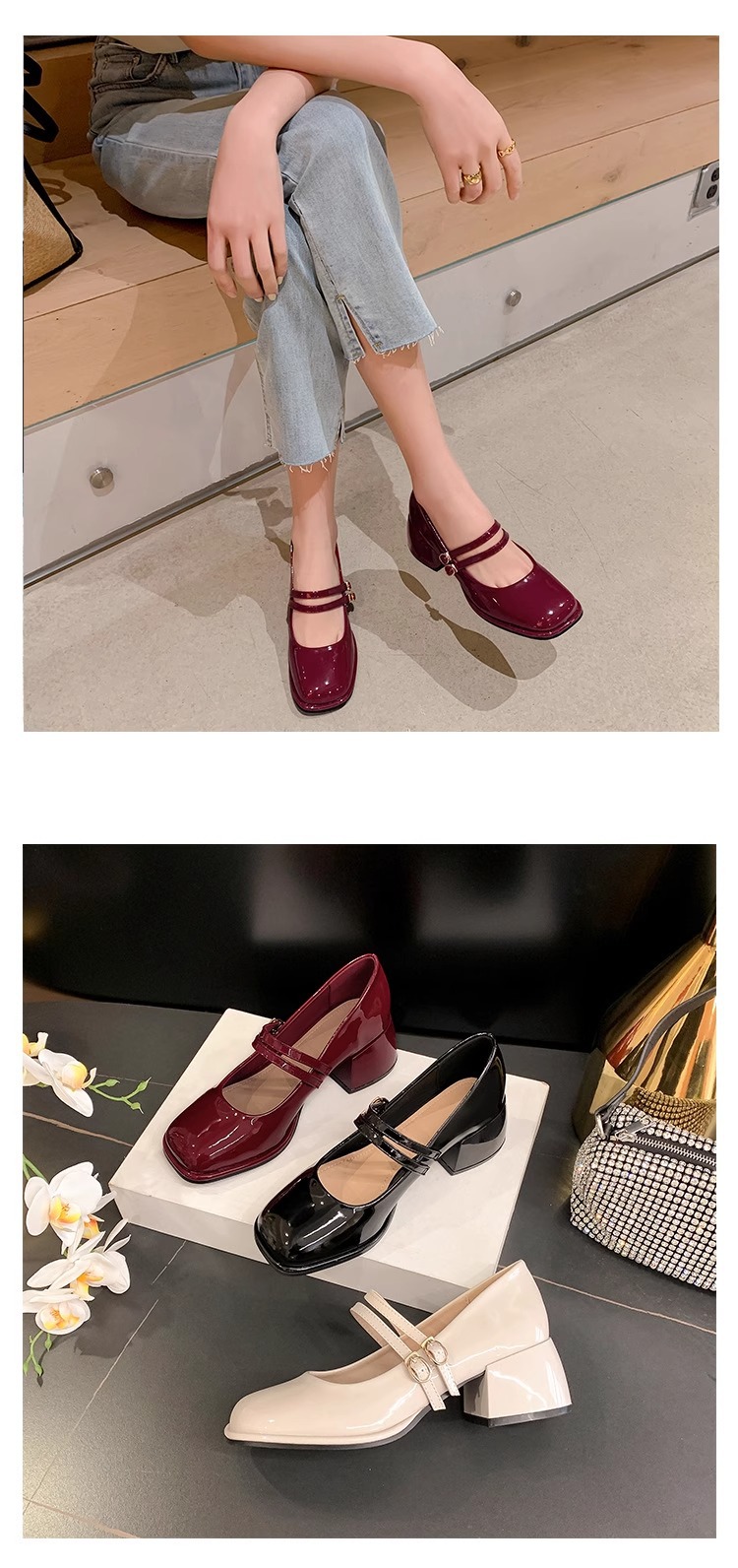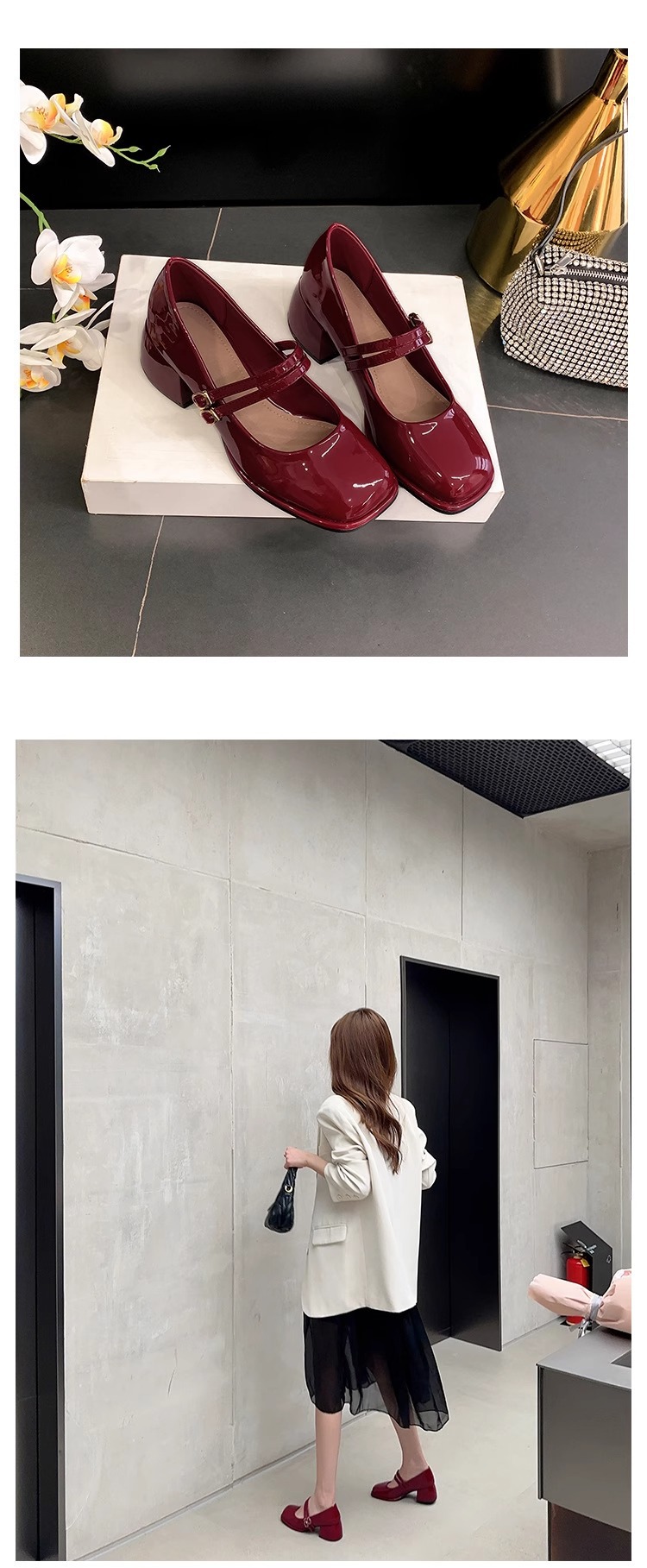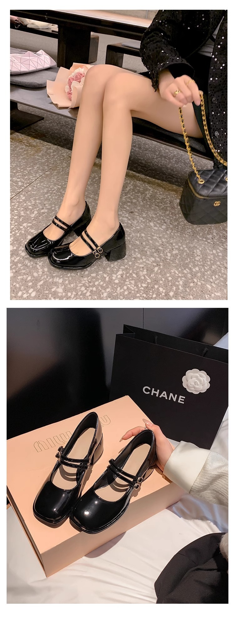 스커트와 어울리는 여성용 천연가죽 하이힐, 프렌치 스타일 슈즈, 야간 부드러운 슈즈, 원라인 스트랩, 페어리 스타일 메리제인 슈즈스토어 가기