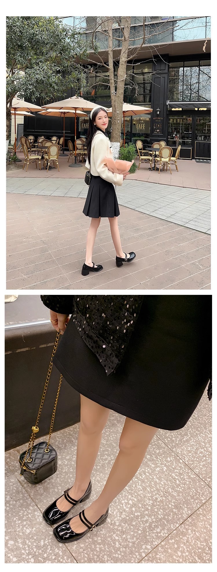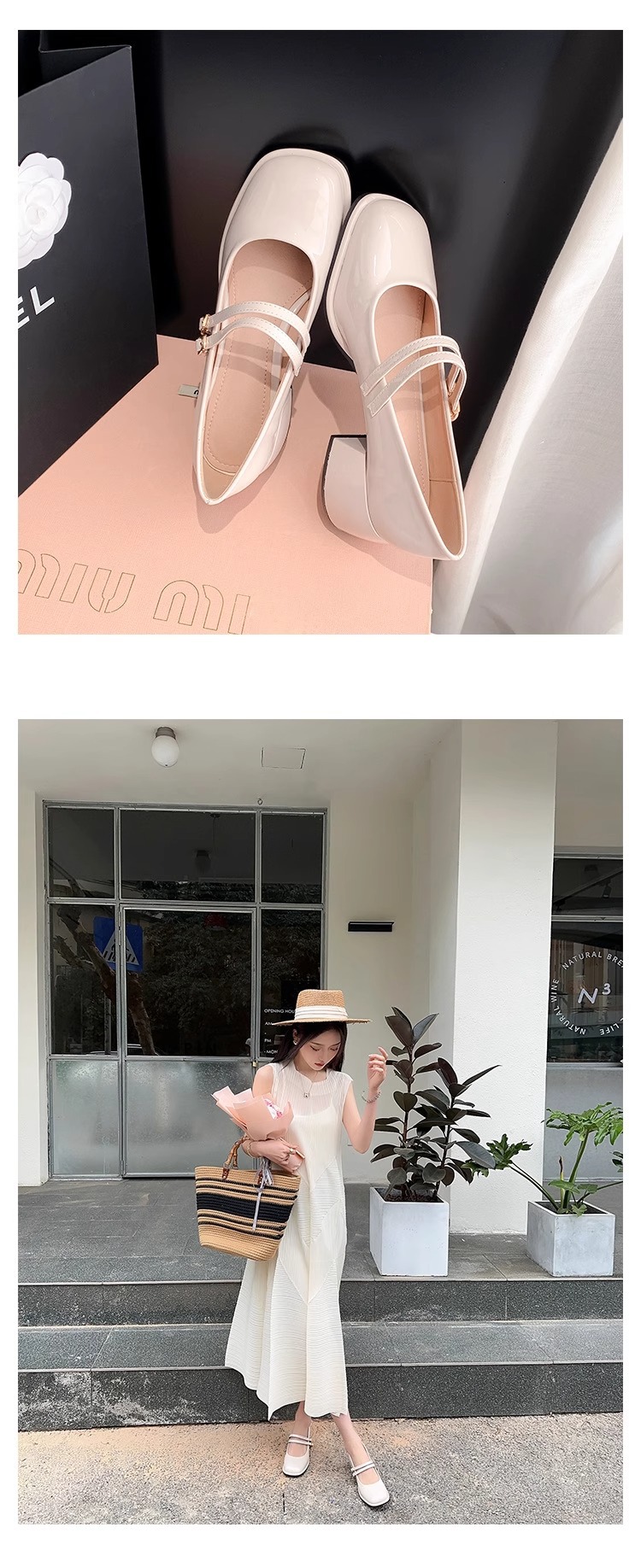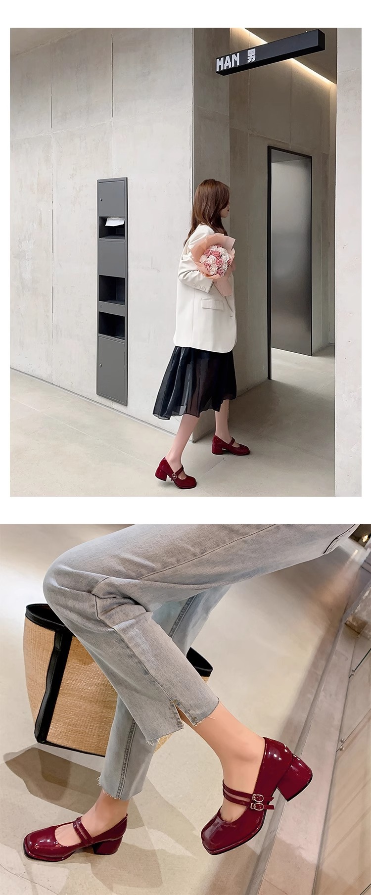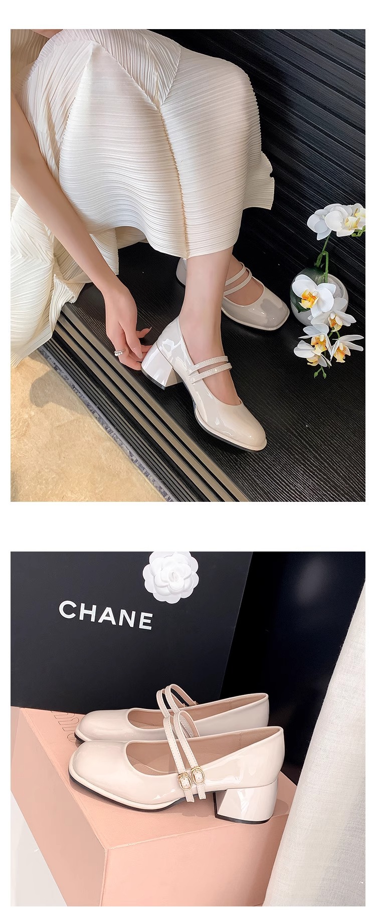 스커트와 어울리는 여성용 천연가죽 하이힐, 프렌치 스타일 슈즈, 야간 부드러운 슈즈, 원라인 스트랩, 페어리 스타일 메리제인 슈즈스토어 가기