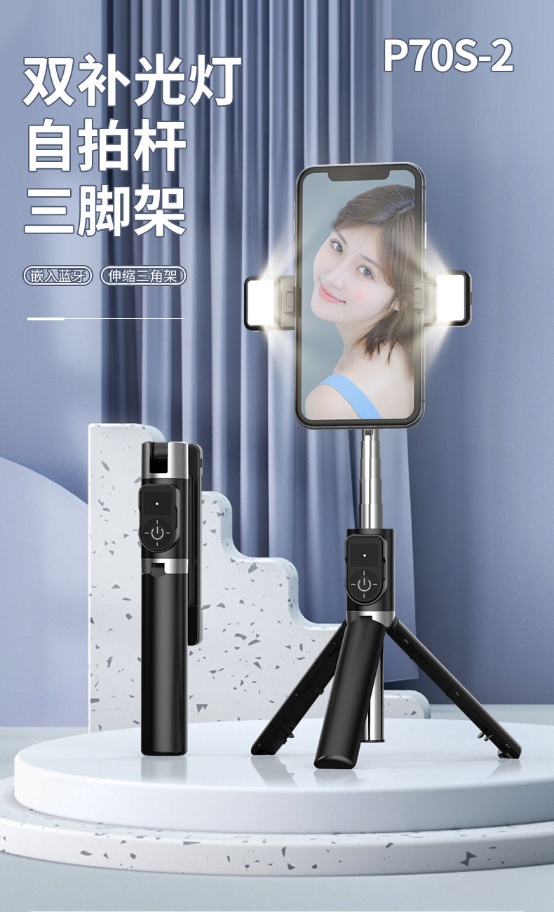 새로운 올인원 휴대 전화 라이브 방송 삼각형 스탠드 P70S 시리즈 블루투스 셀카 스틱 텔레스코픽 막대 야외 휴대용스토어 가기