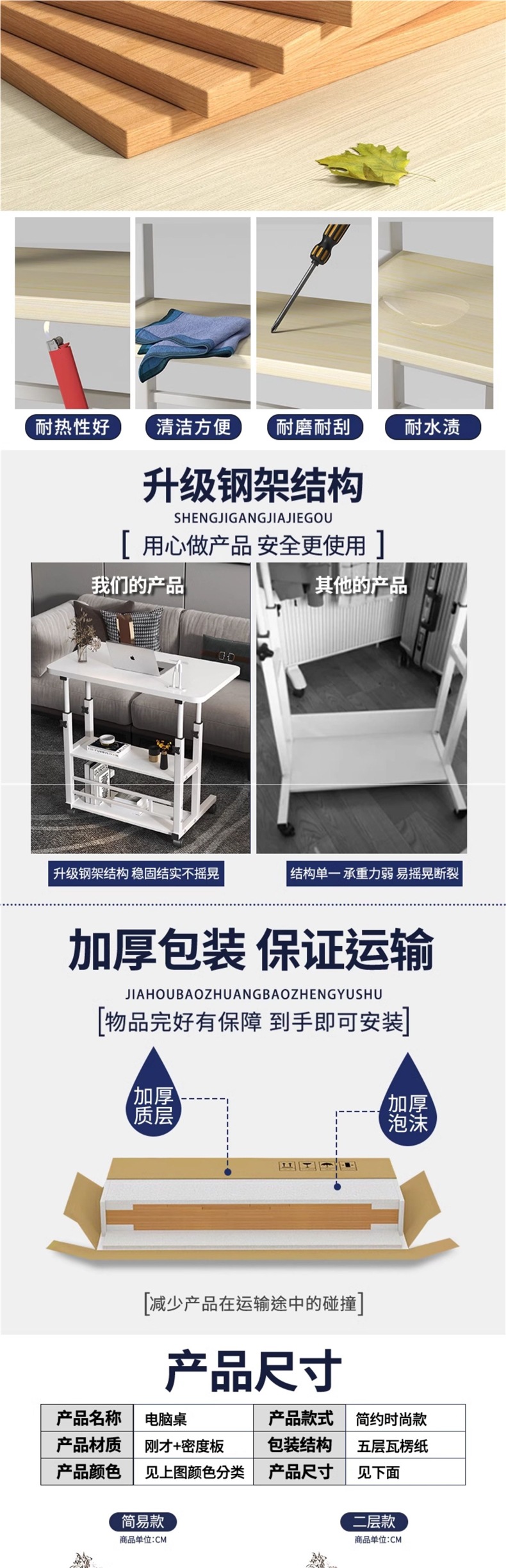 • 3겹[업그레이드된 철골 프레임/두꺼운 데스크탑/바퀴] 단풍색 80*40cm