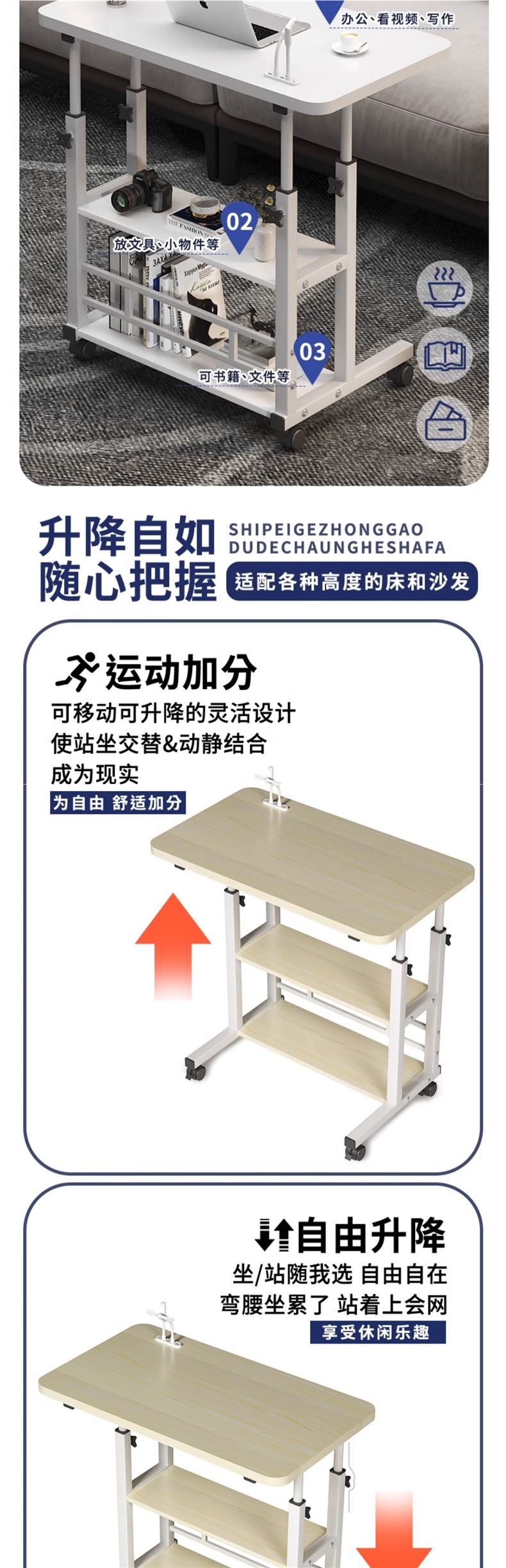 이동식 침대 옆 테이블, 간단한 작은 테이블, 침실, 가정 학생 책상, 간단한 리프팅 기숙사 게으른 컴퓨터 책상스토어 가기