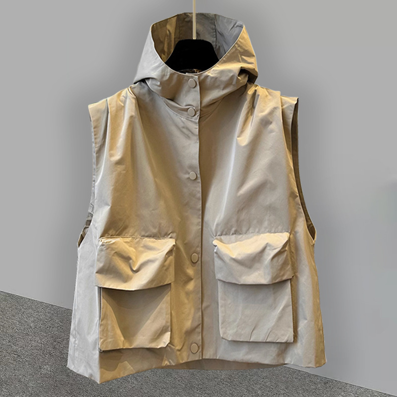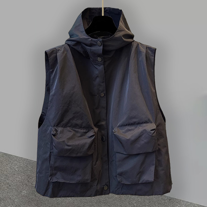 솔리드 컬러 카디건 후드 아우터 조끼 재킷 봄, 가을 트렌디 작업복 남성과 여성을 위한 입체 포켓 디자인 재킷