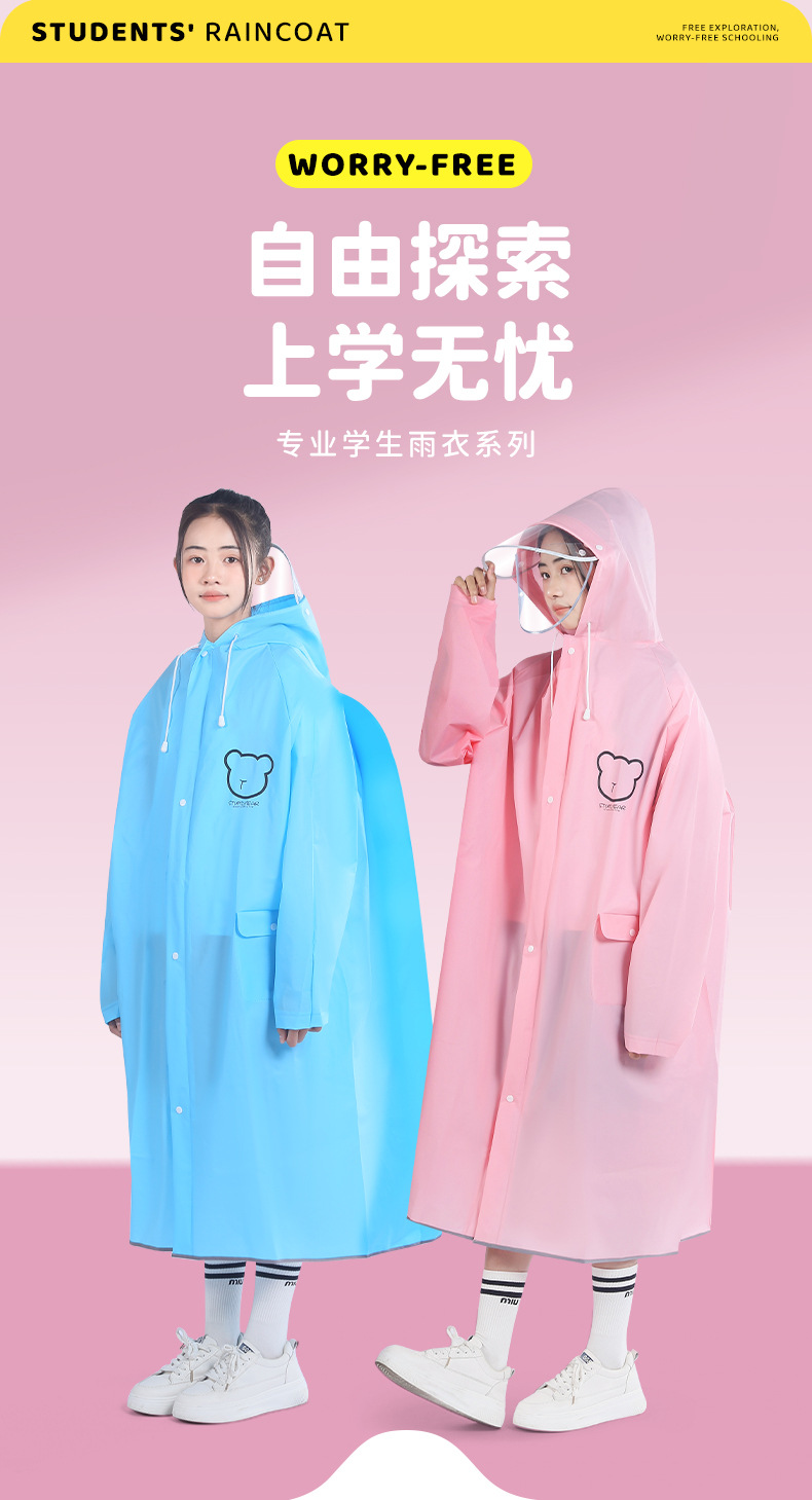 어린이용 이중 챙 두꺼운 일체형 비옷, 폭우 방지, 눈 방지, 만화 프린트, 학교 및 여행용 레인코트스토어 가기