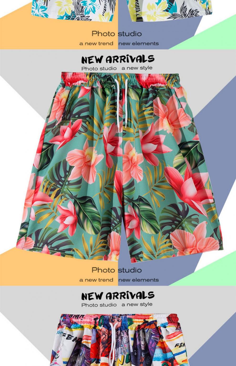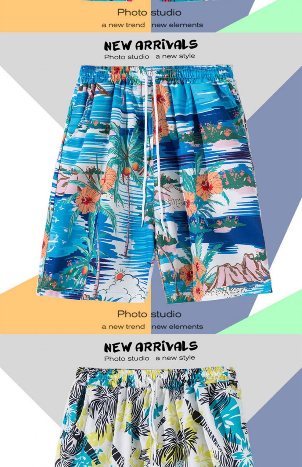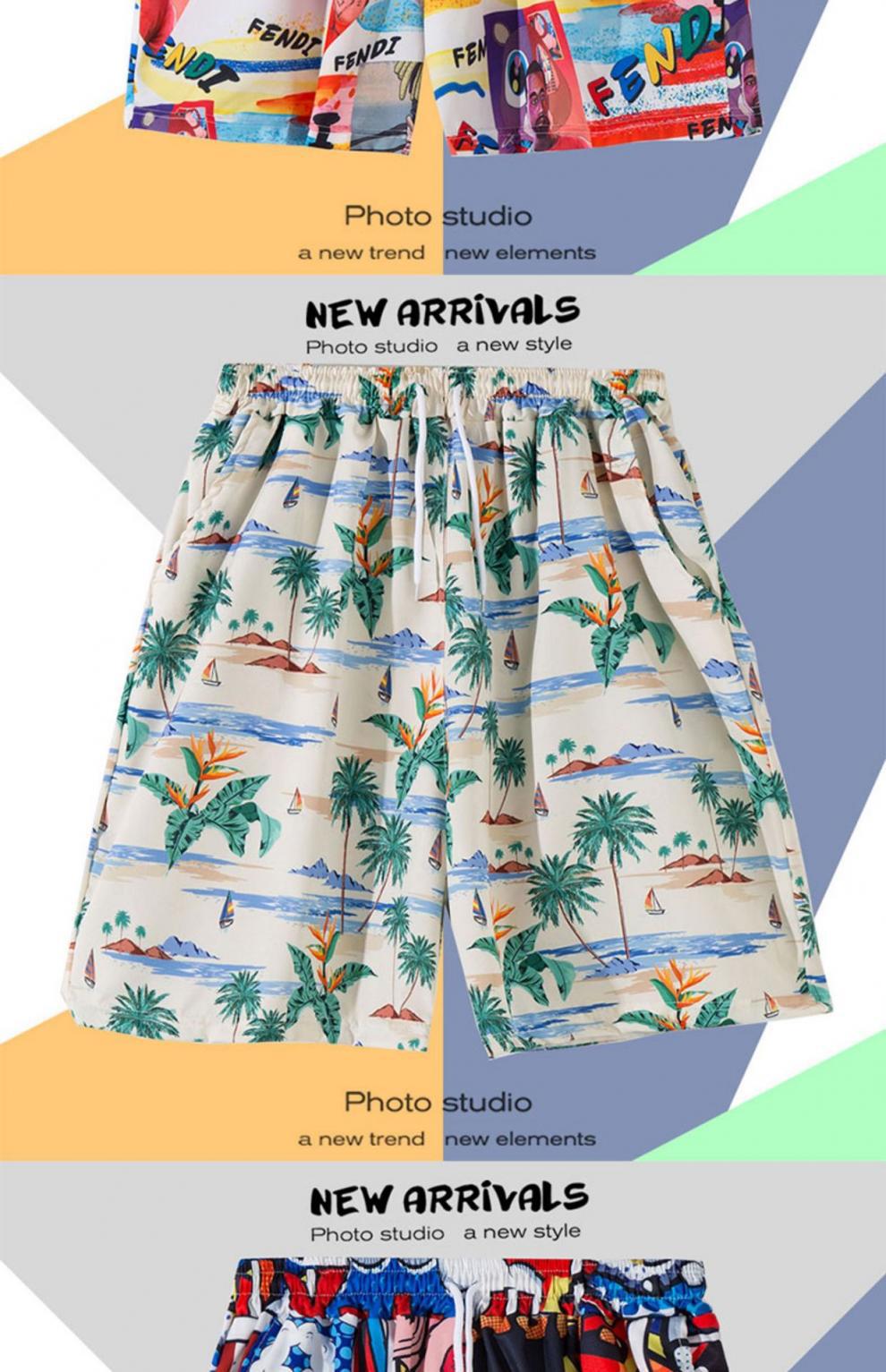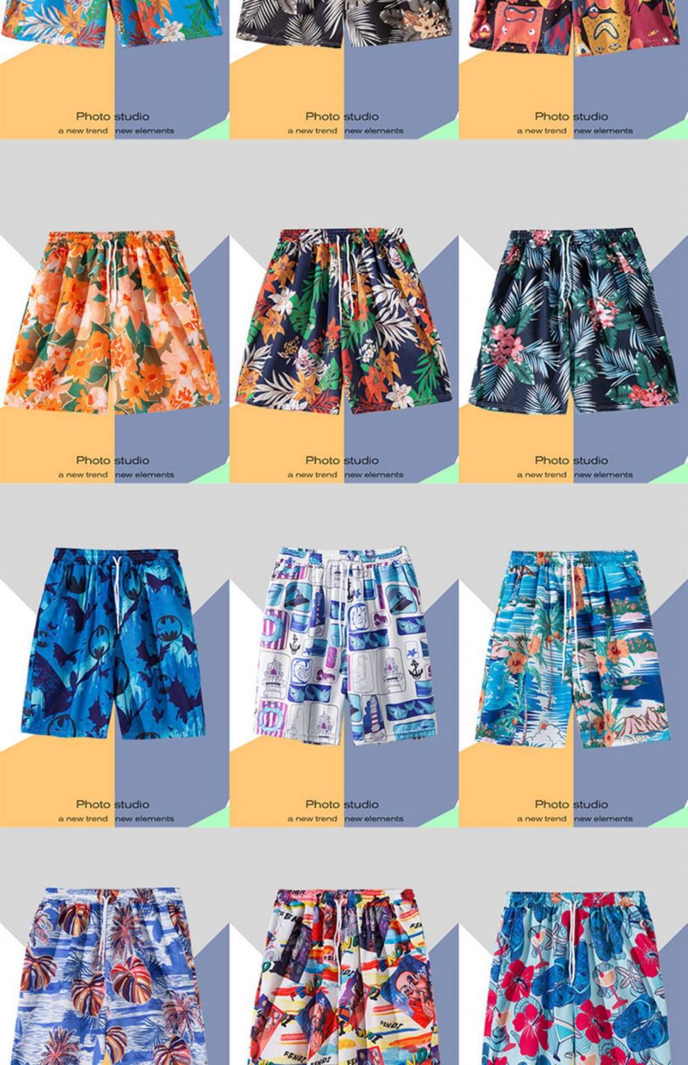 태국 여행 루즈한 대형 트렌디 비치 바지 남성용 속건성 캐주얼 대형 바지 산야 섬 휴가 반바지