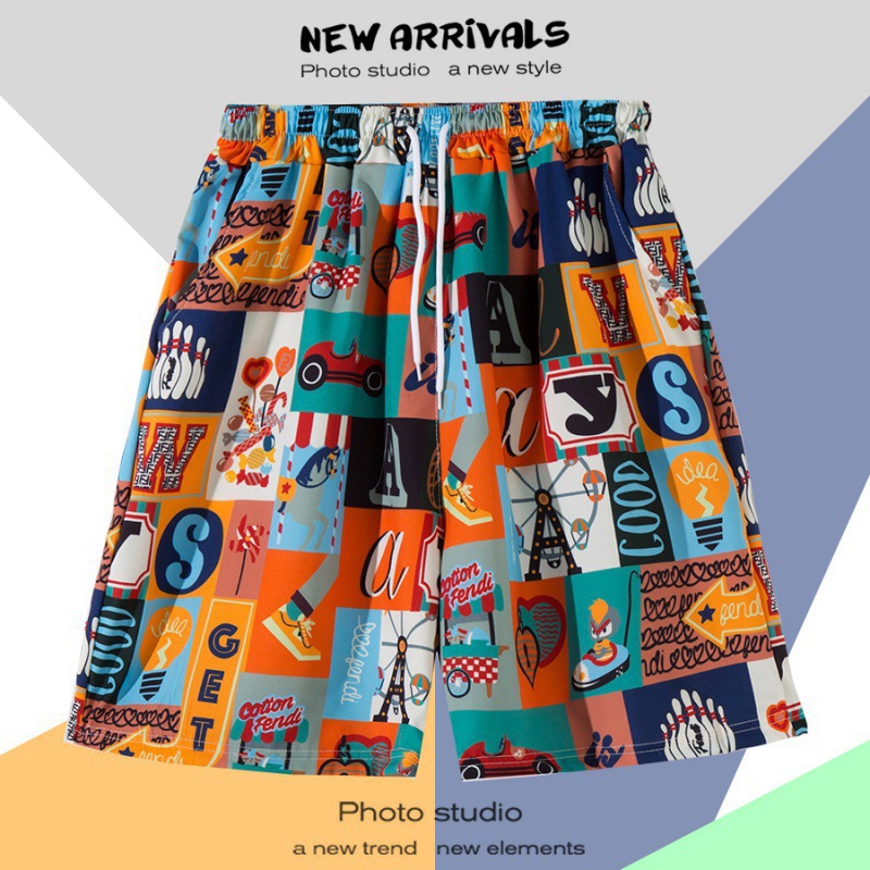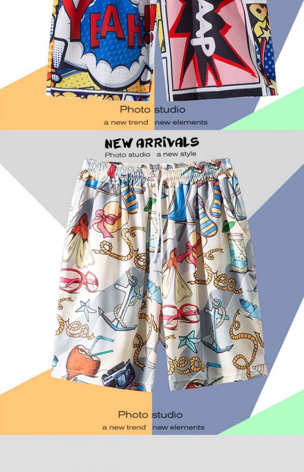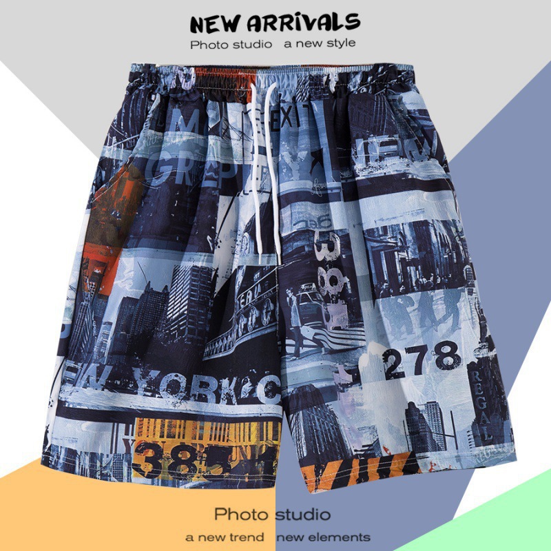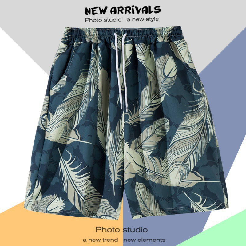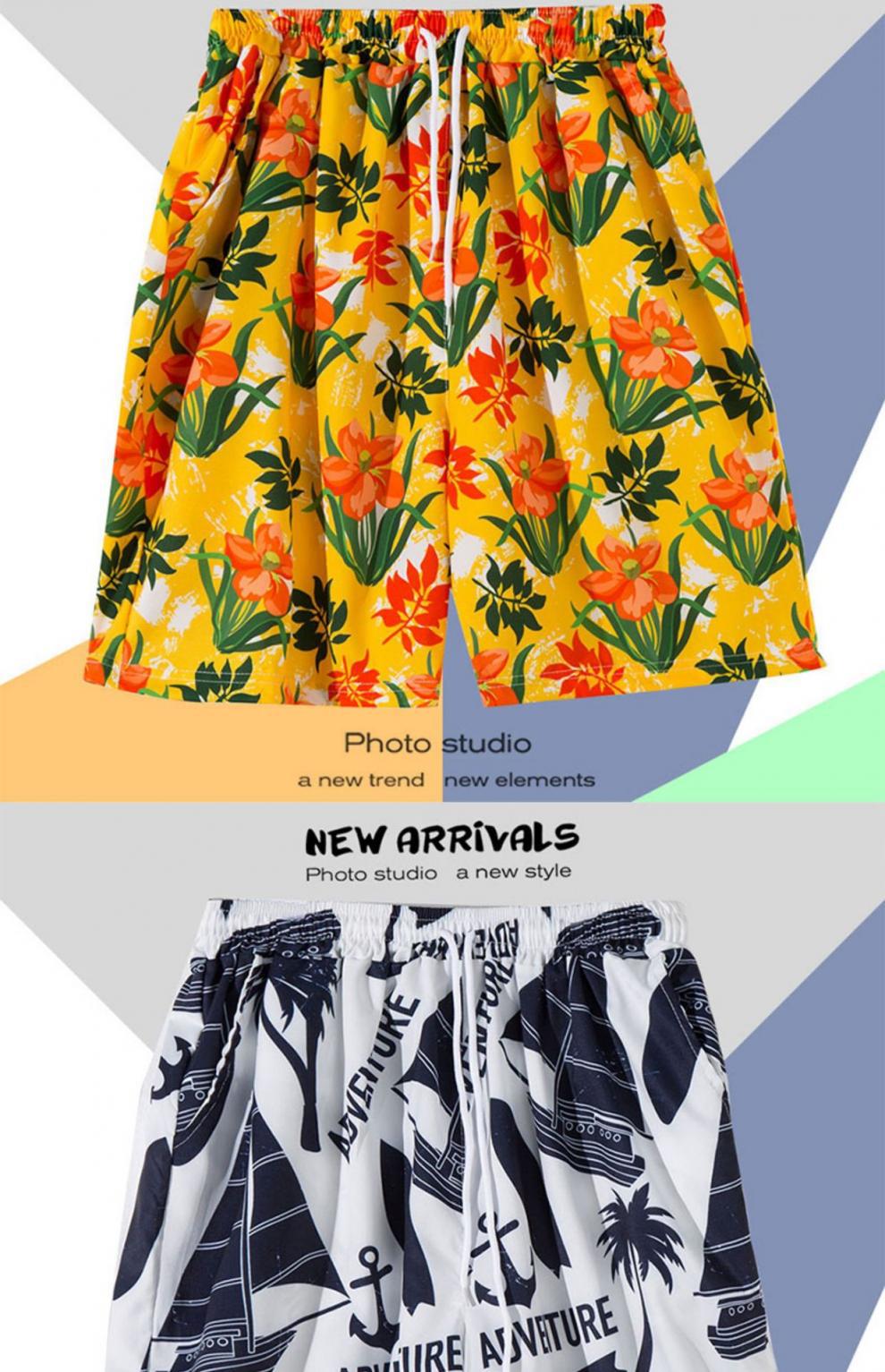 태국 여행 루즈한 대형 트렌디 비치 바지 남성용 속건성 캐주얼 대형 바지 산야 섬 휴가 반바지