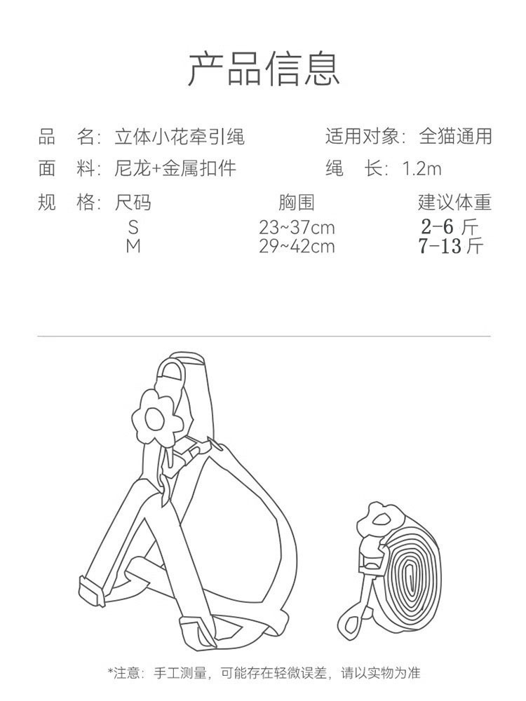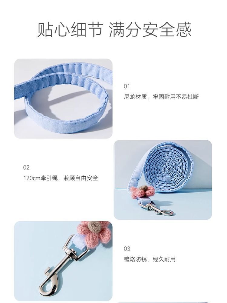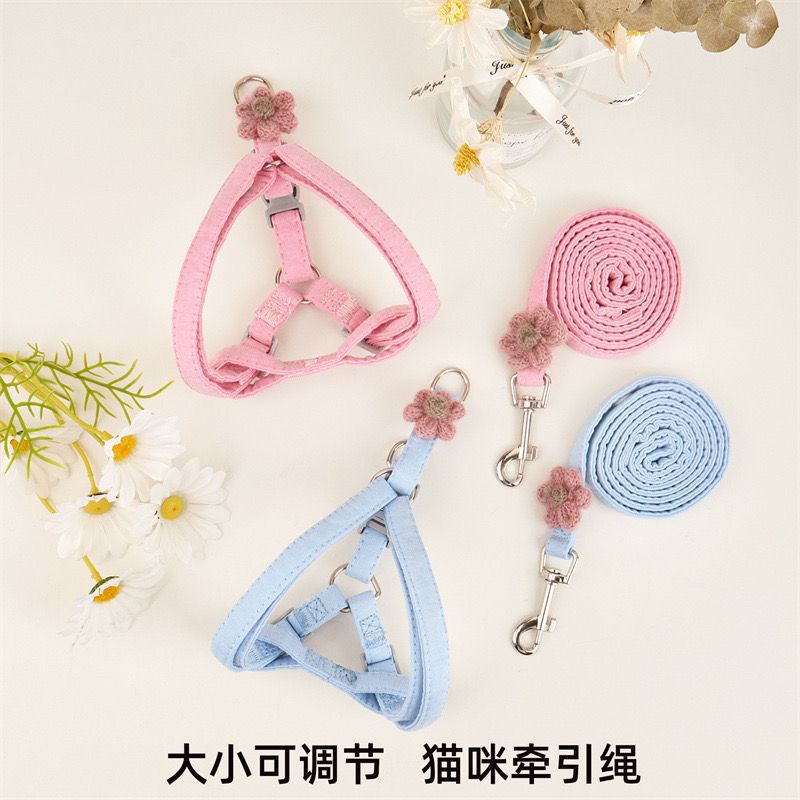 애완 동물 작은 꽃잎 견인 로프, 내구성이 뛰어난 이탈 방지 조끼 스타일, 고양이와 개를 위한 범용 조절 가능, 도매 재고 있음스토어 가기
