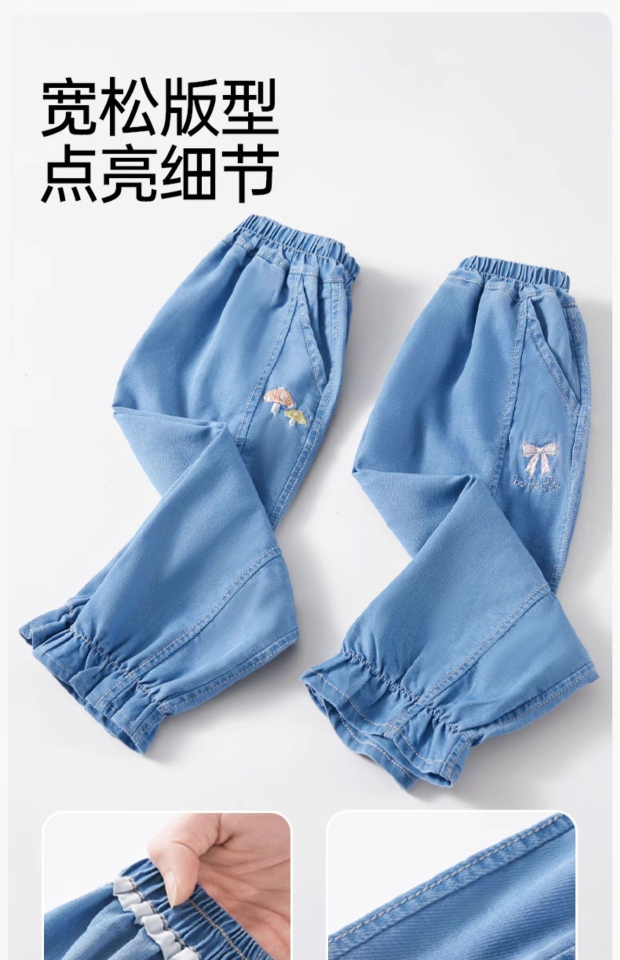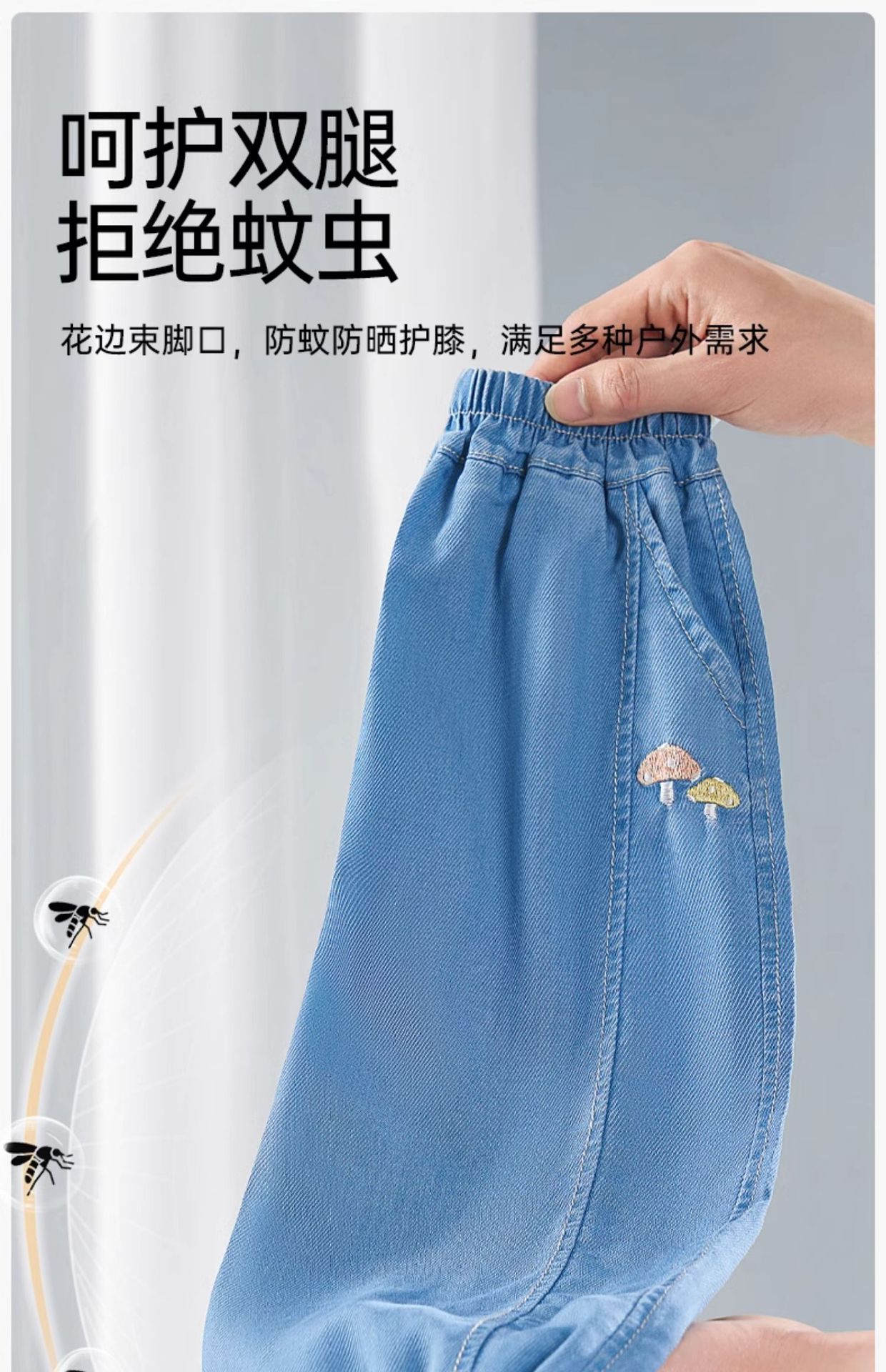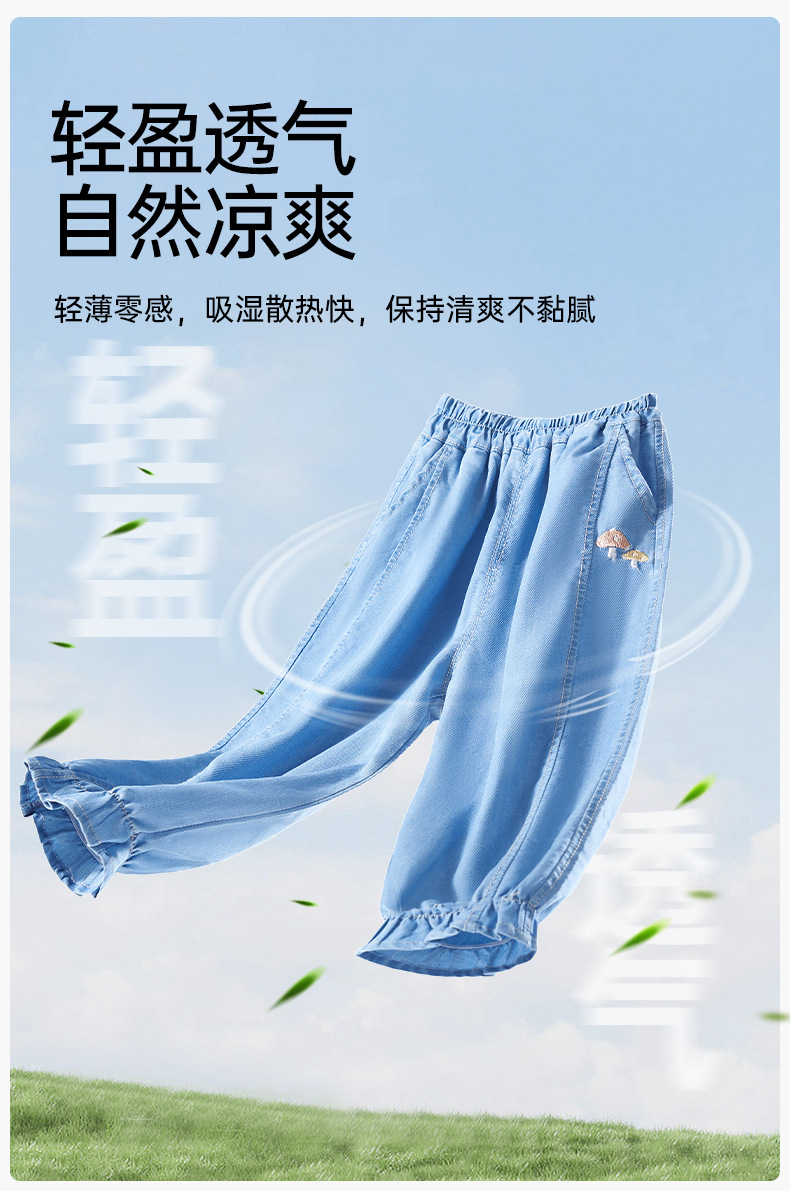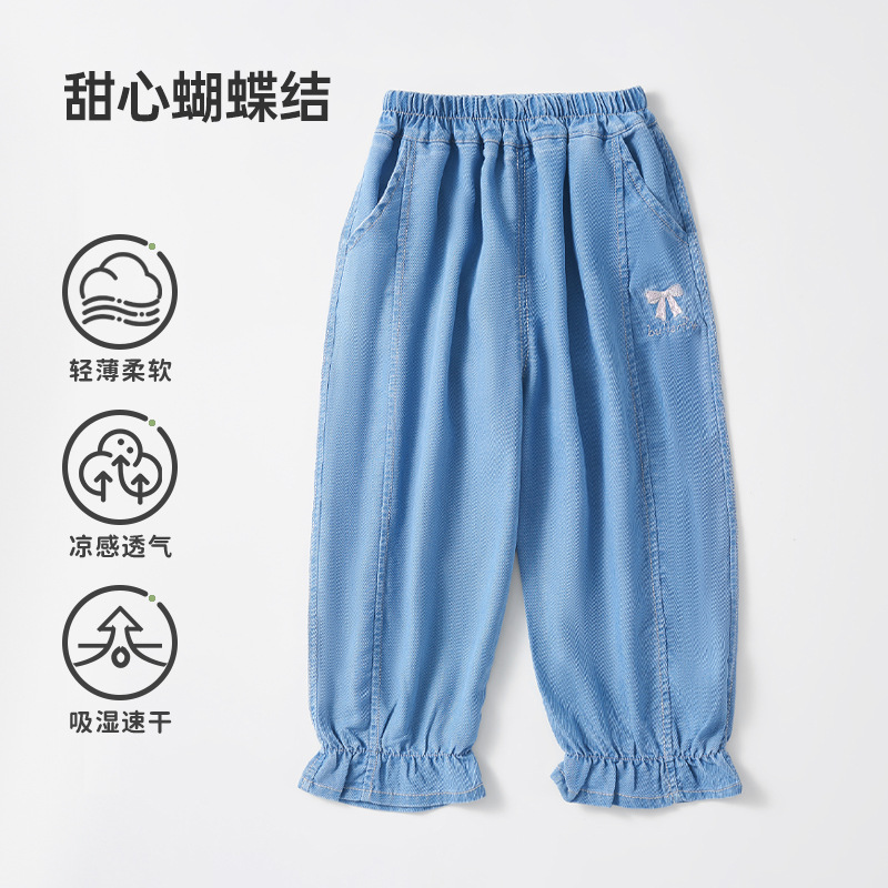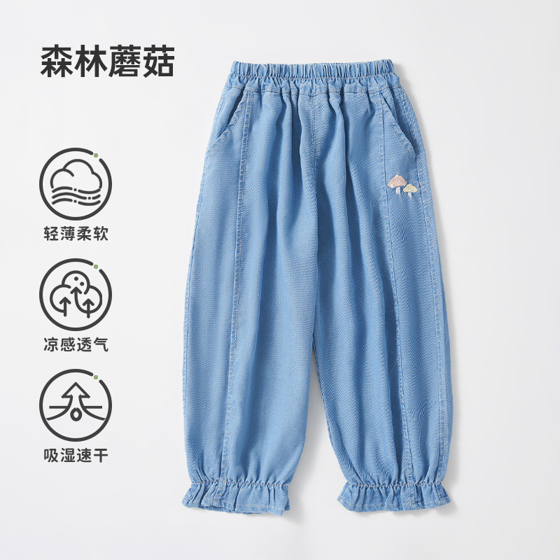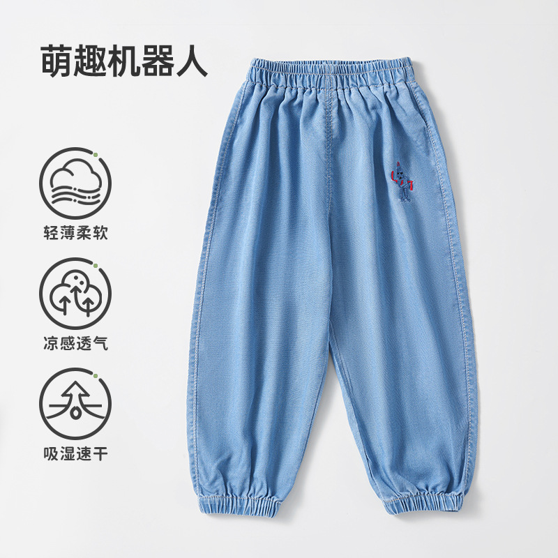 유럽 임신 어린이 청바지 텐셀 모기 방지 바지 봄, 가을 소년과 소녀 2025 새로운 느슨한 통기성 긴 바지스토어 가기