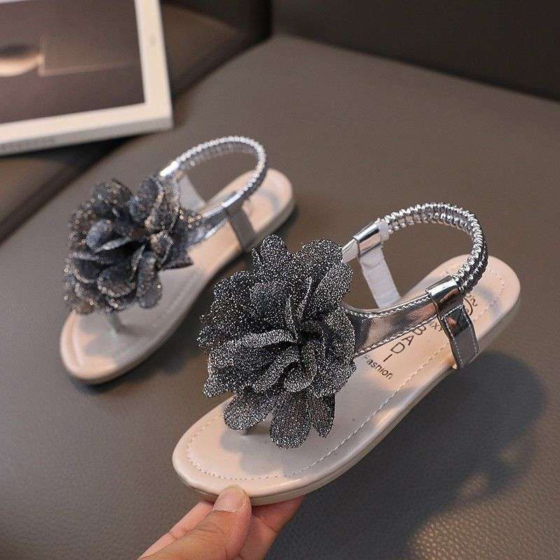 2025 새로운 여름 큰 꽃 플립 플롭 소녀 샌들 어린이 해변 해변 신발 유행 슬리퍼 부모-자식 신발스토어 가기