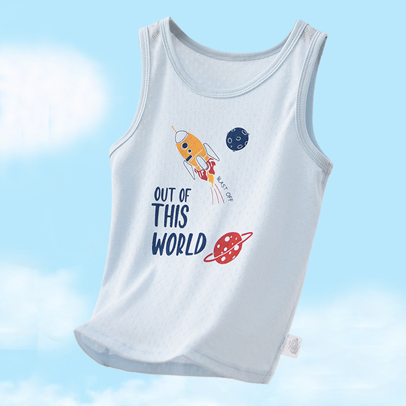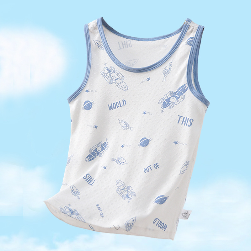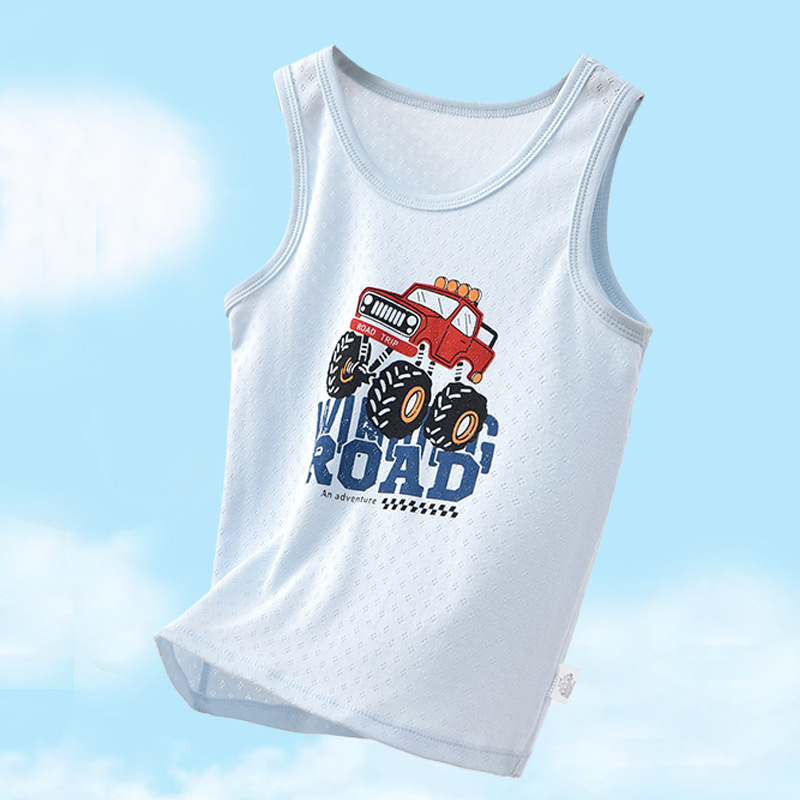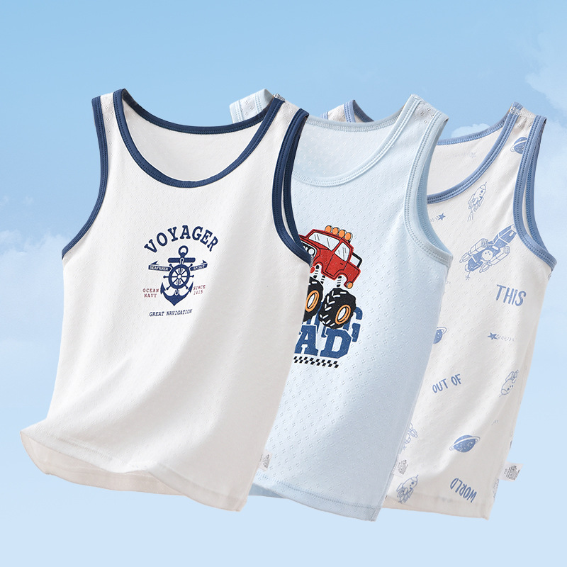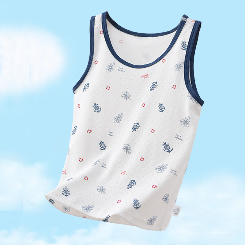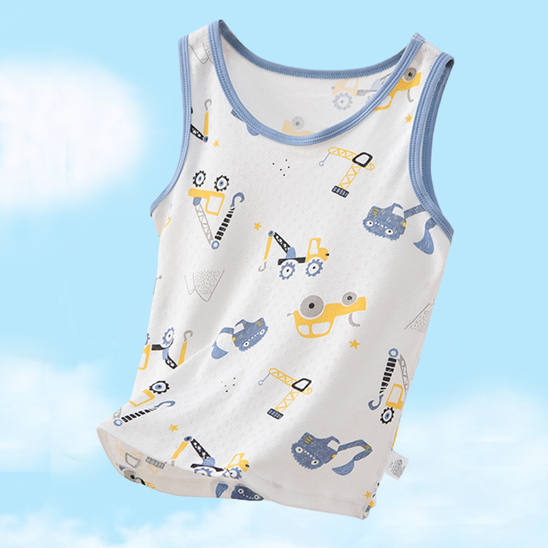 여름 어린이 면화 조끼 소년 얇은 면화 메쉬 통기성 사계절 기본 셔츠 아기 민소매 티셔츠 땀 흡수스토어 가기