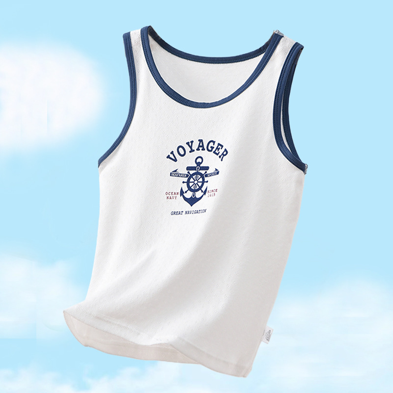 여름 어린이 면화 조끼 소년 얇은 면화 메쉬 통기성 사계절 기본 셔츠 아기 민소매 티셔츠 땀 흡수