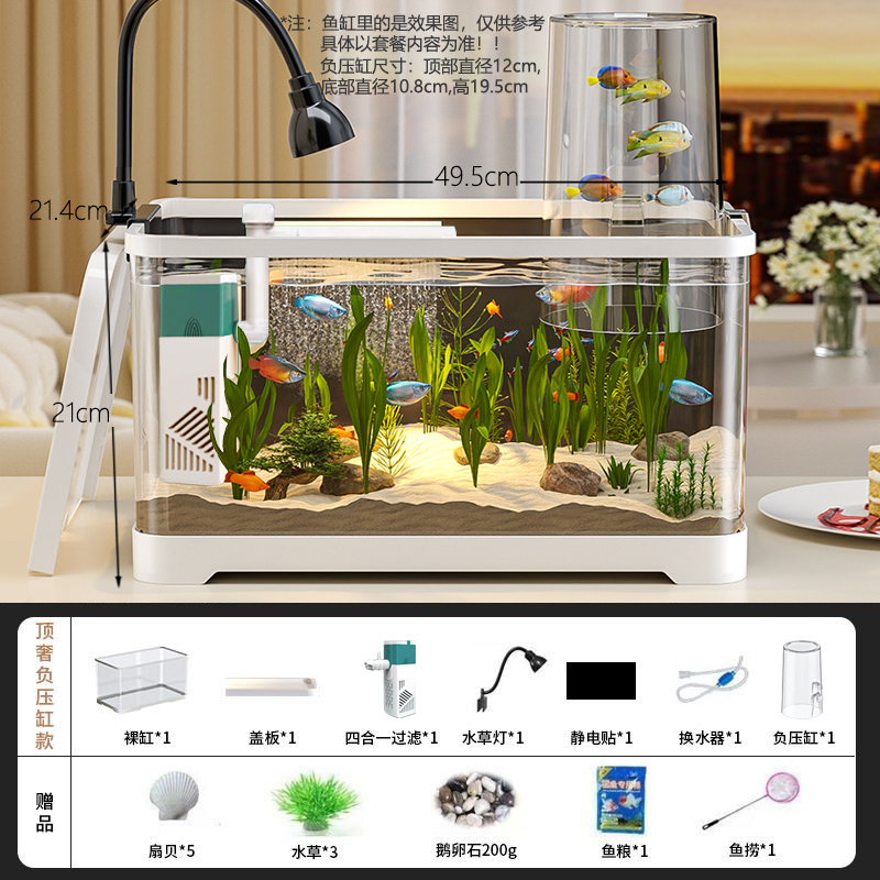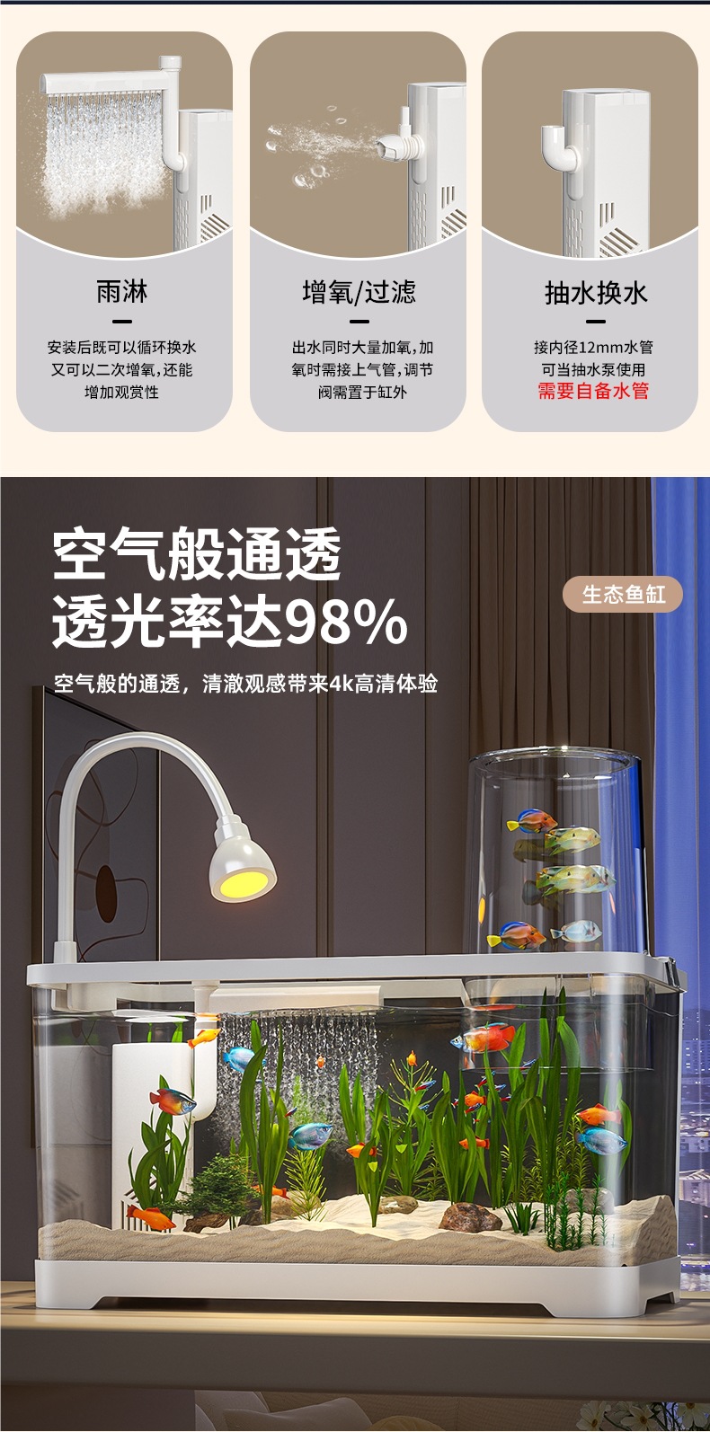 음압 수조 필터링 산소 발생기 일체형 소형 거실 2025 새로운 생태 조경 홈 데스크탑 금붕어 탱크