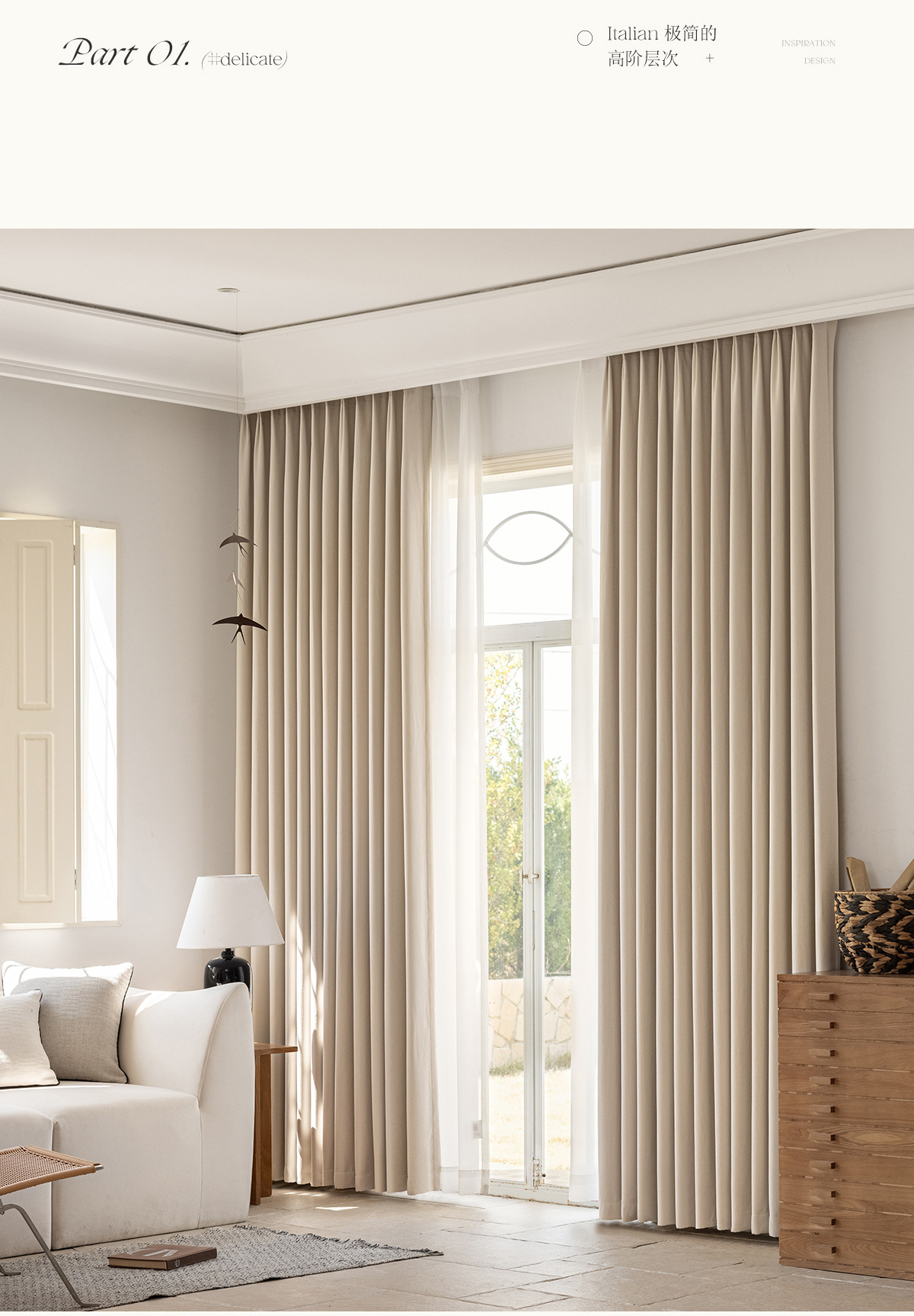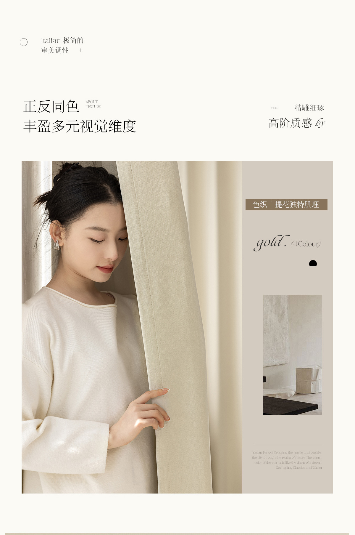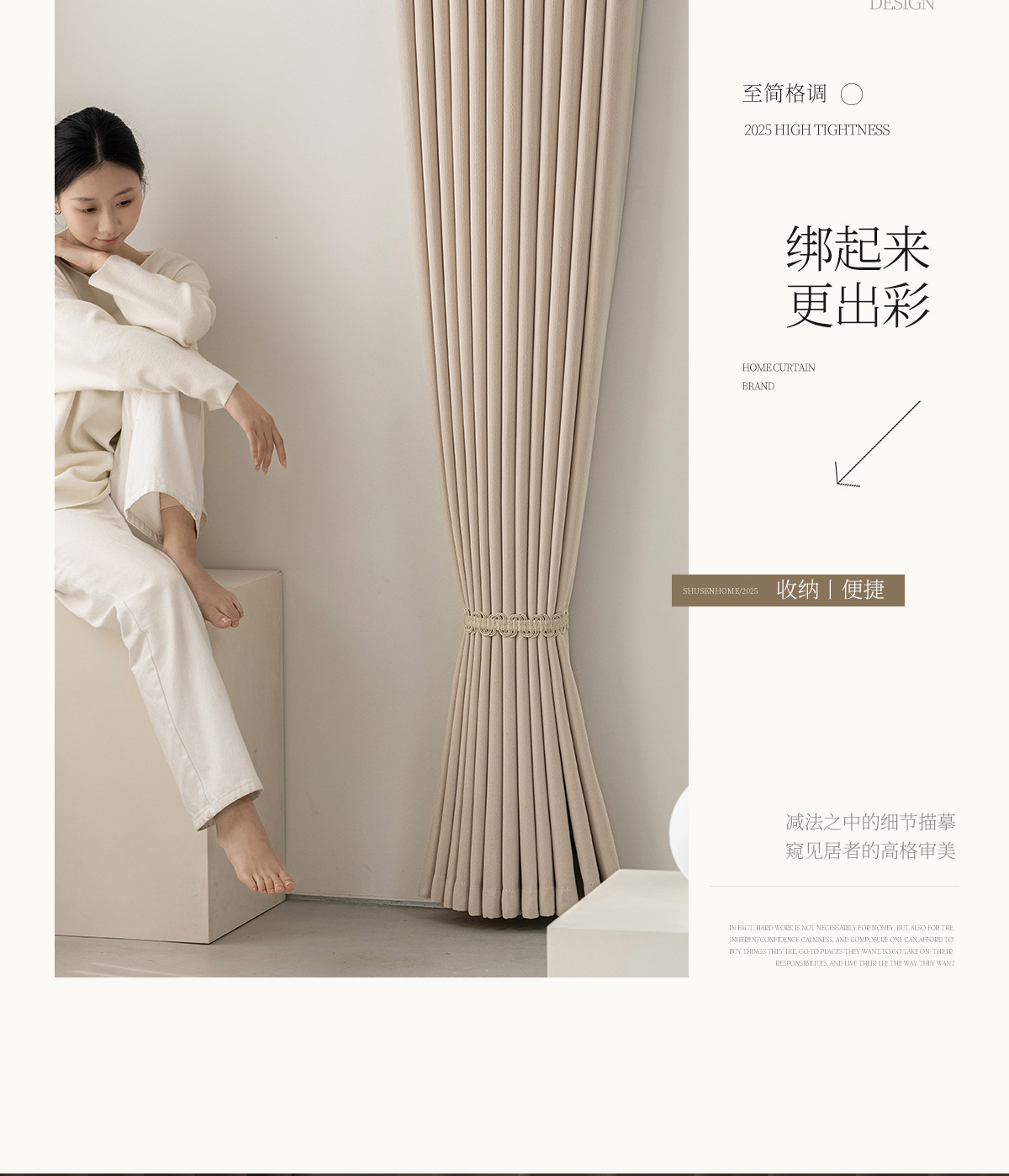 2025년 신상 밀크티 컬러 완전 암막 셔닐 커튼, 쇼핑 케차오 거실 및 침실용 고급 스타일의 투명창 커튼스토어 가기
