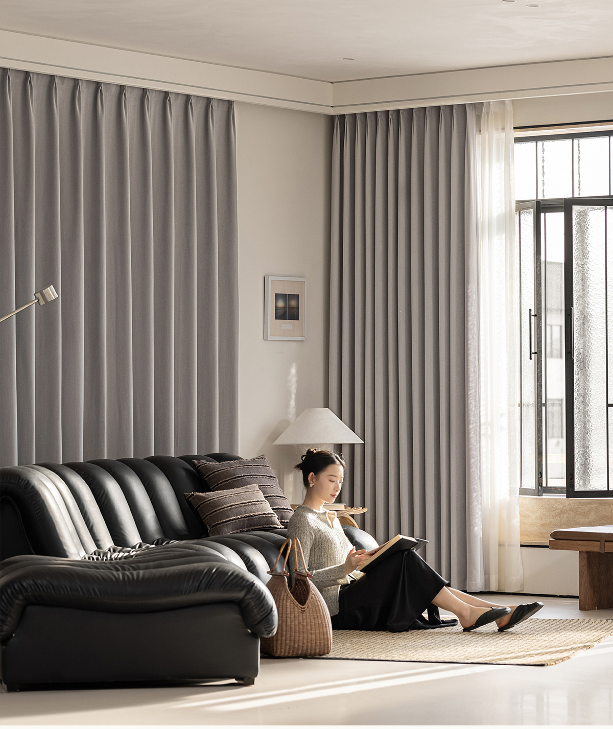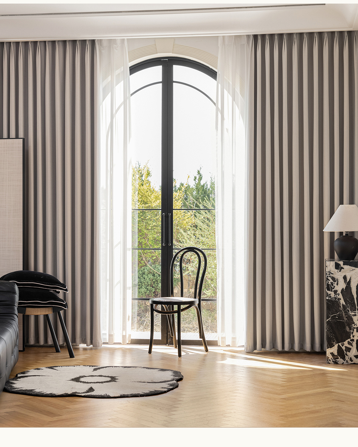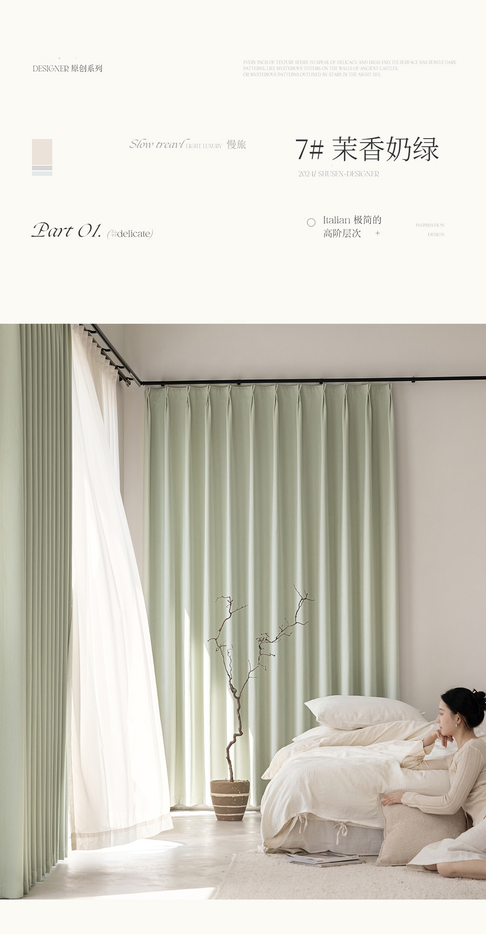 2025년 신상 밀크티 컬러 완전 암막 셔닐 커튼, 쇼핑 케차오 거실 및 침실용 고급 스타일의 투명창 커튼스토어 가기