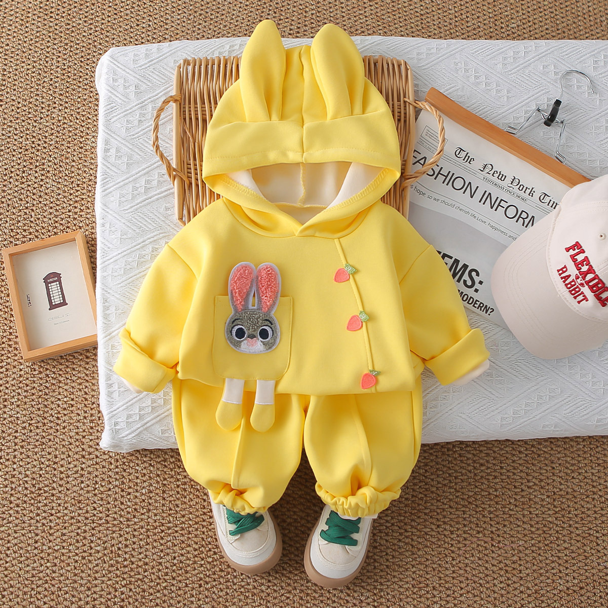 여자 캐주얼 운동복 후드 세트 2025 봄과 가을 새로운 아기 소녀 캐주얼 스포츠웨어 유아 투피스 세트