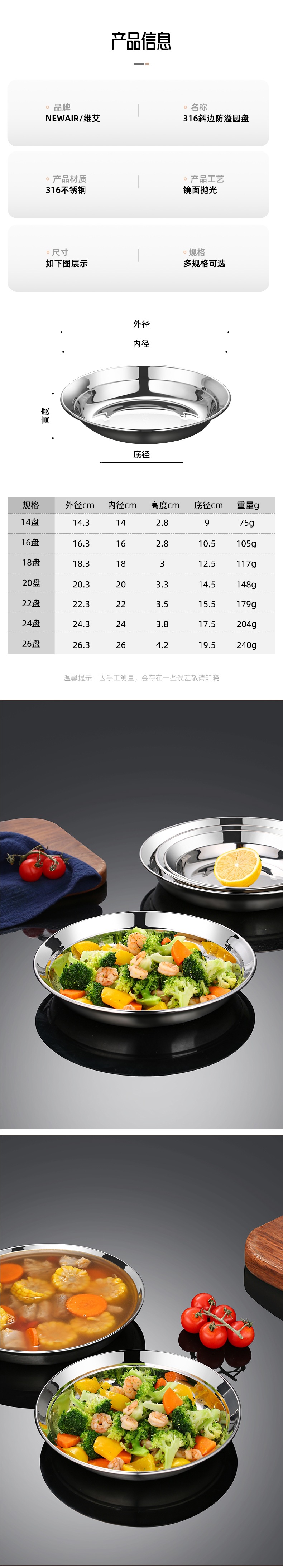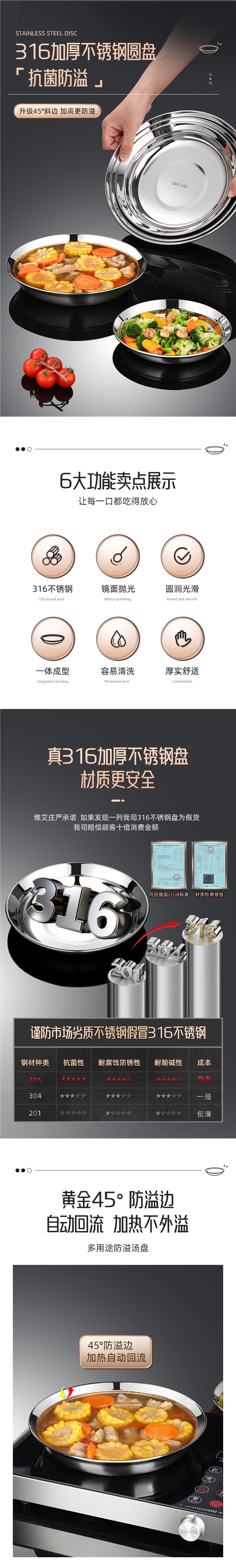 316 스테인레스 스틸 접시 식품 등급 가정용 접시 원형 접시 찜 접시 둥근 생선 준비 작은 접시 식기스토어 가기
