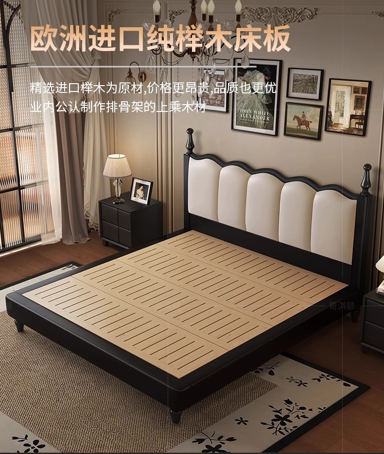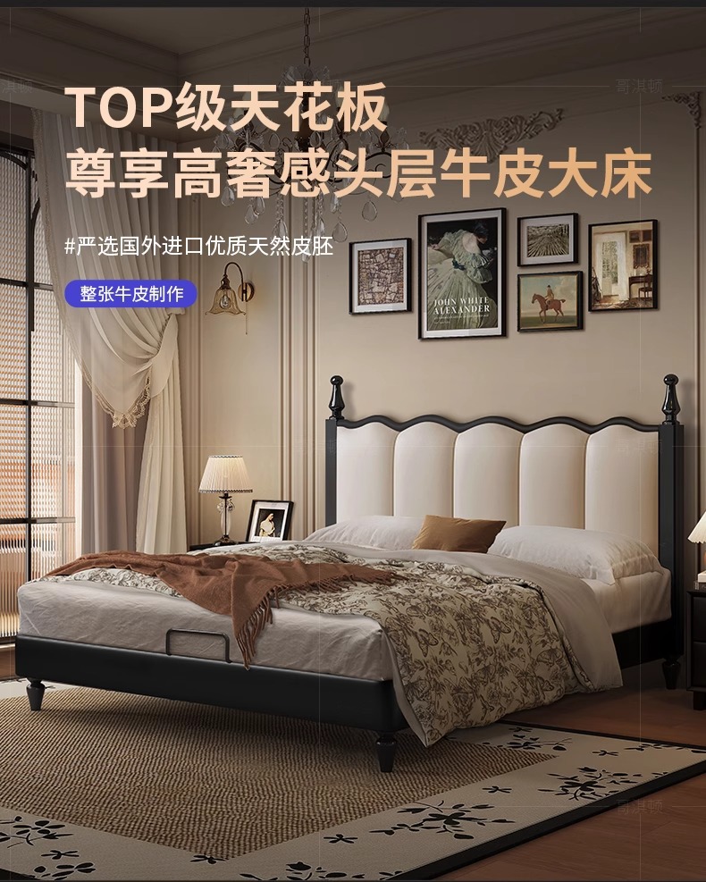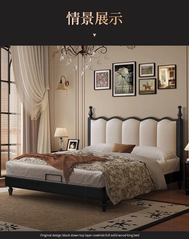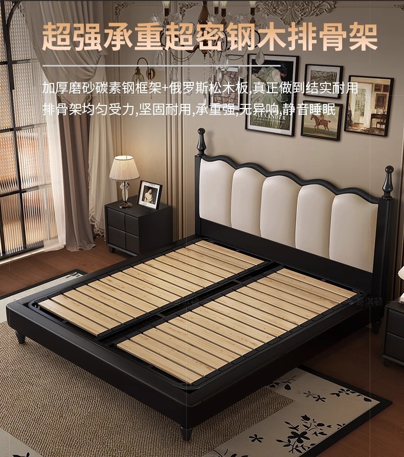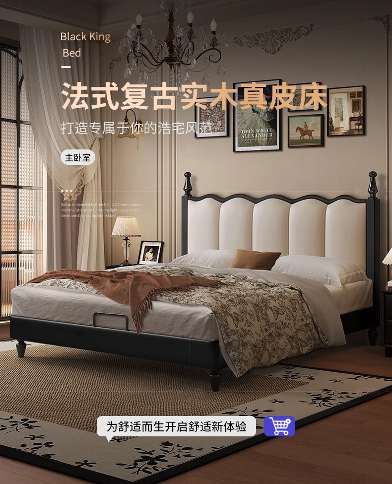 프렌치 레트로 원목 가죽 침대, 아메리칸 라이트 럭셔리 마스터 침실 대형 침대, 고급스럽고 분위기 있는 중세 스타일 더블 공주 웨딩 침대스토어 가기