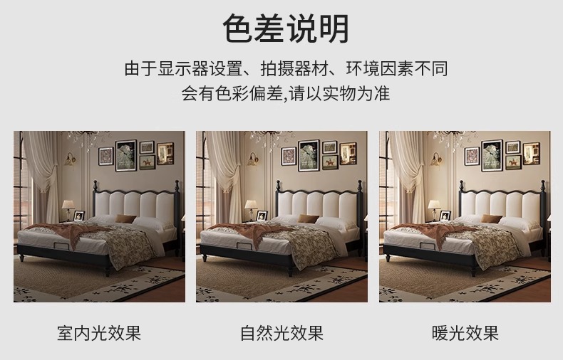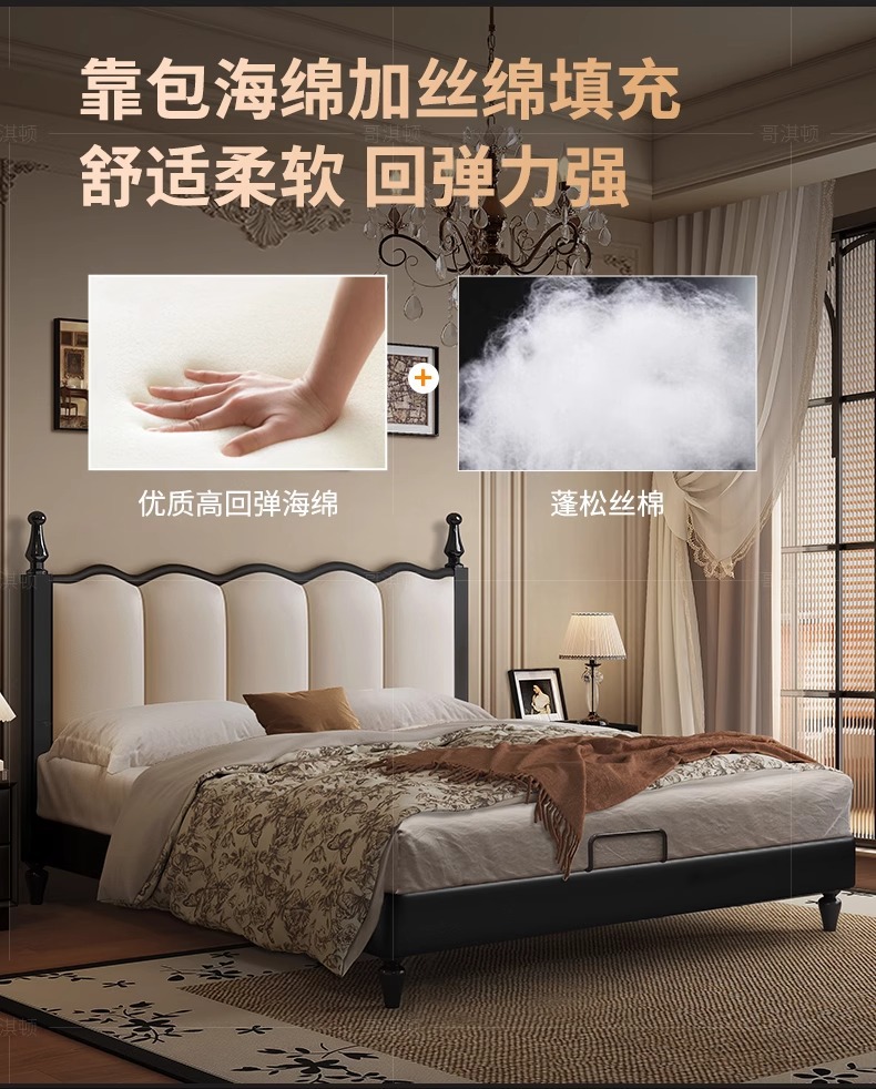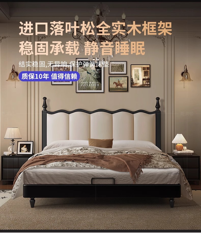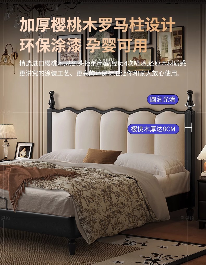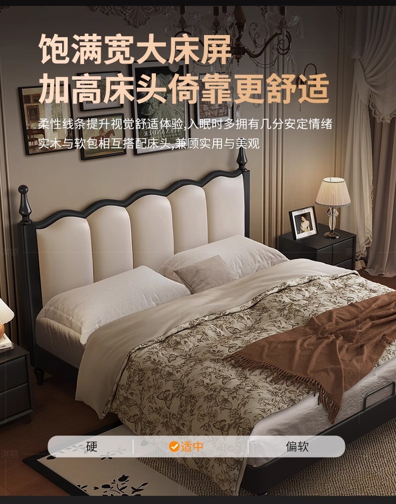 프렌치 레트로 원목 가죽 침대, 아메리칸 라이트 럭셔리 마스터 침실 대형 침대, 고급스럽고 분위기 있는 중세 스타일 더블 공주 웨딩 침대스토어 가기