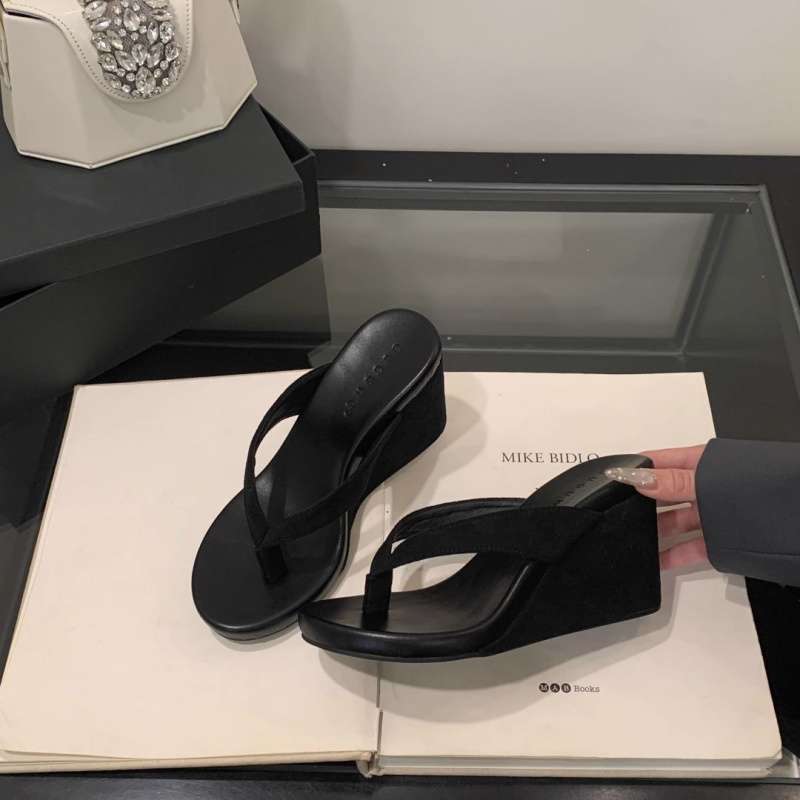 2025春夏圆头坡跟夹脚女士人字拖休闲外穿时尚高跟百搭增高凉拖鞋