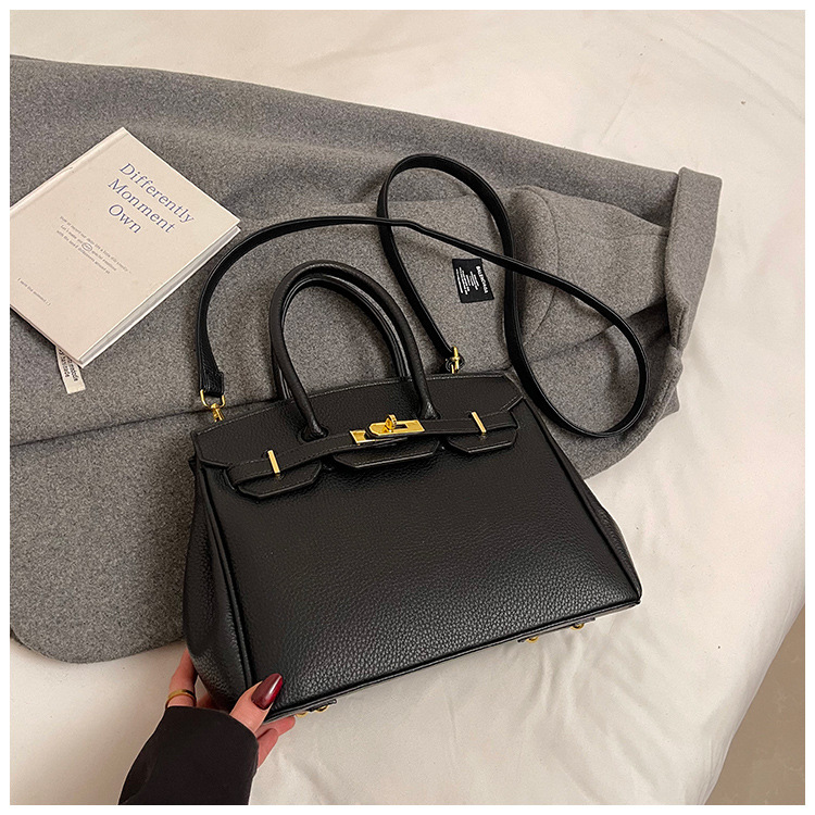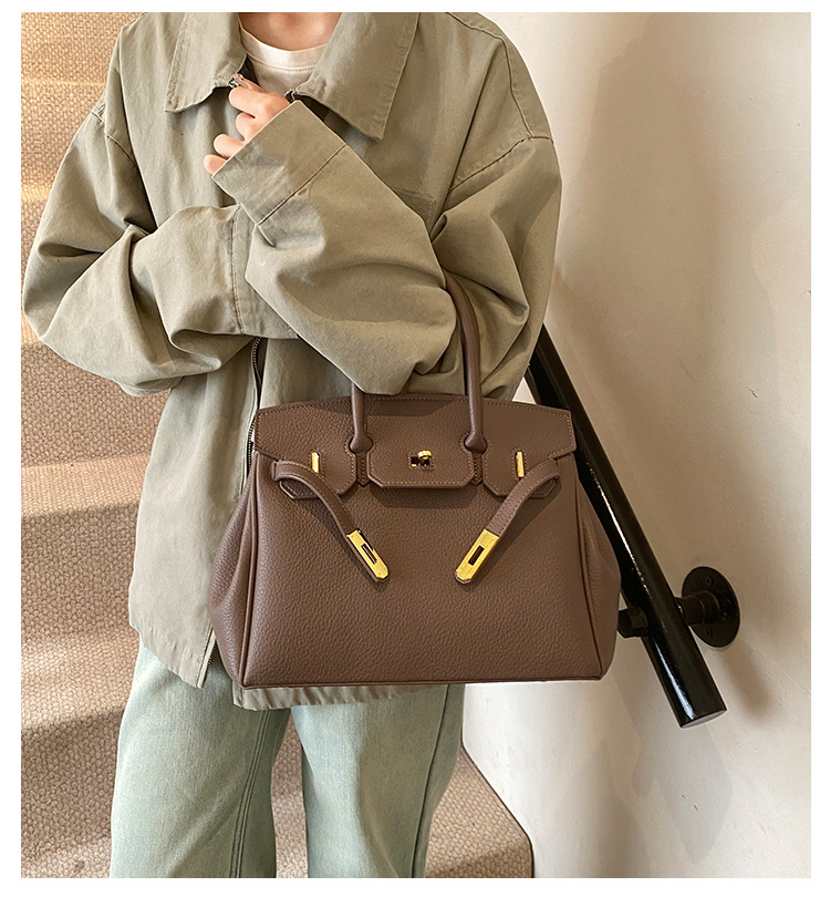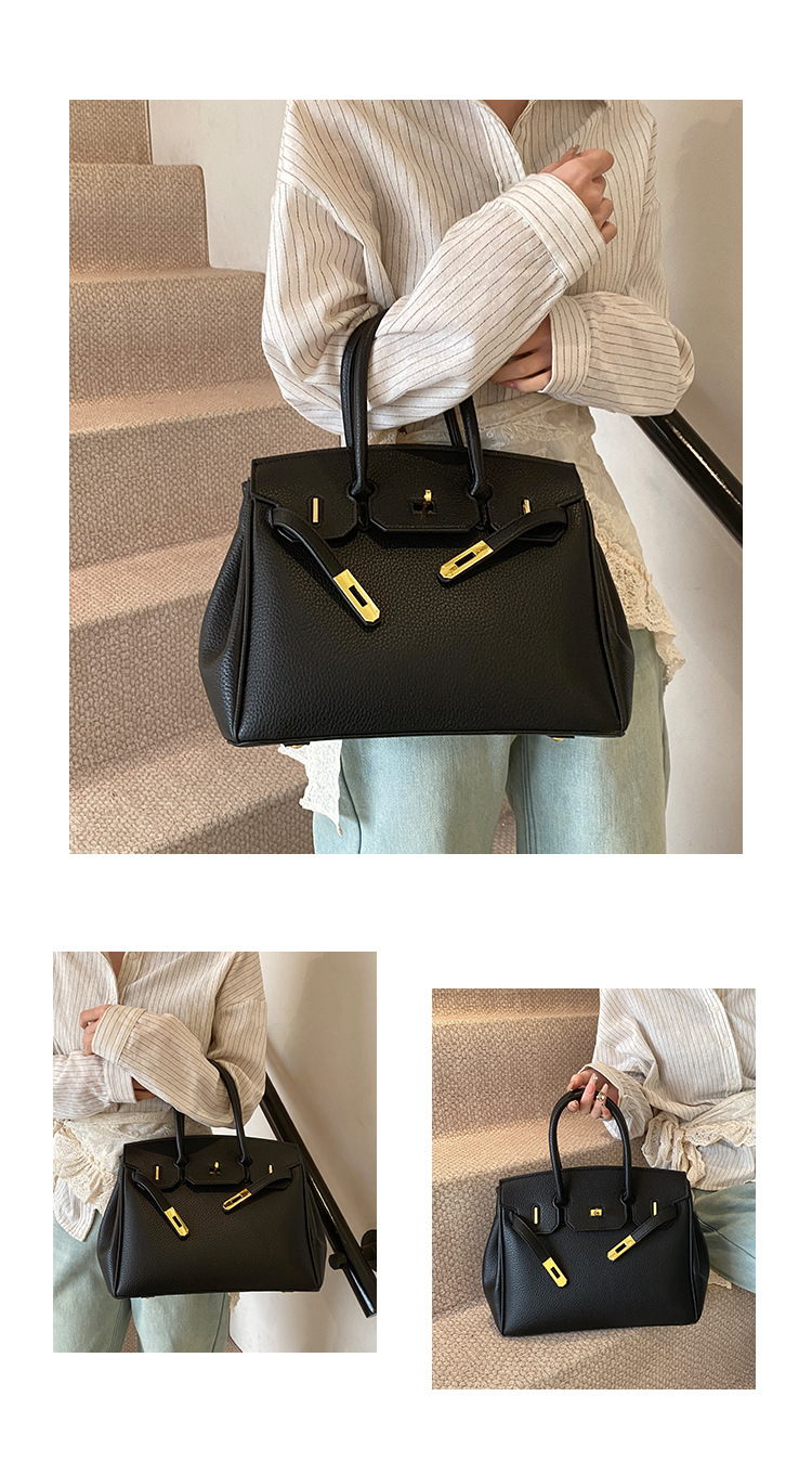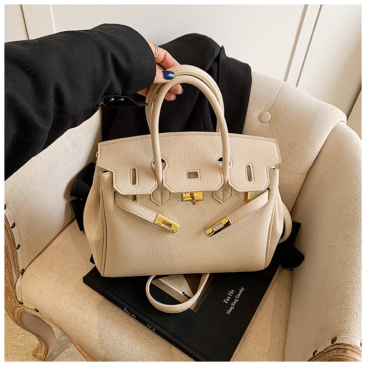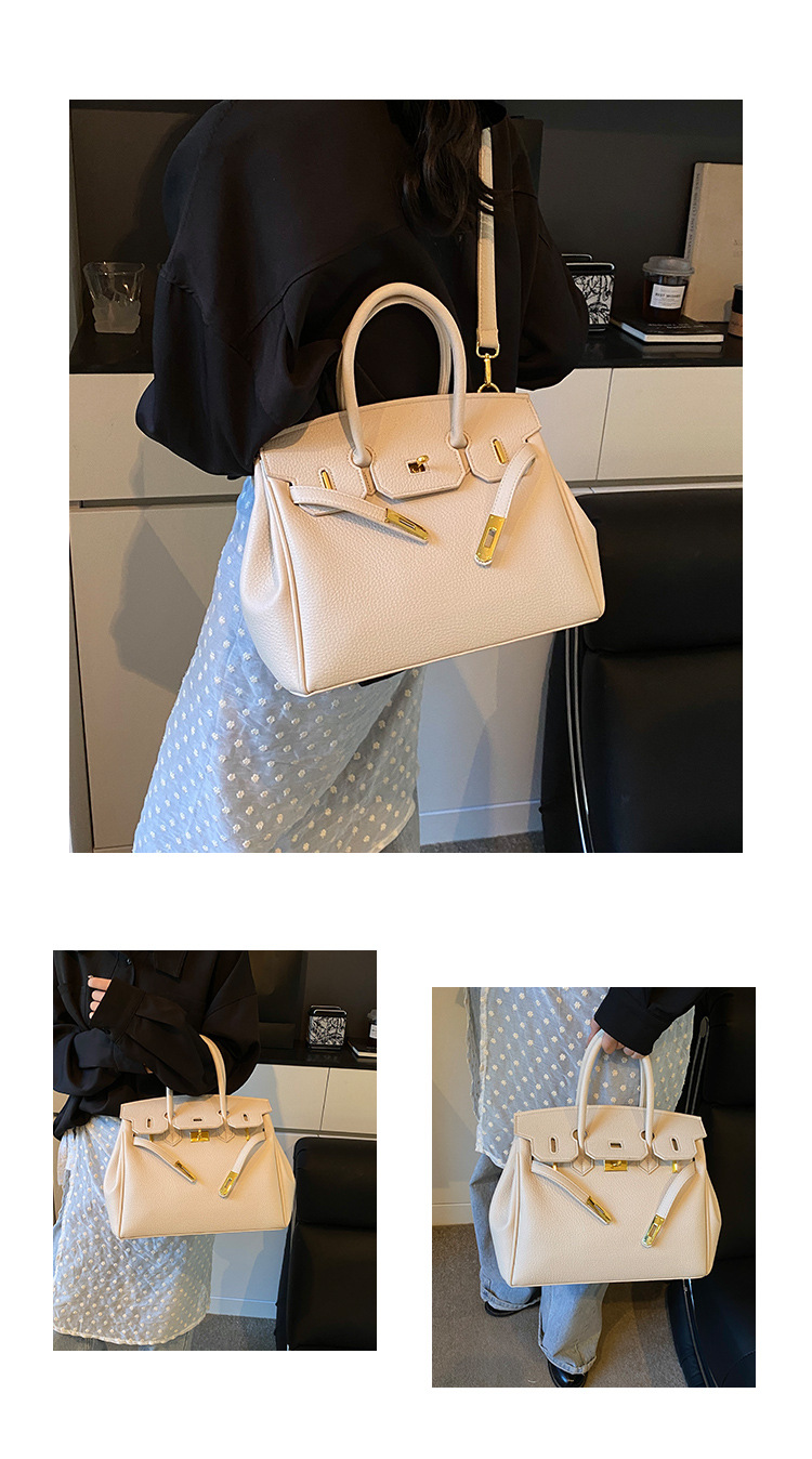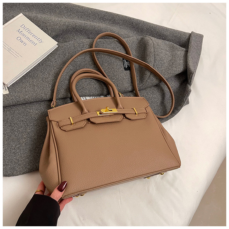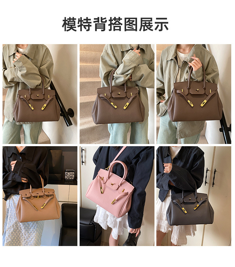 대용량 리치 패턴 휴대용 켈리 백 여성 패션 잠금 질감 숄더백 통근 다용도 크로스 바디 백 크로스 보더