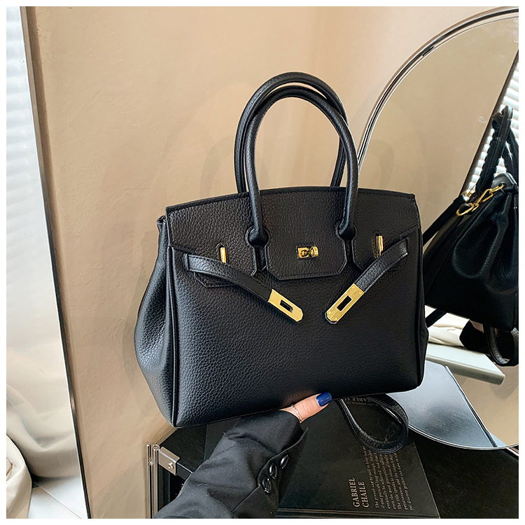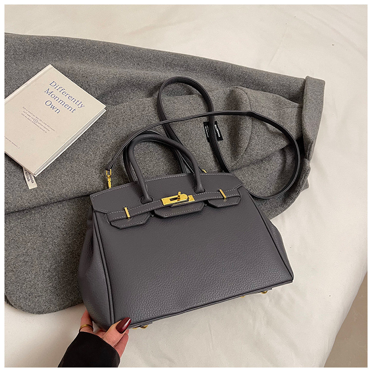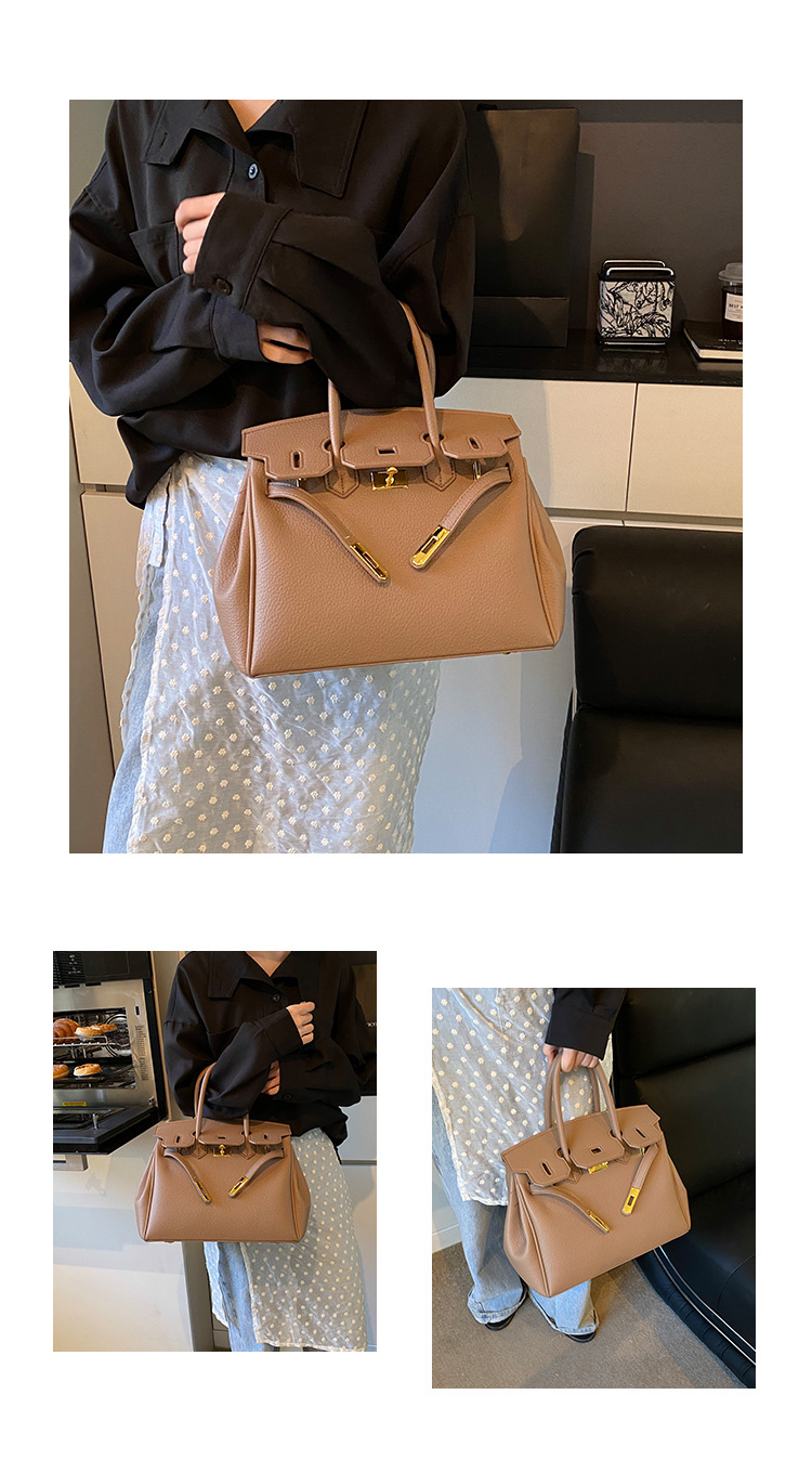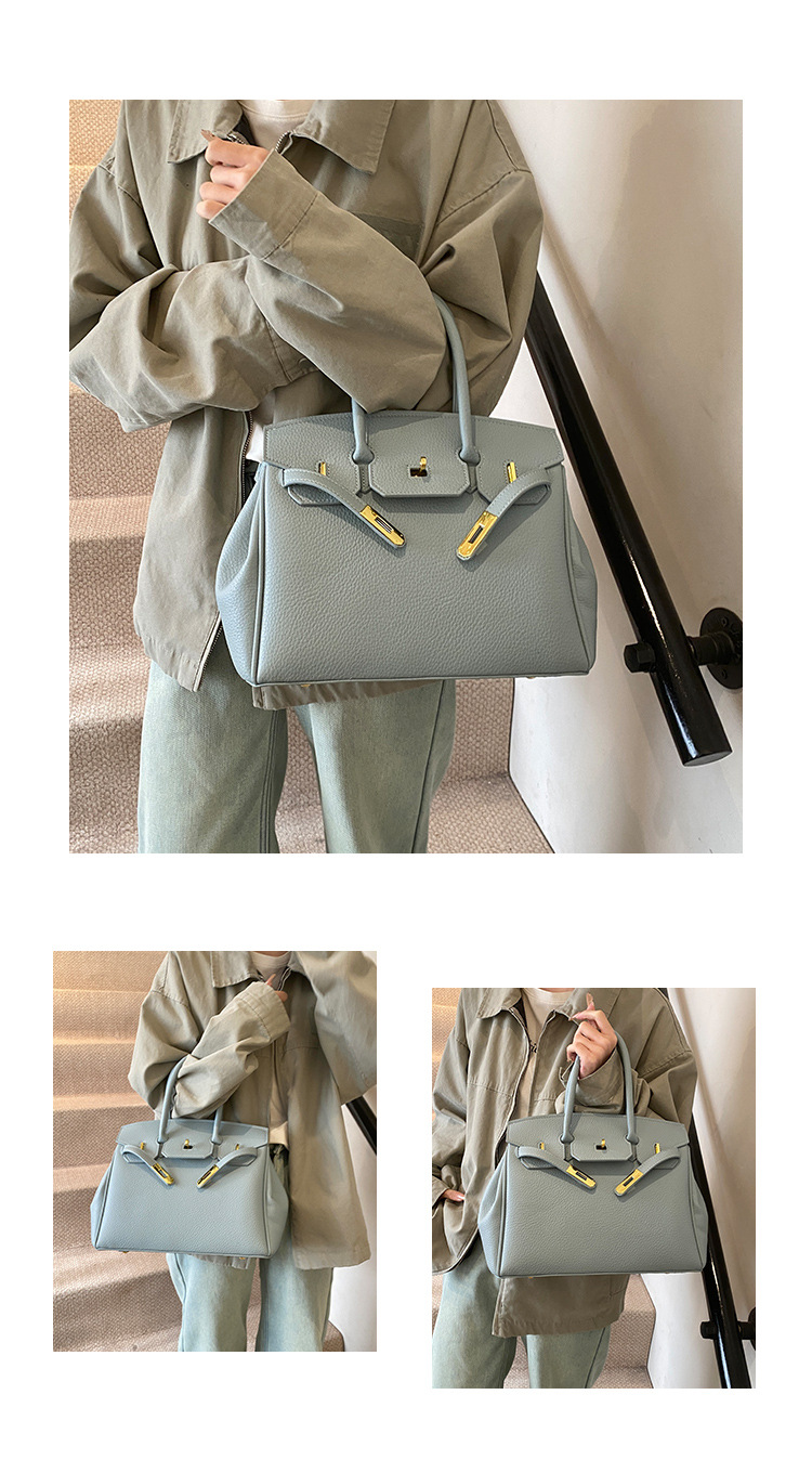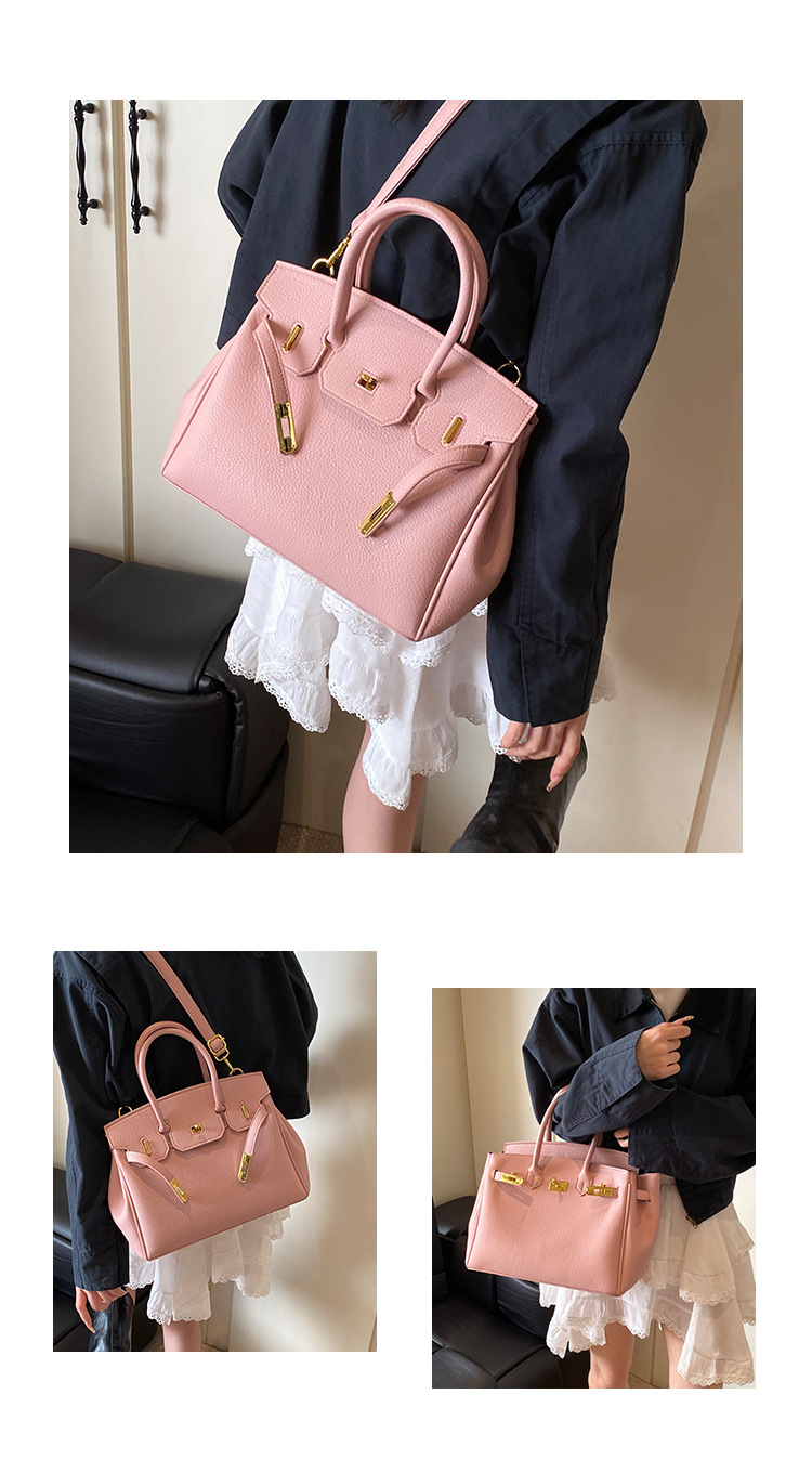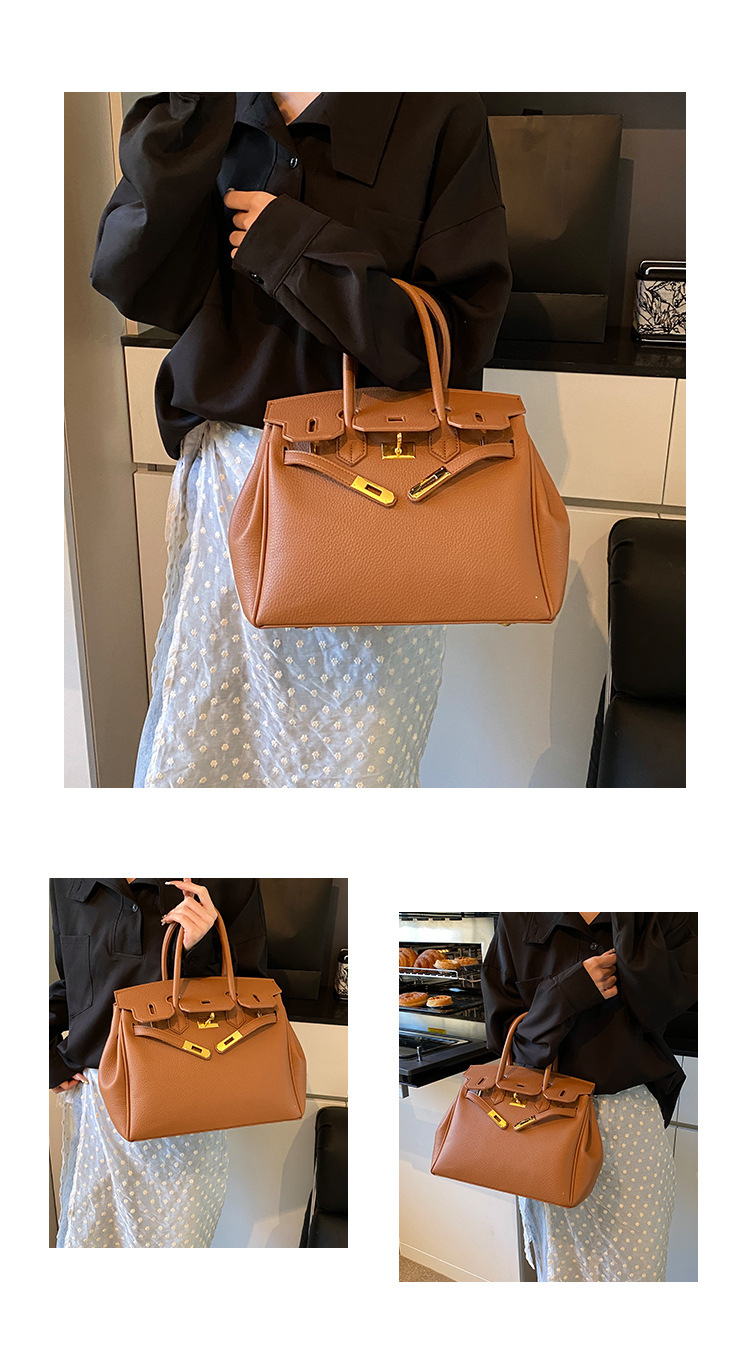 대용량 리치 패턴 휴대용 켈리 백 여성 패션 잠금 질감 숄더백 통근 다용도 크로스 바디 백 크로스 보더