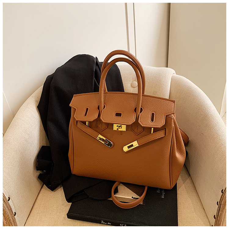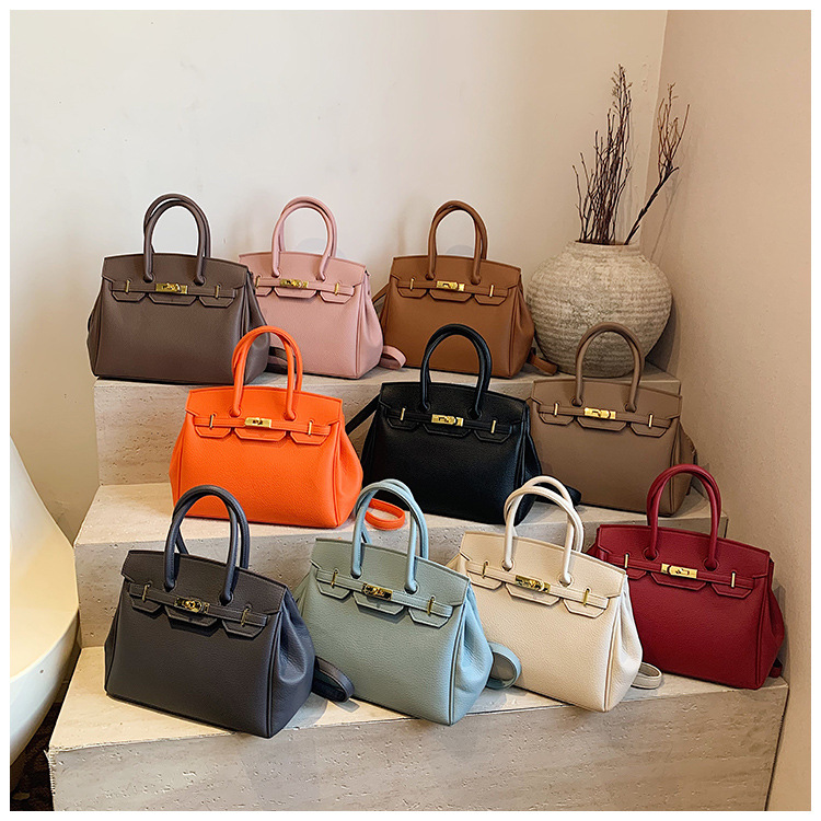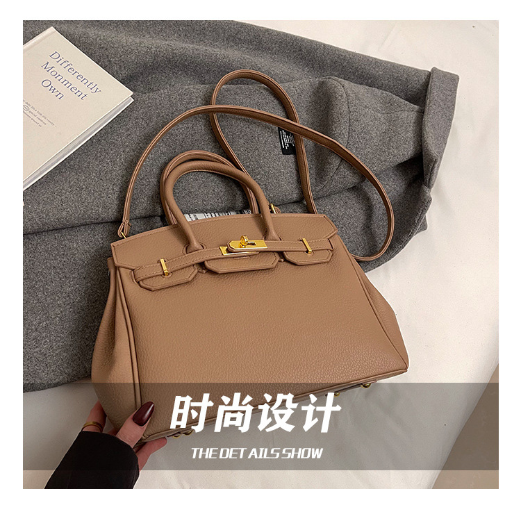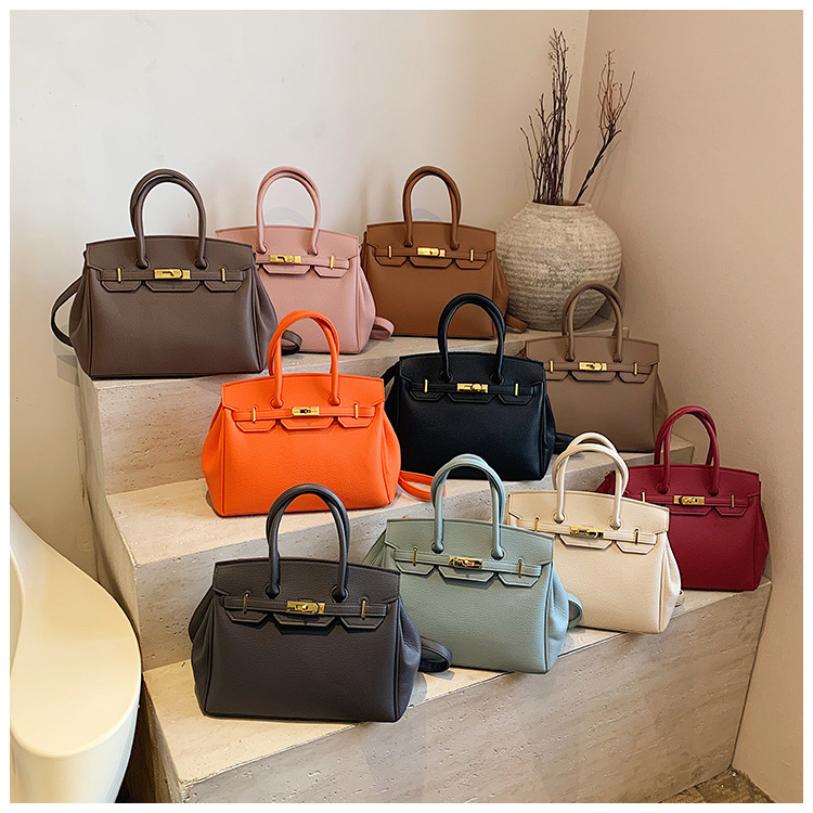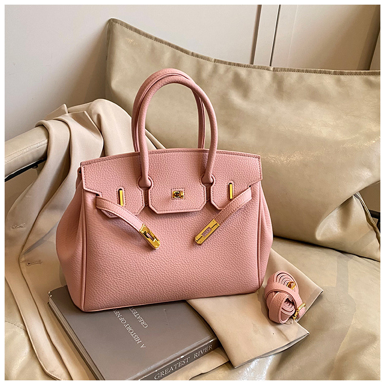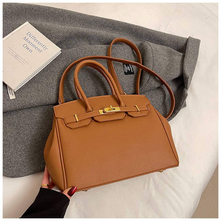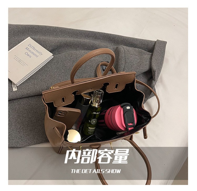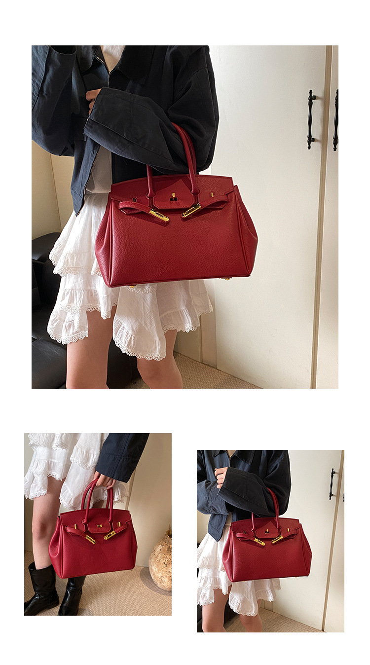 대용량 리치 패턴 휴대용 켈리 백 여성 패션 잠금 질감 숄더백 통근 다용도 크로스 바디 백 크로스 보더