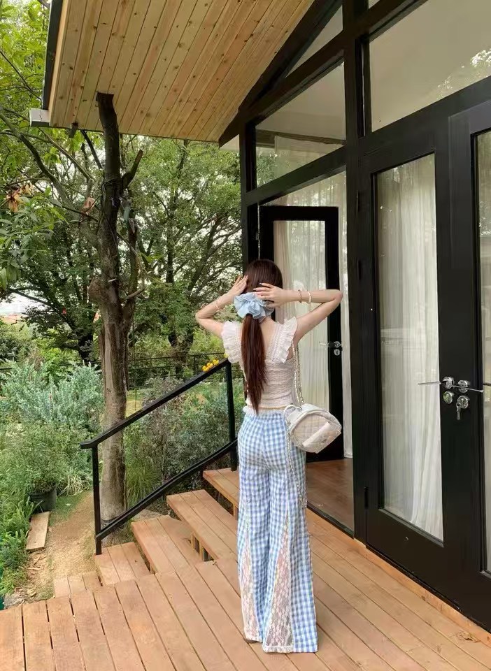 Pure Desire 작은 플라잉 슬리브 레이스 캐미솔 여성 여름 디자인 기질 작은 셔츠 뜨거운 소녀 핀치 허리 세련된 작은 탑