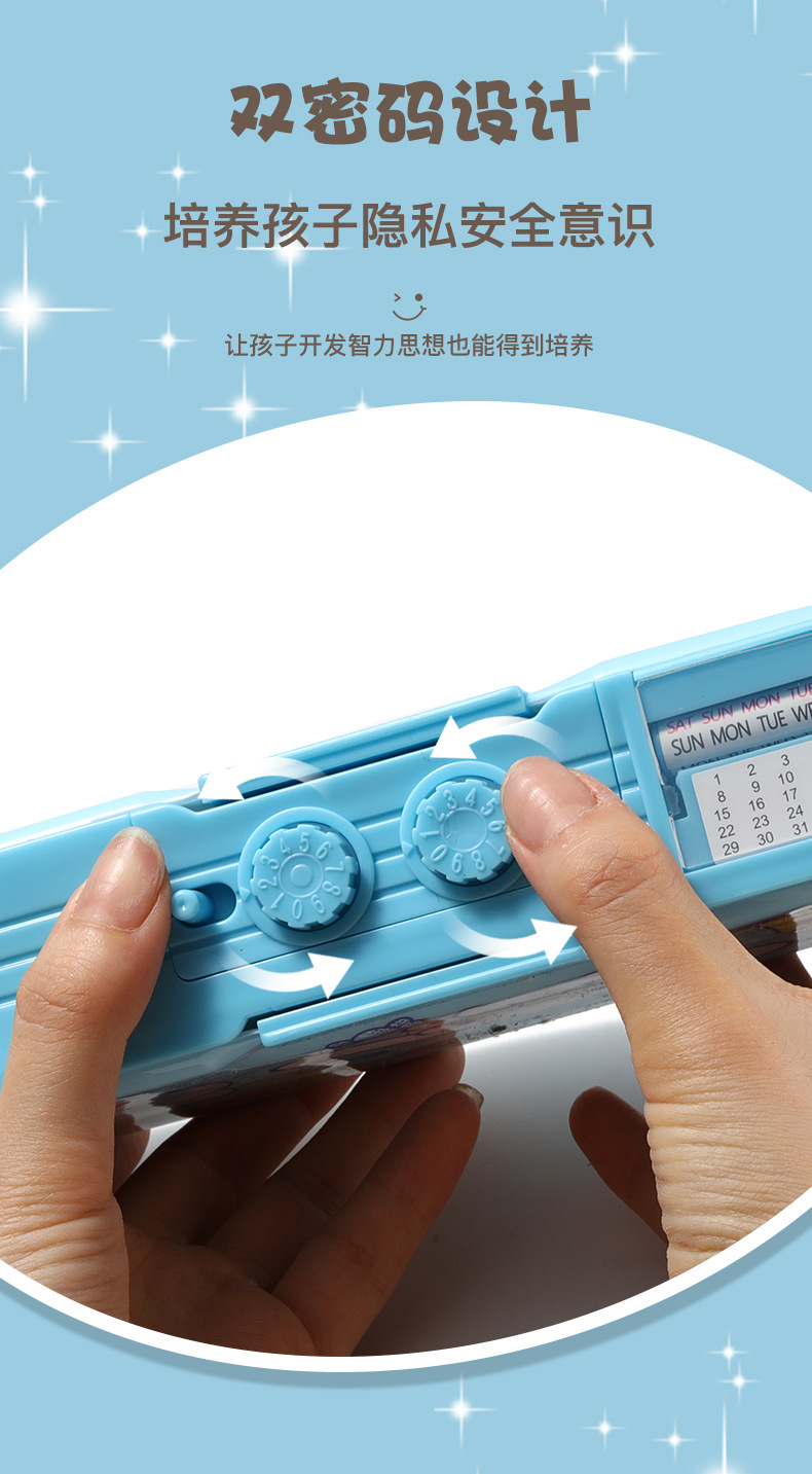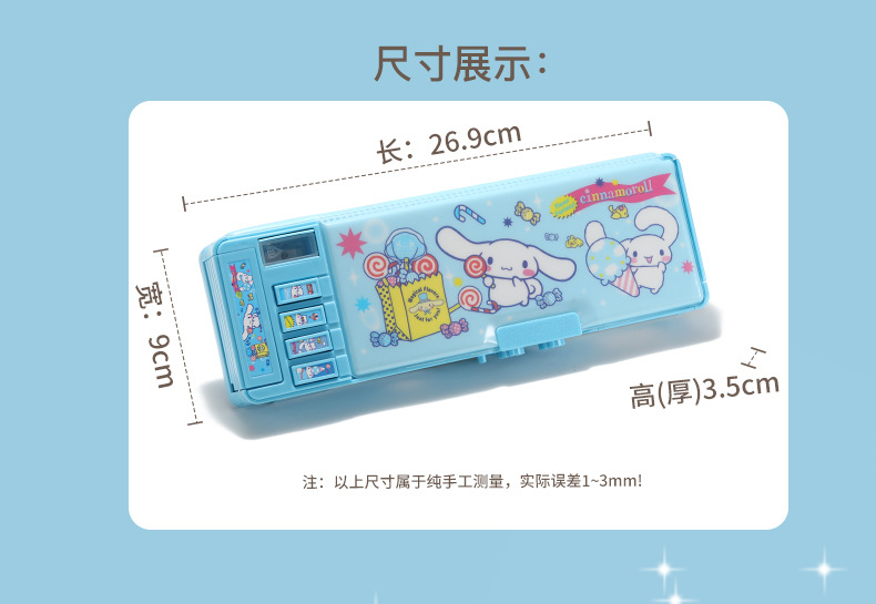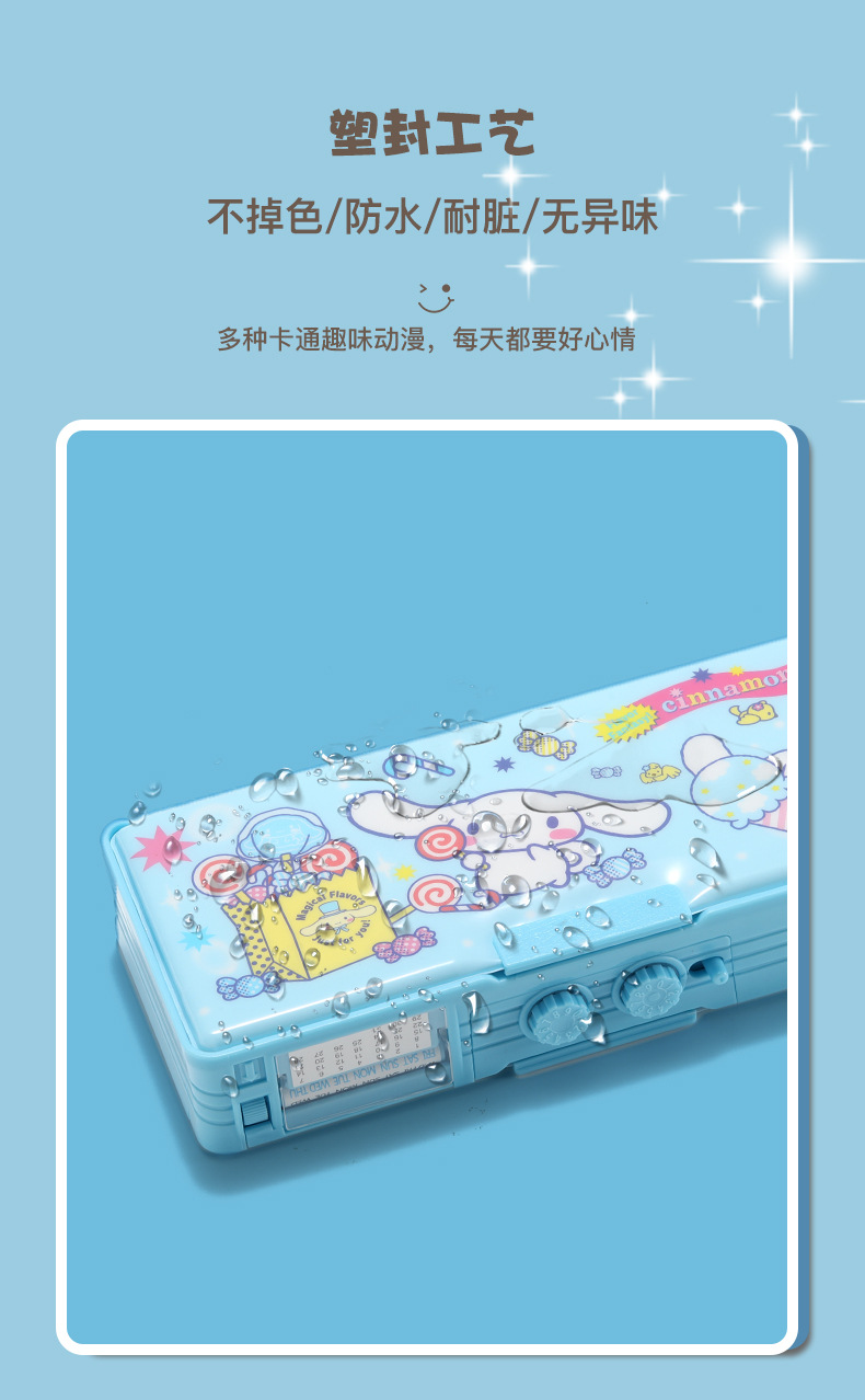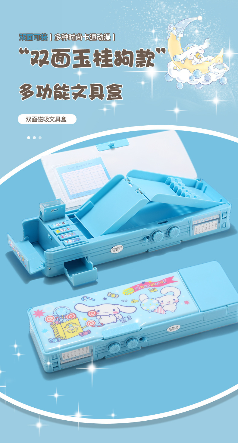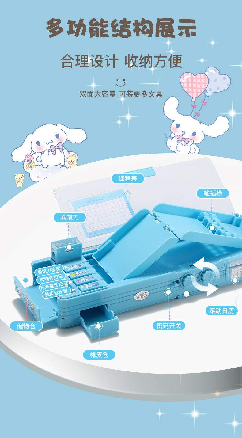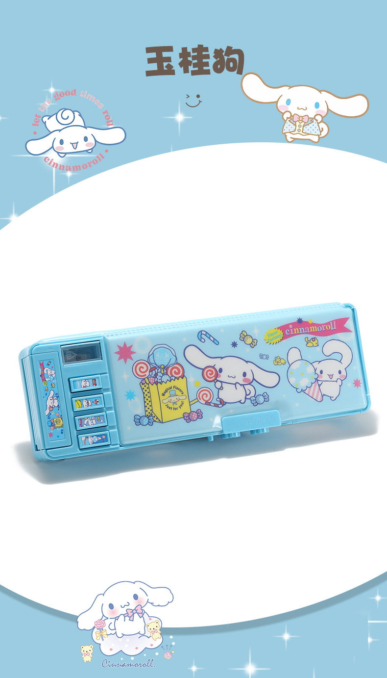 Jade Dog 코드 잠금 장치 더블 레이어 문구 상자 다기능 버튼 Sanrio 큰 귀 개 연필 상자 남성과 여성 초등학생