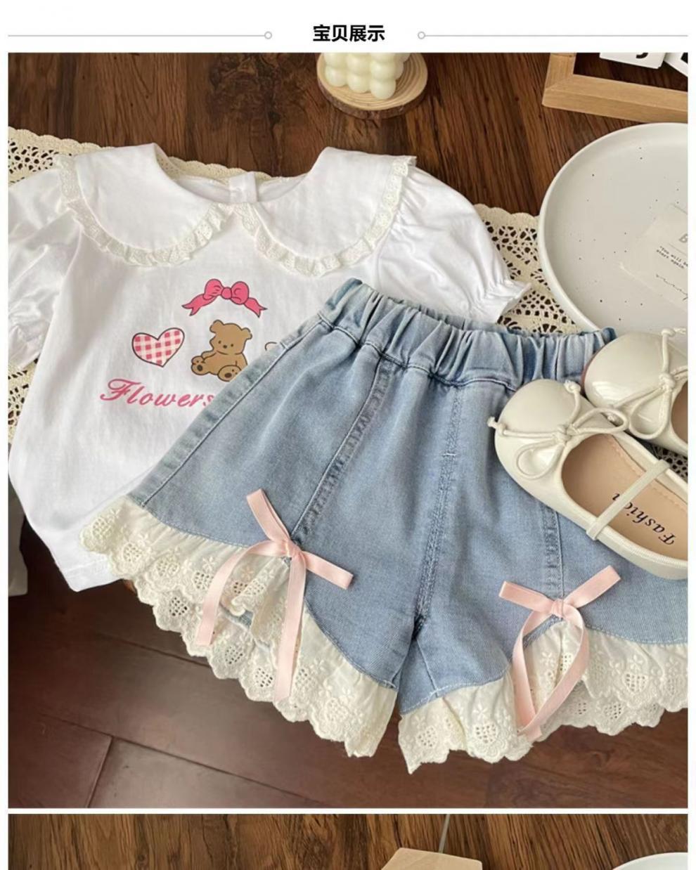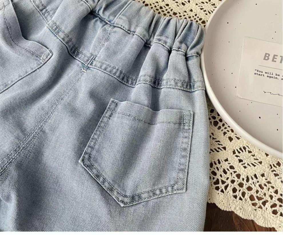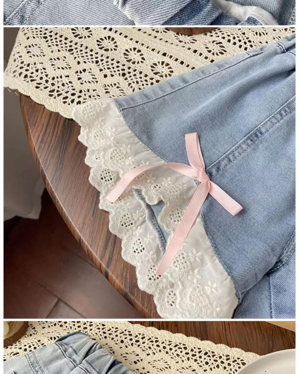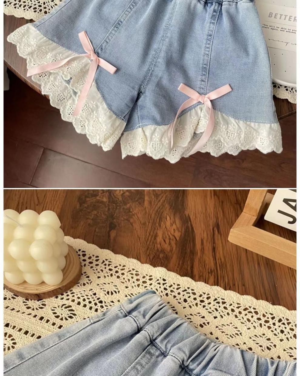 여자 레이스 데님 반바지 2025 여름 새로운 스타일 어린이 패션 느슨한 캐주얼 바지 서양식 아기 소녀 바지스토어 가기