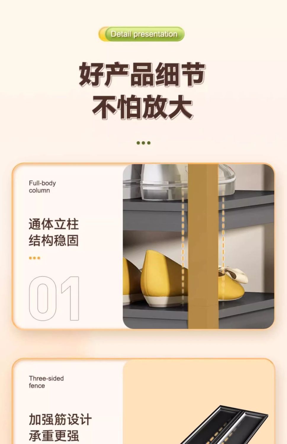 • 고급 검정색 - 3겹 높이 69cm [층 높이 조절 가능]