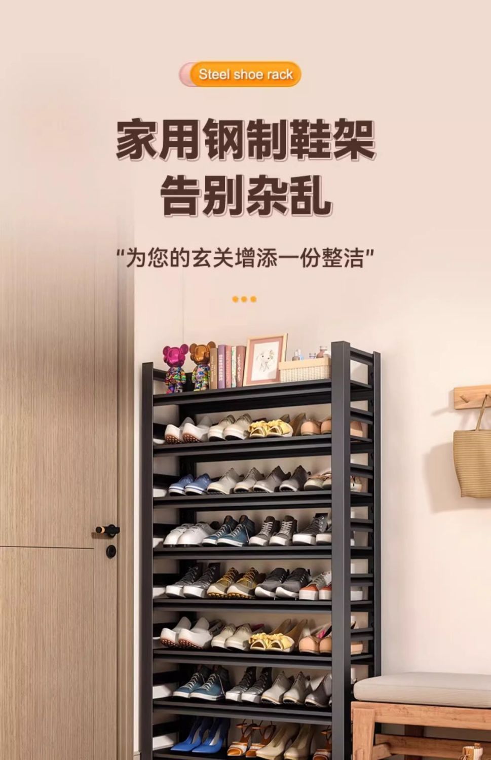 가정용 출입구용 철제 신발장, 바닥에서 천장까지 이어지는 신발 보관함, 금속 간단한 10층 보관함, 현관 신발장스토어 가기