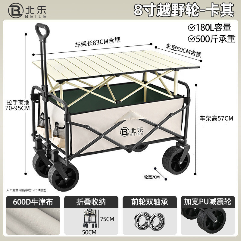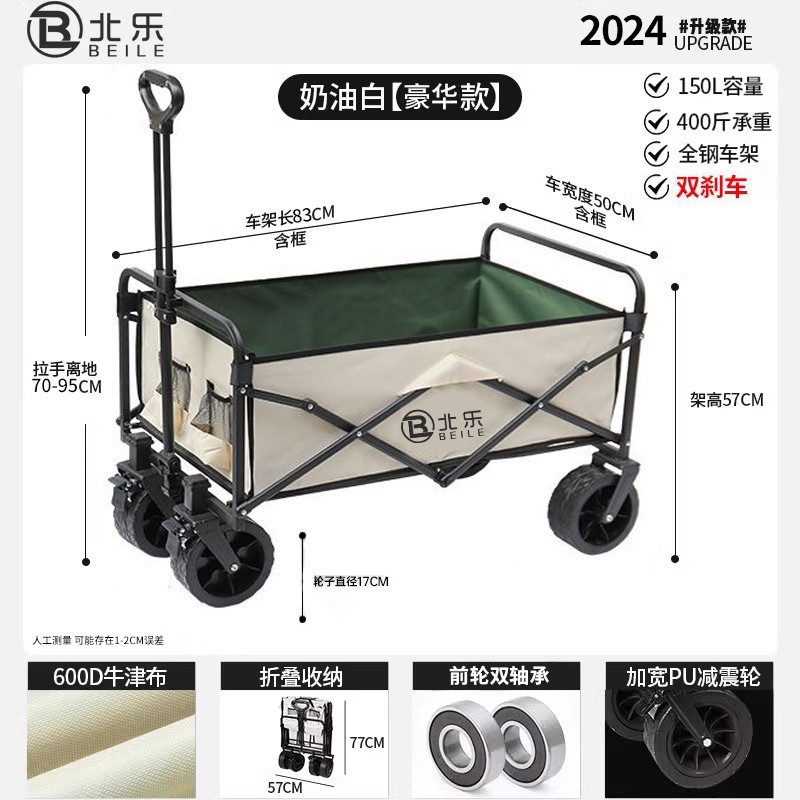 QH 야외 캠핑카 트롤리 캠프 트레일러 접이식 스톨 트롤리 손으로 당기는 여행 캠핑 피크닉 트롤리스토어 가기