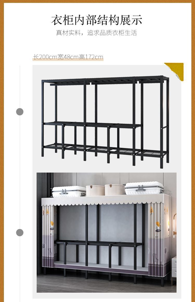 가정용 천 옷장 2024 간단한 옷장 설치가 필요없는 접이식 전체 강철 프레임 강한 두꺼운 천 옷장스토어 가기