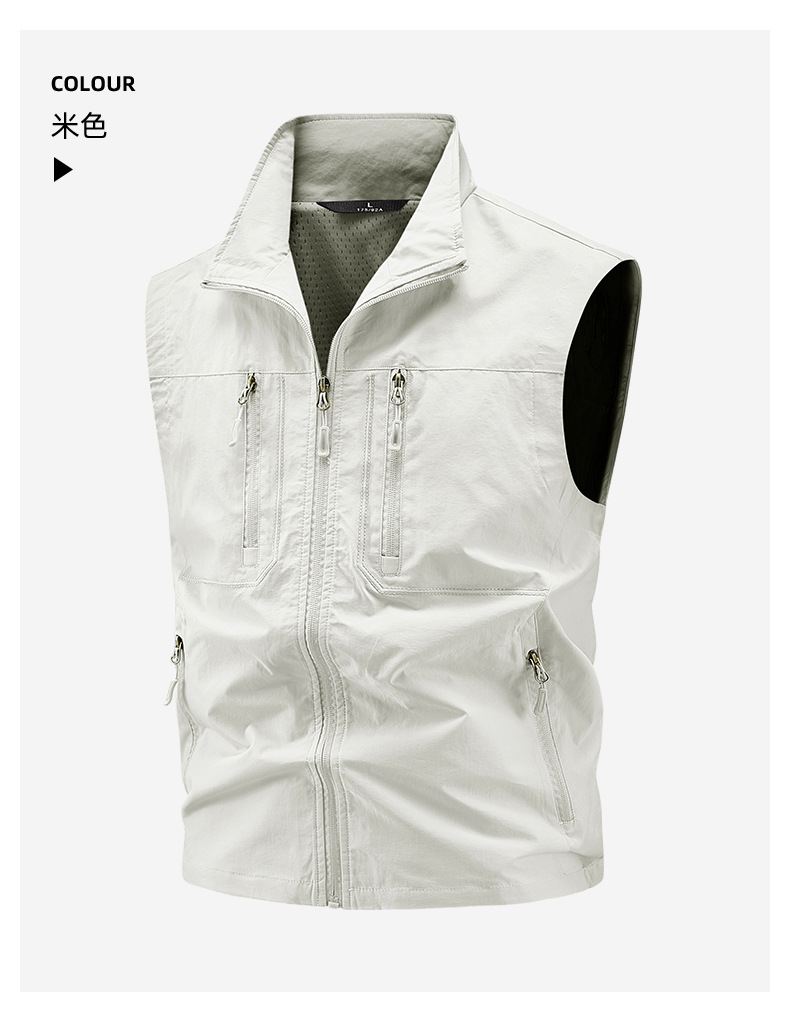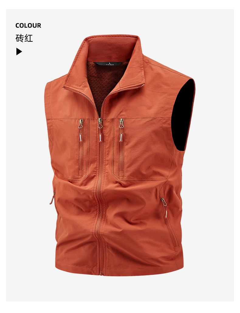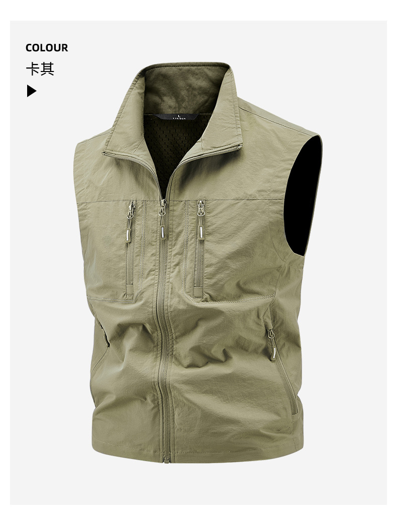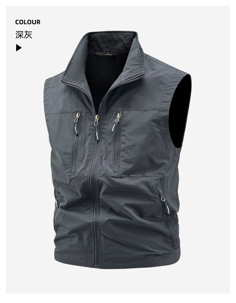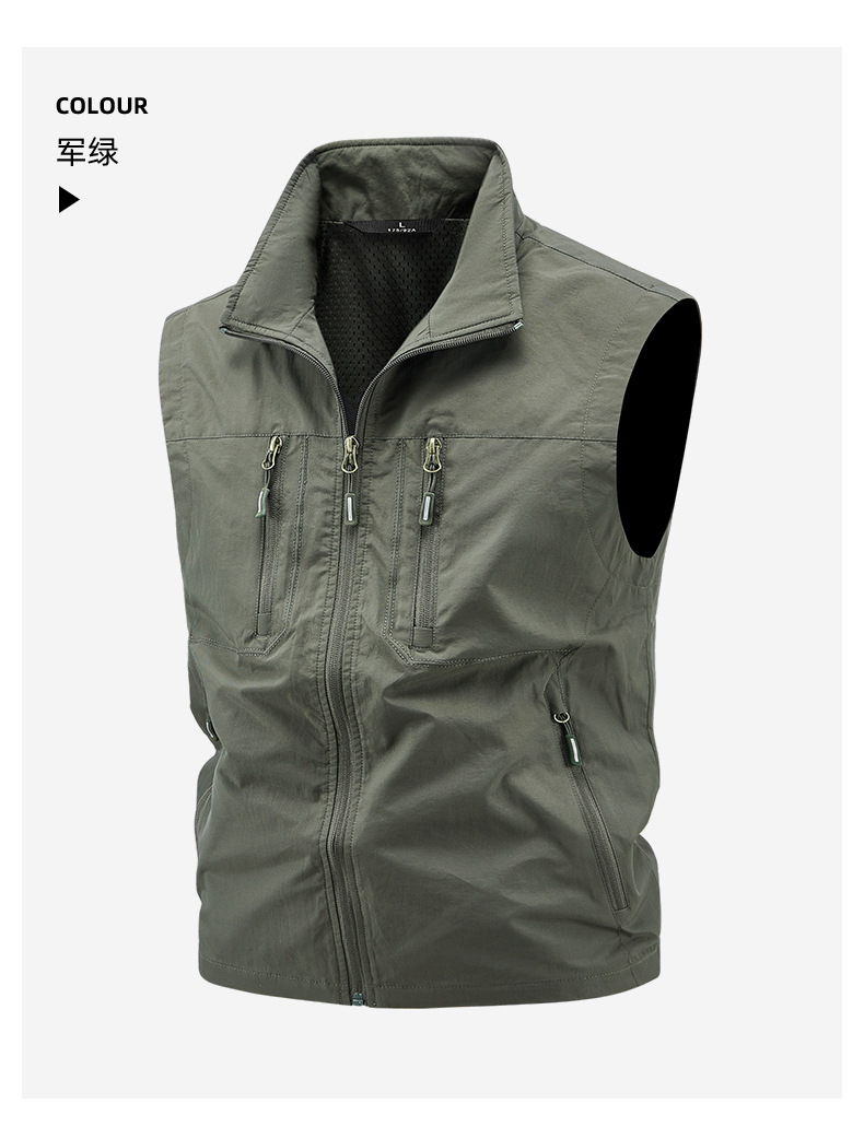 남성용 야외 낚시 조끼, 봄, 가을 얇은 멀티 포켓 작업 조끼, 캐주얼 스탠드 칼라 공동 구매 프린트 조끼 재킷